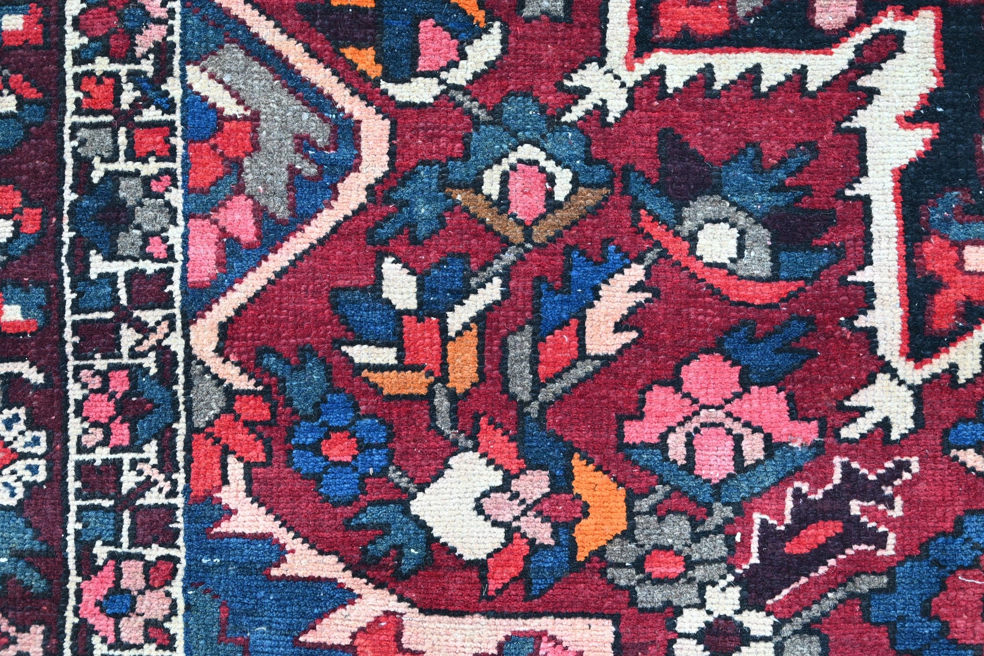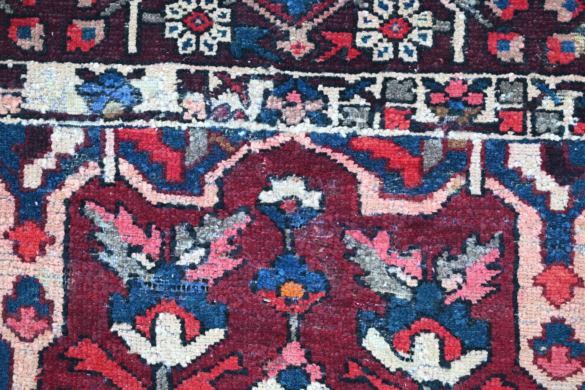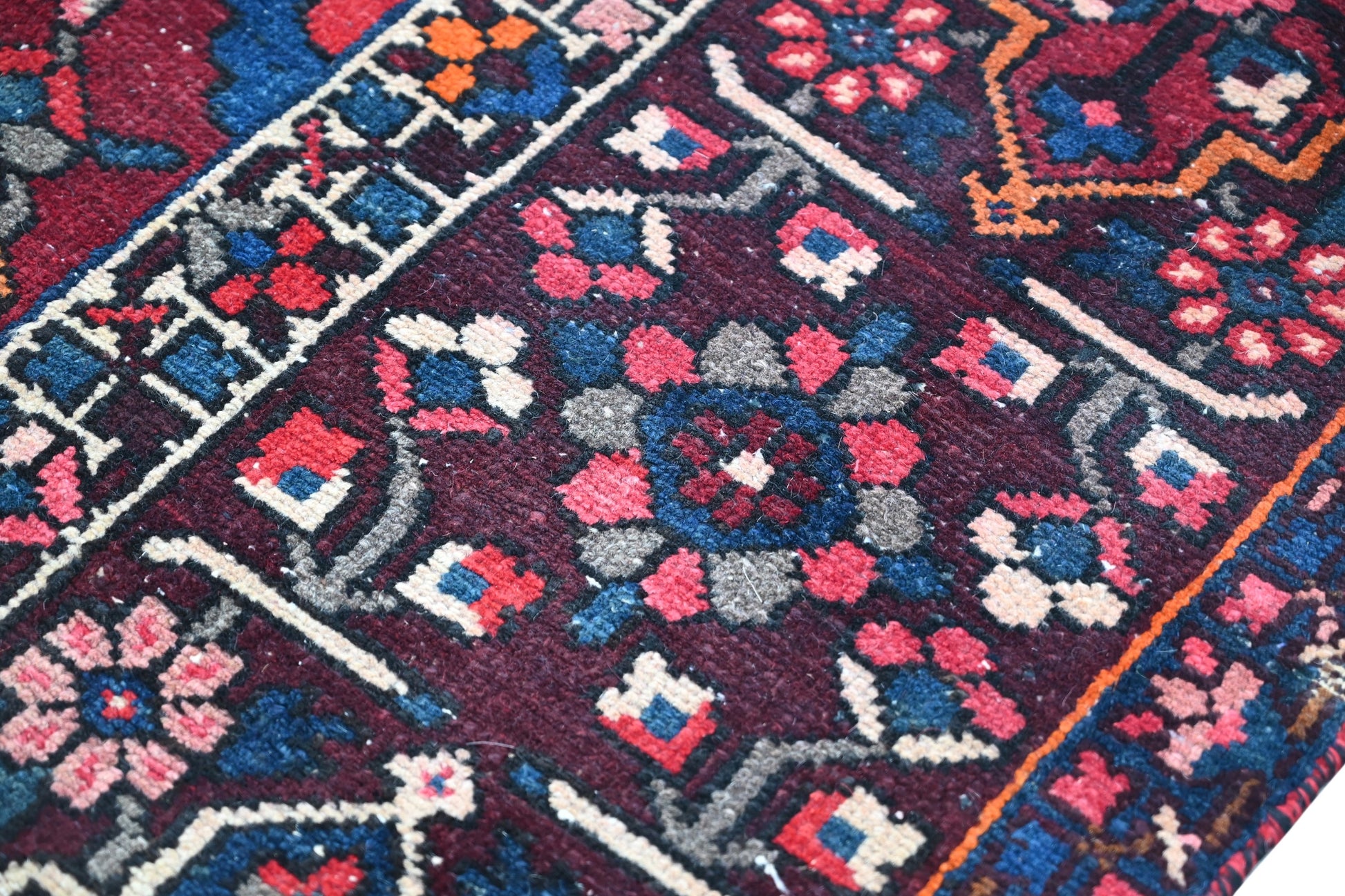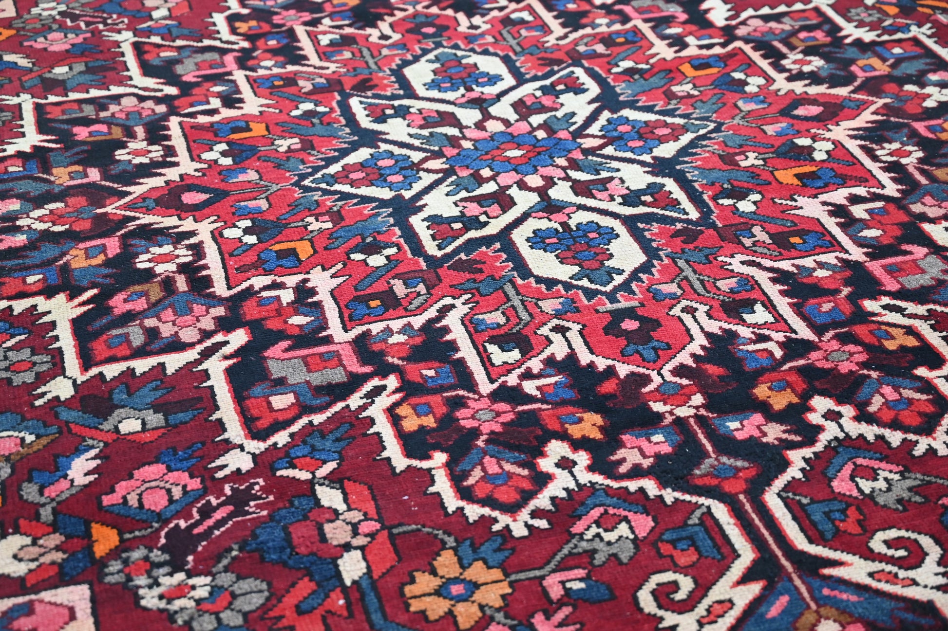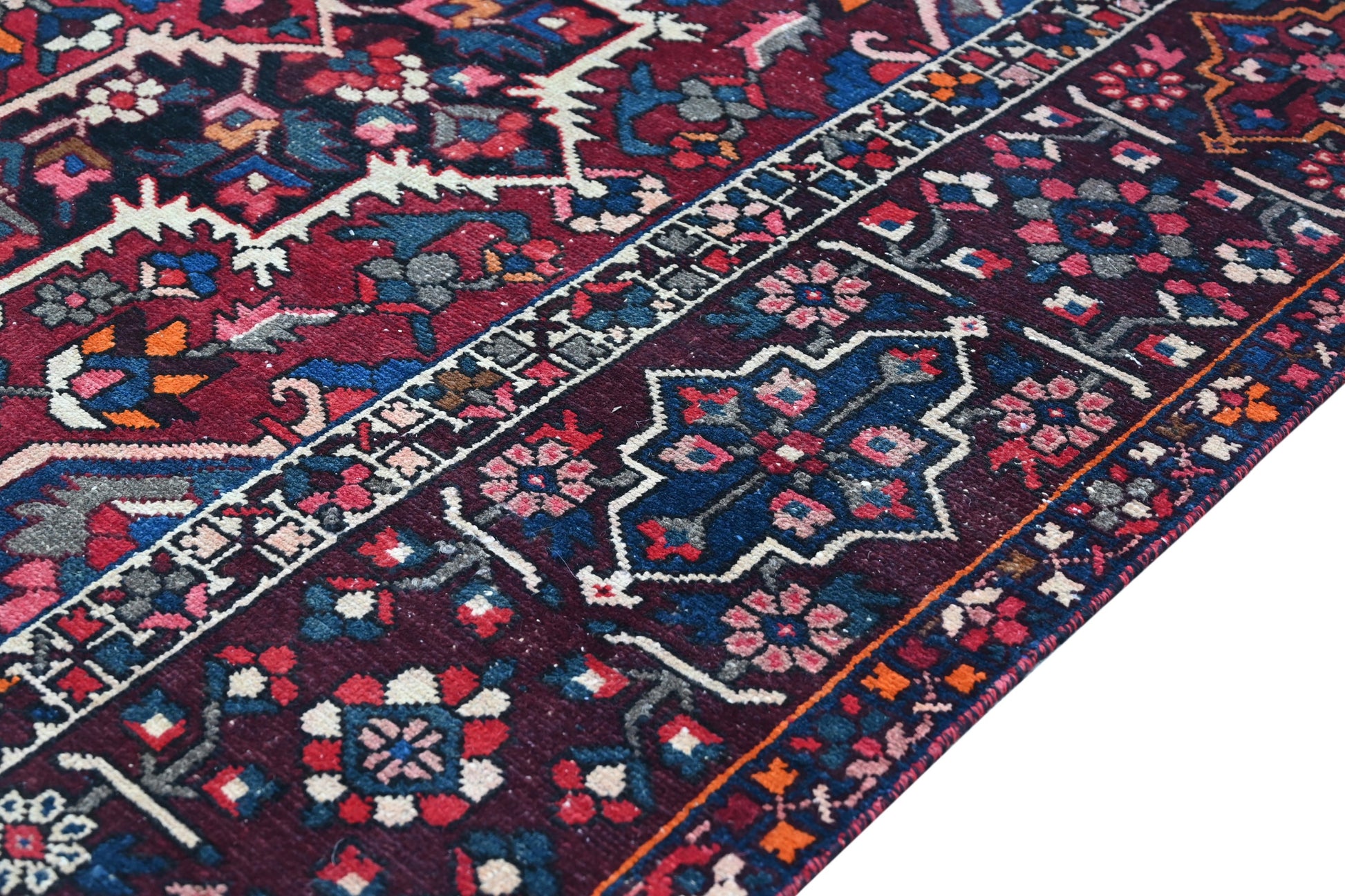 All the rugs we sell are professionally washed and cleaned; age-related wear and natural inconsistencies are inherent in these unique, handcrafted vintage rugs.