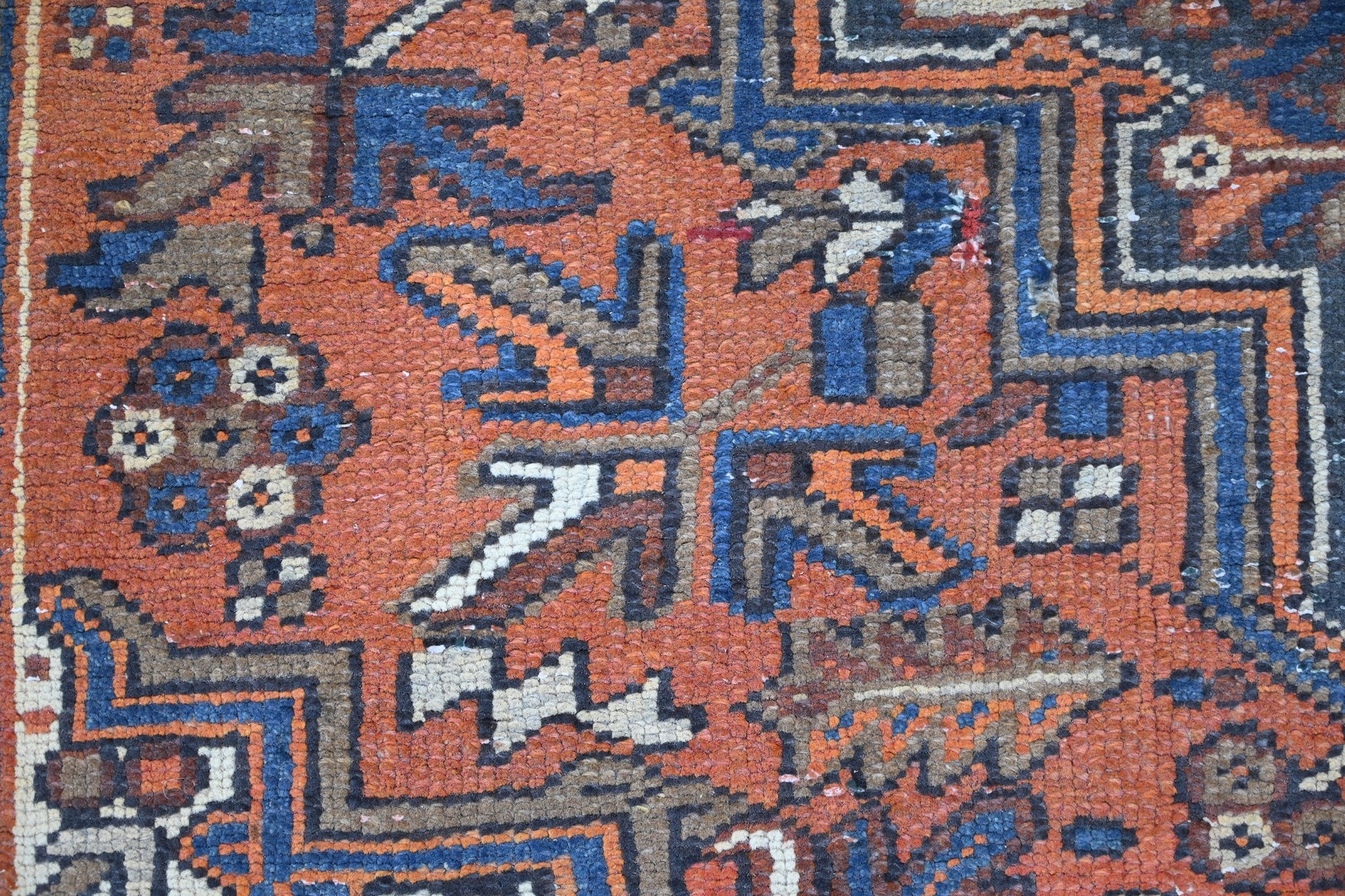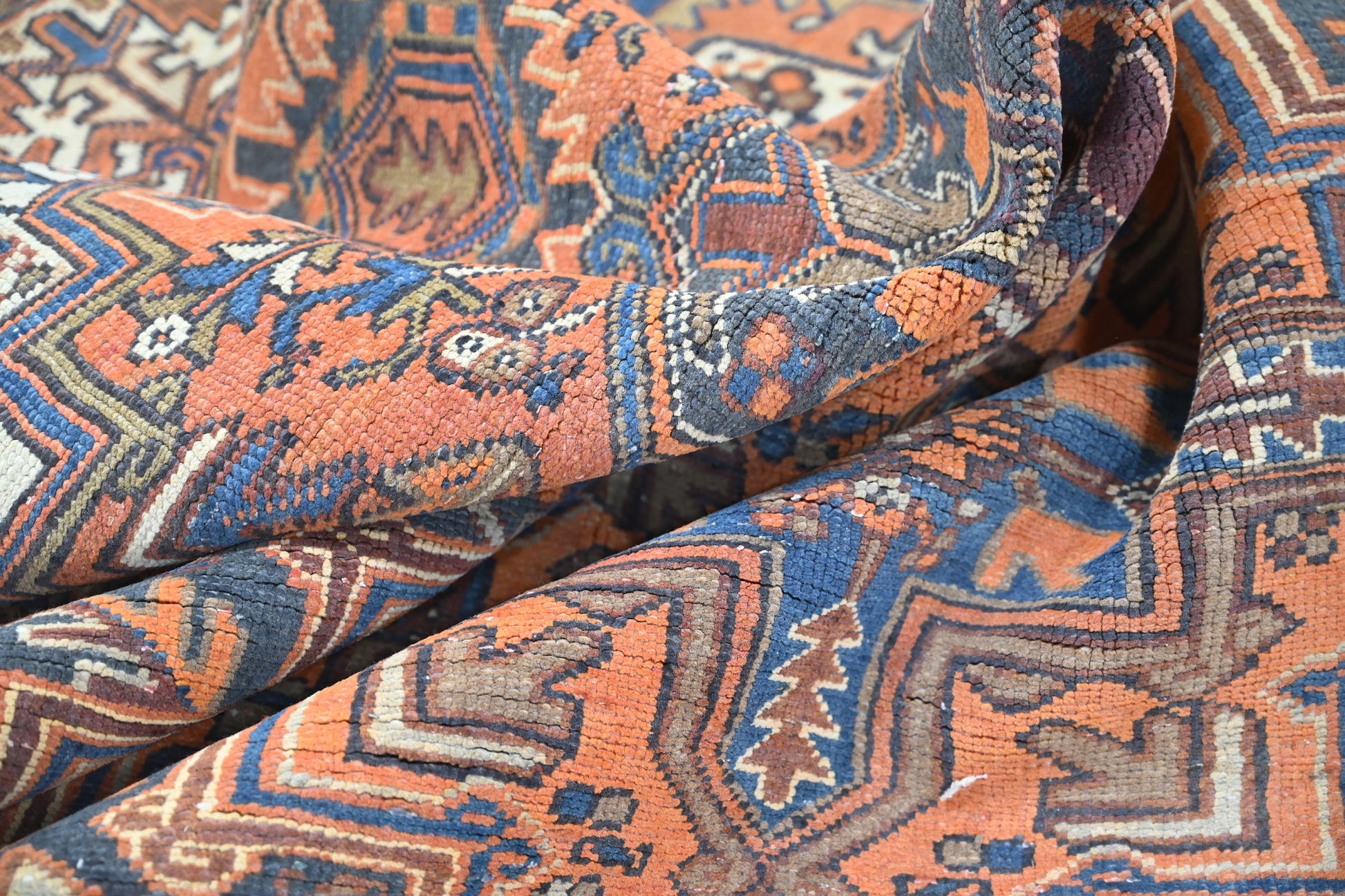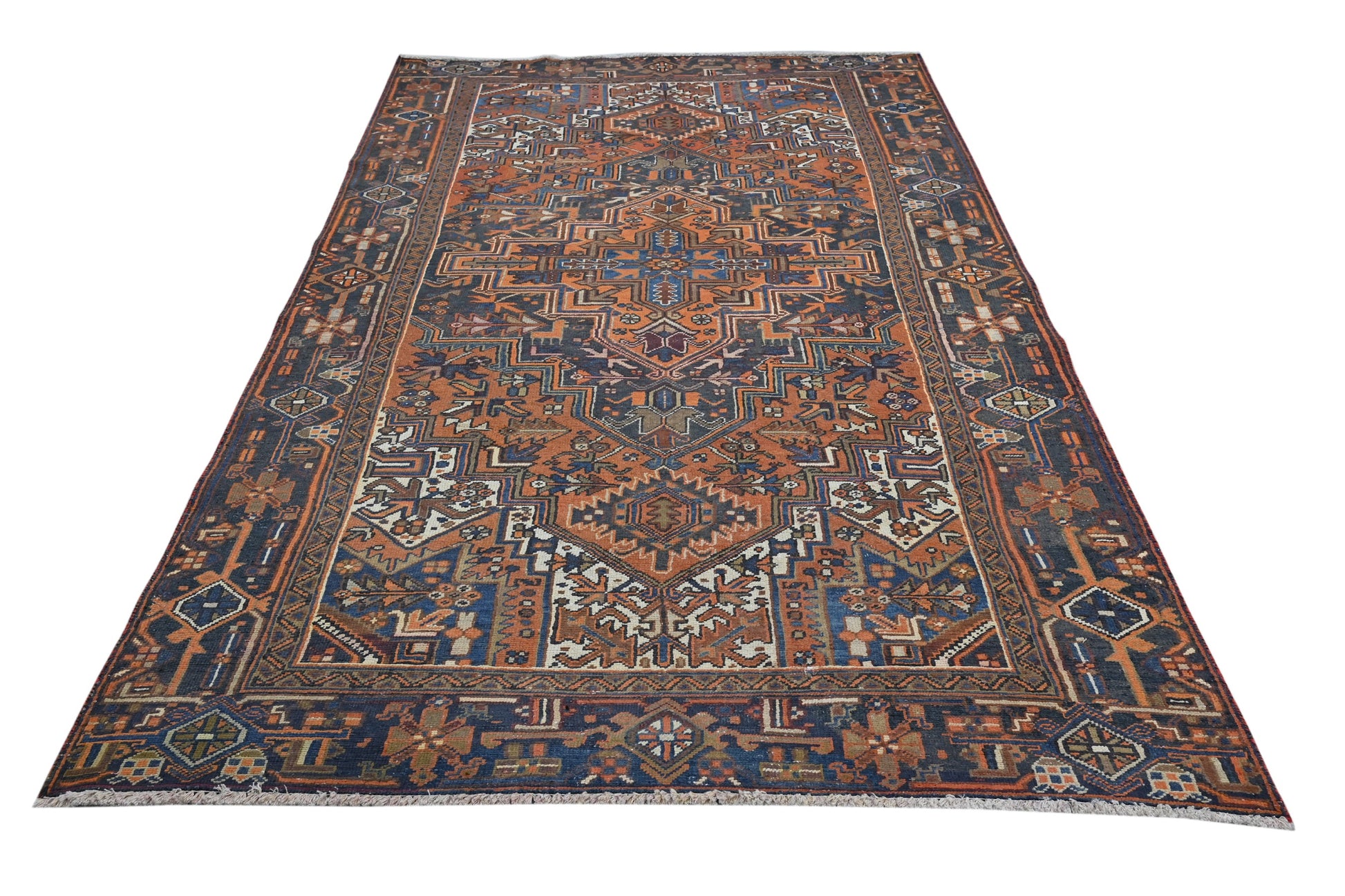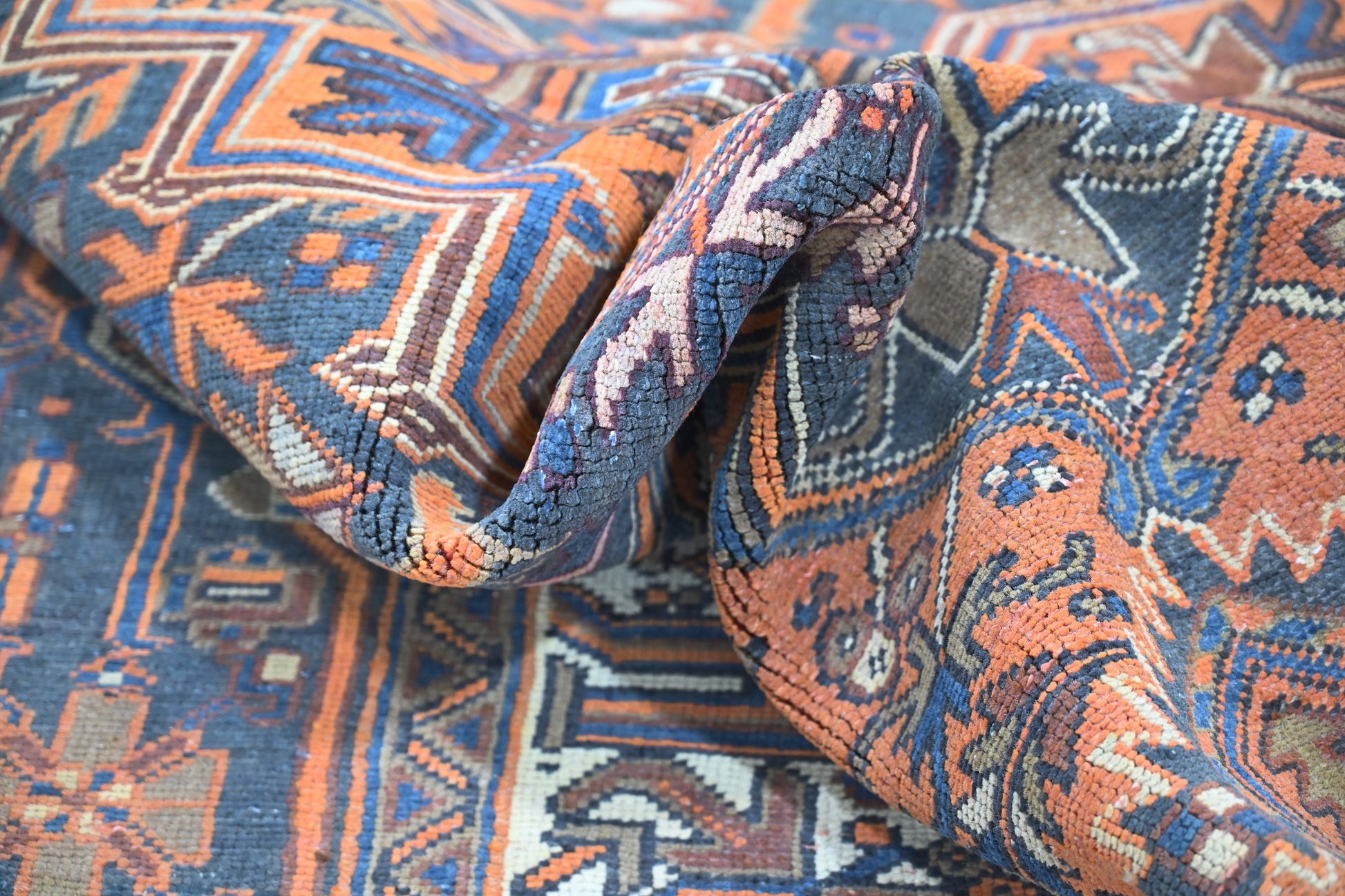 All the rugs we sell are professionally washed and cleaned; age-related wear and natural inconsistencies are inherent in these unique, handcrafted vintage rugs.