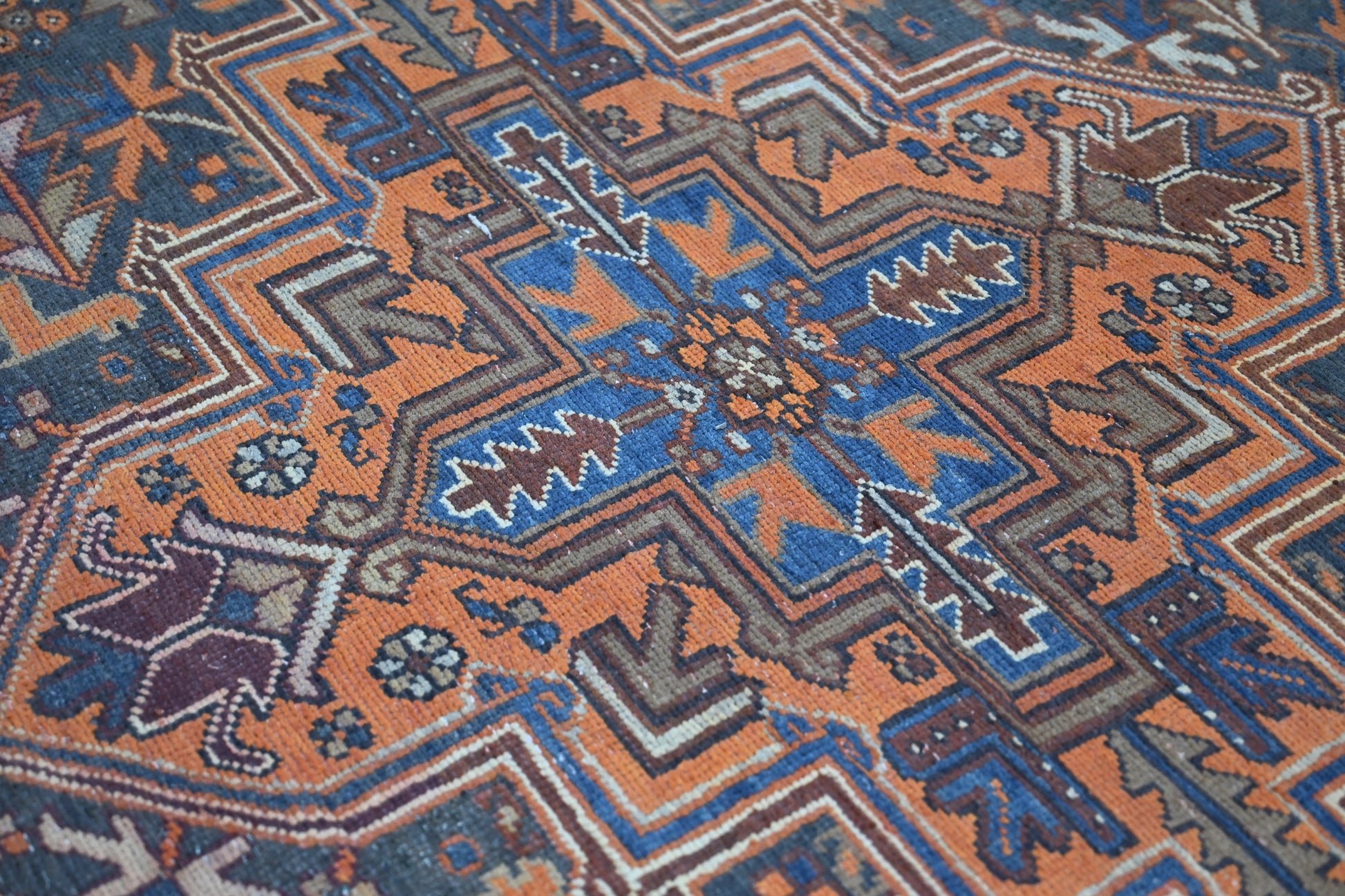 Origin: Woven in the 1970s in Heriz, Iran — a region celebrated for its elegant Persian craftsmanship.