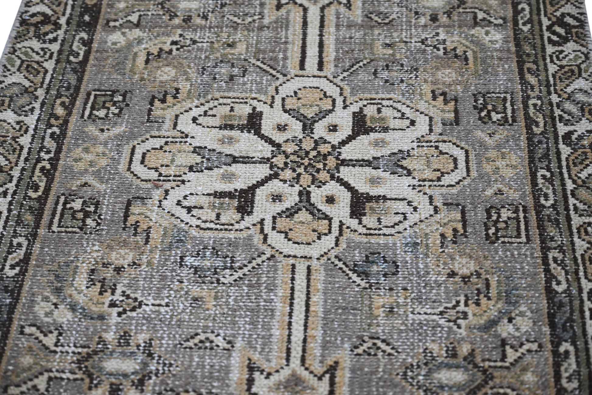 All the rugs we sell are professionally washed and cleaned; age-related wear and natural inconsistencies are inherent in these unique, handcrafted vintage rugs.