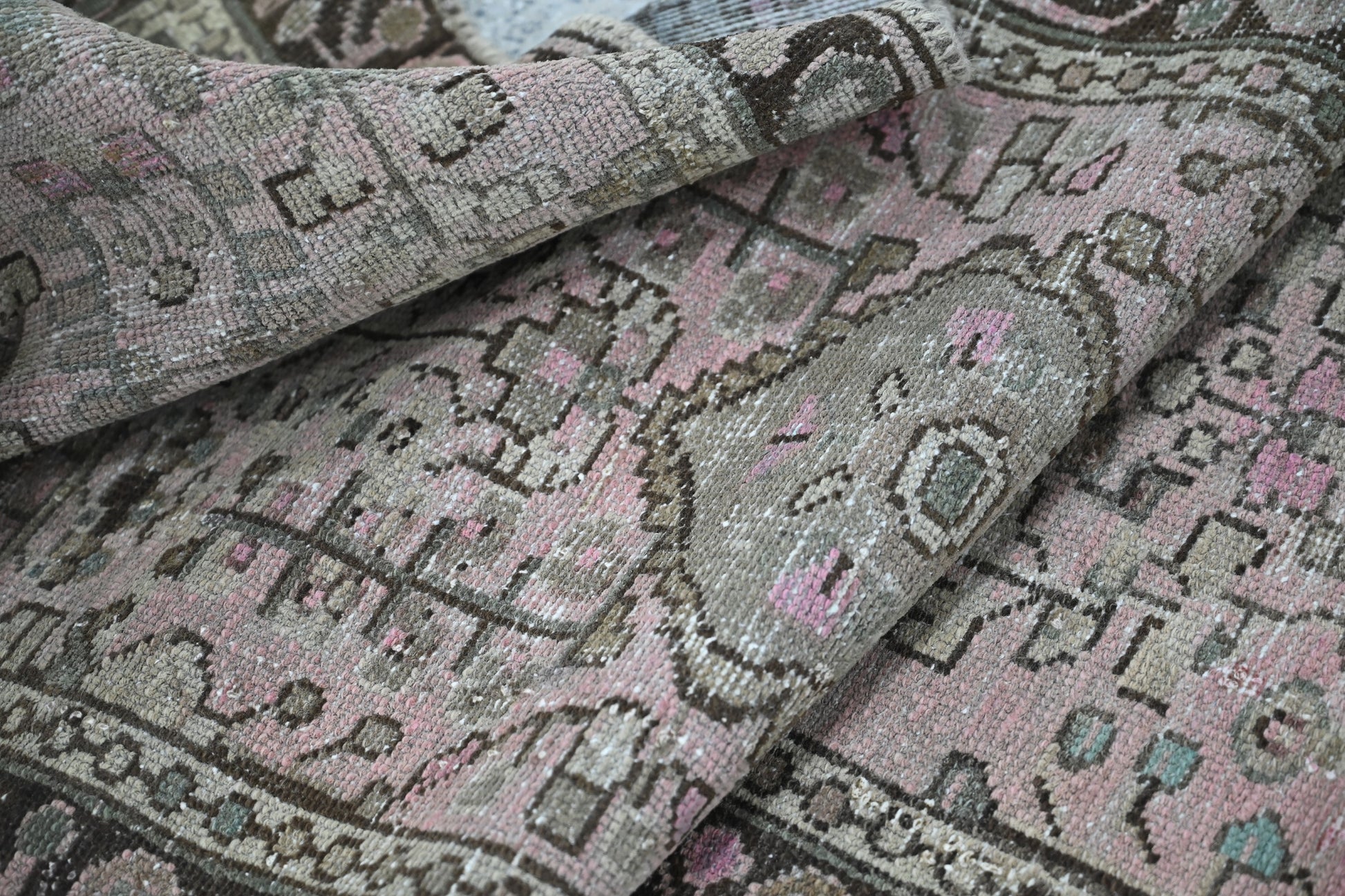All the rugs we sell are professionally washed and cleaned; age-related wear and natural inconsistencies are inherent in these unique, handcrafted vintage rugs.