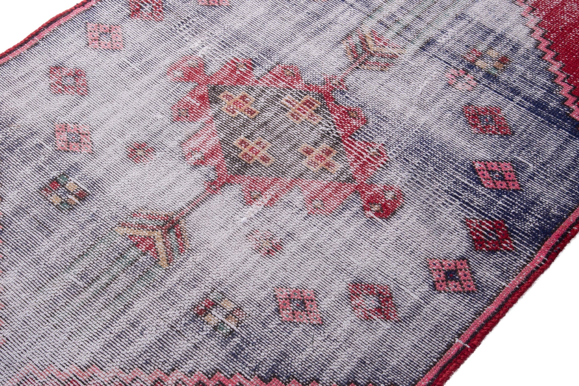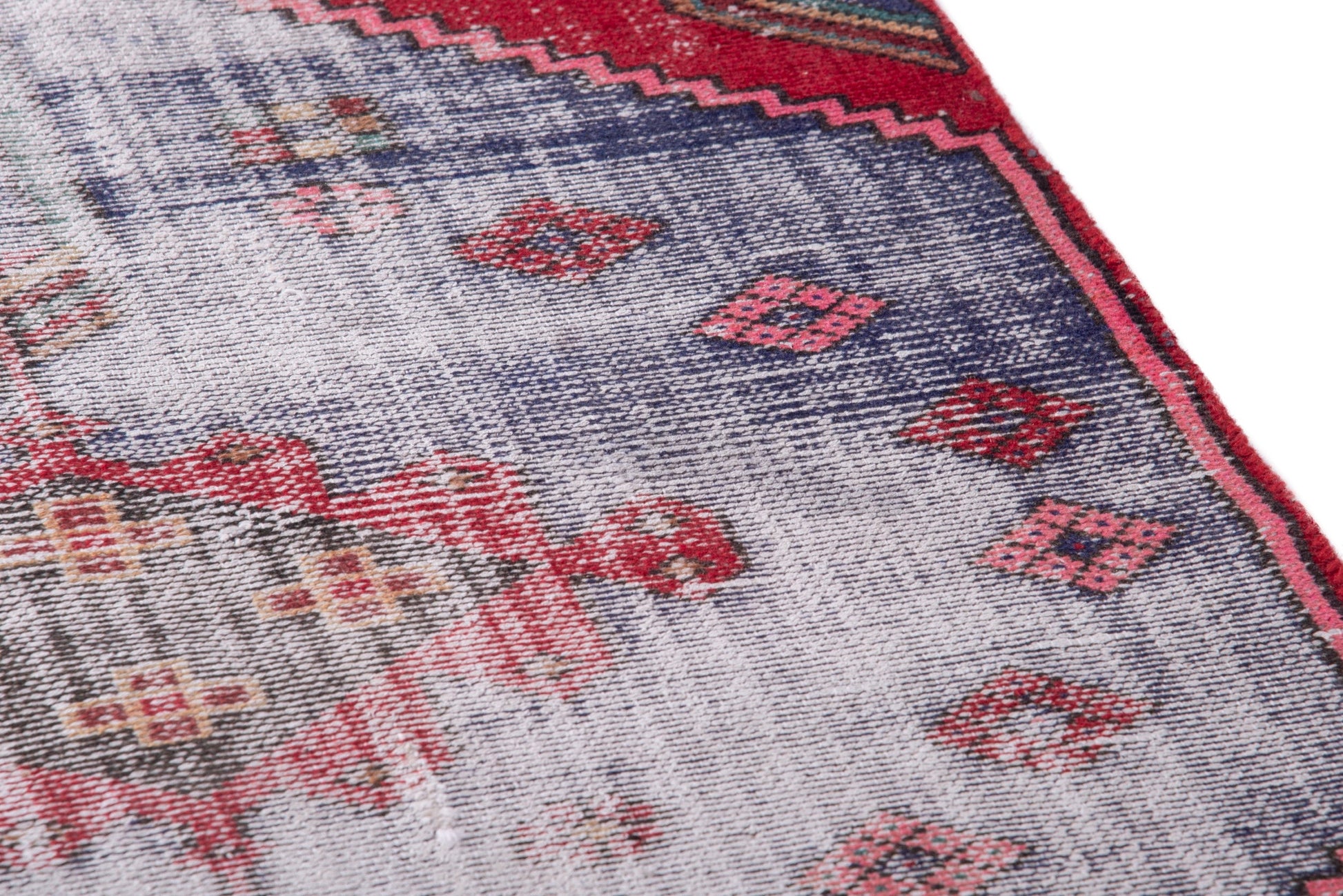 All the rugs we sell are professionally washed and cleaned; age-related wear and natural inconsistencies are inherent in these unique, handcrafted vintage rugs.