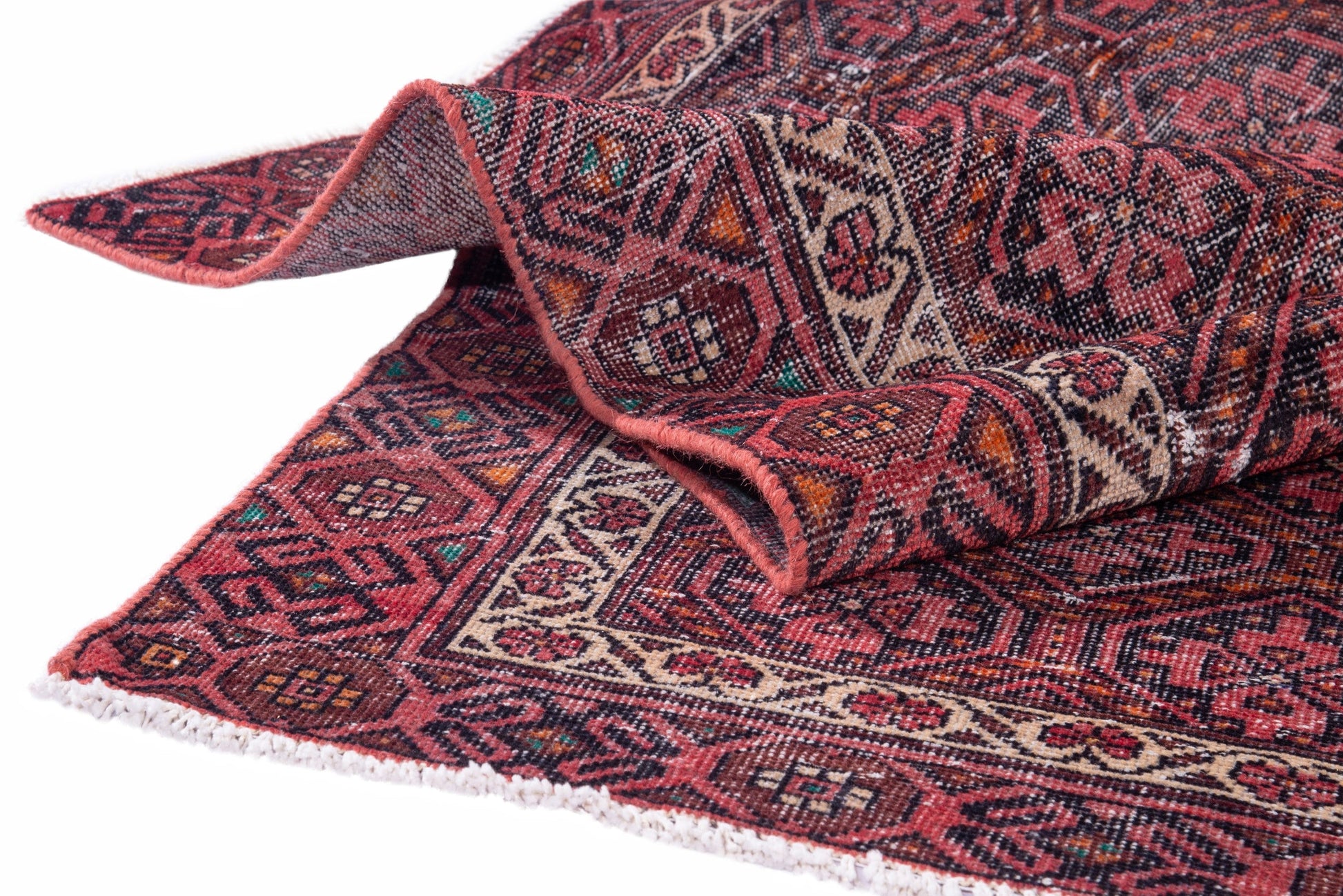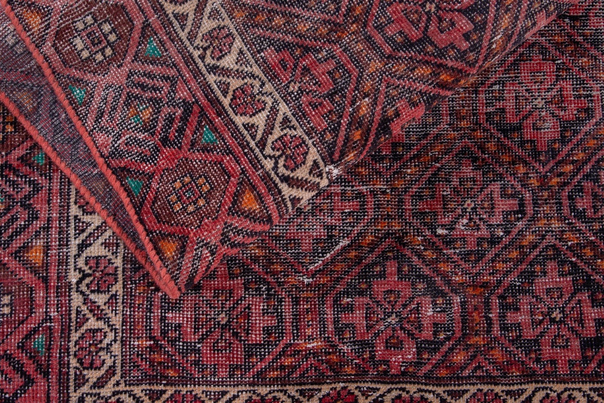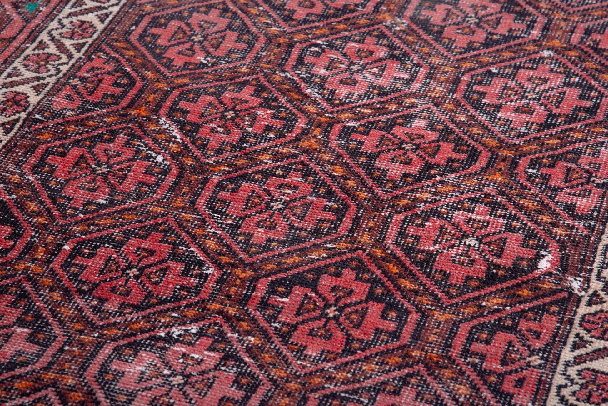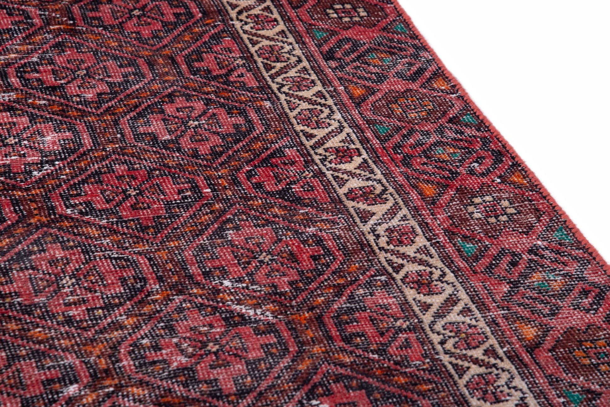 All the rugs we sell are professionally washed and cleaned; age-related wear and natural inconsistencies are inherent in these unique, handcrafted vintage rugs.