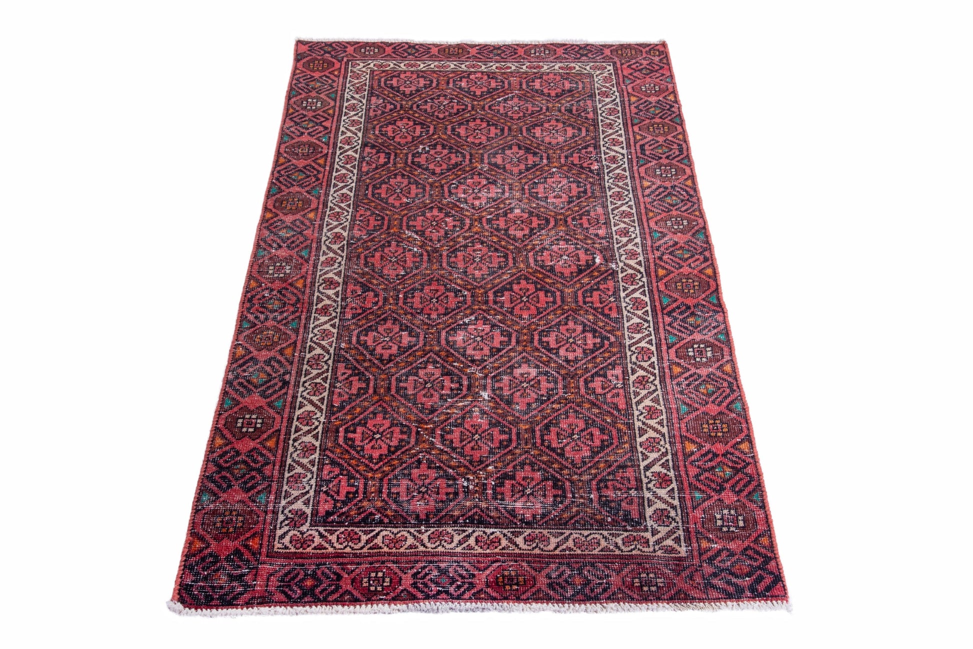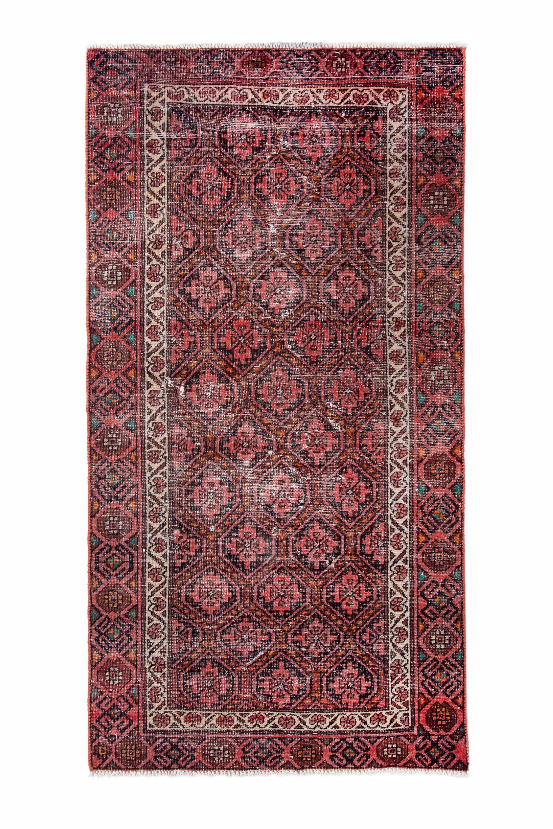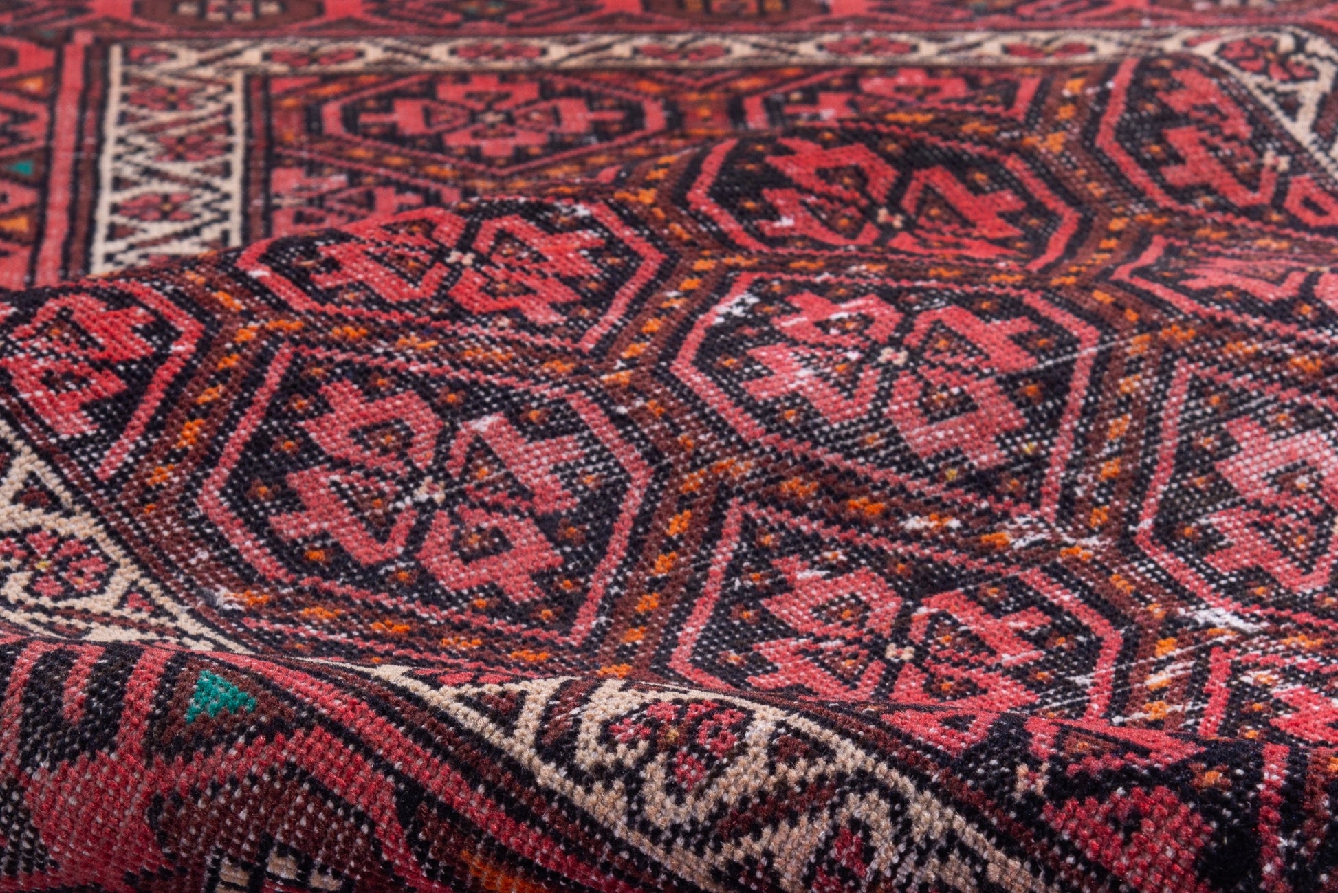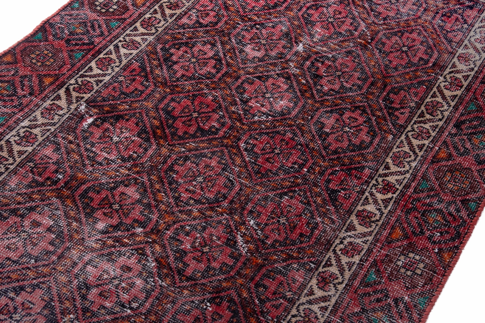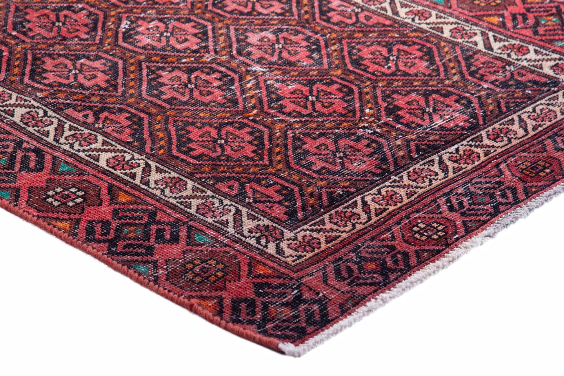 All the rugs we sell are professionally washed and cleaned; age-related wear and natural inconsistencies are inherent in these unique, handcrafted vintage rugs.
