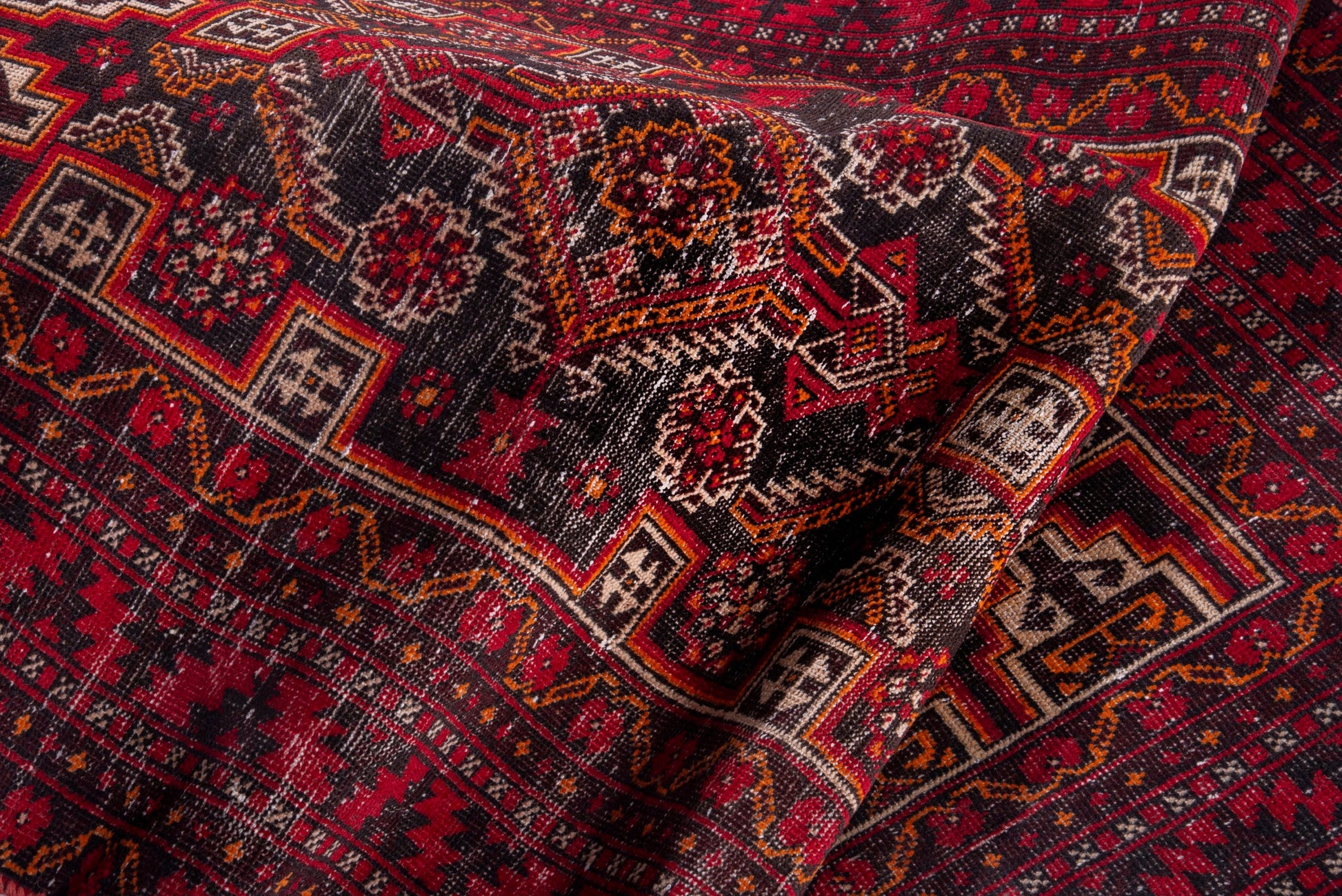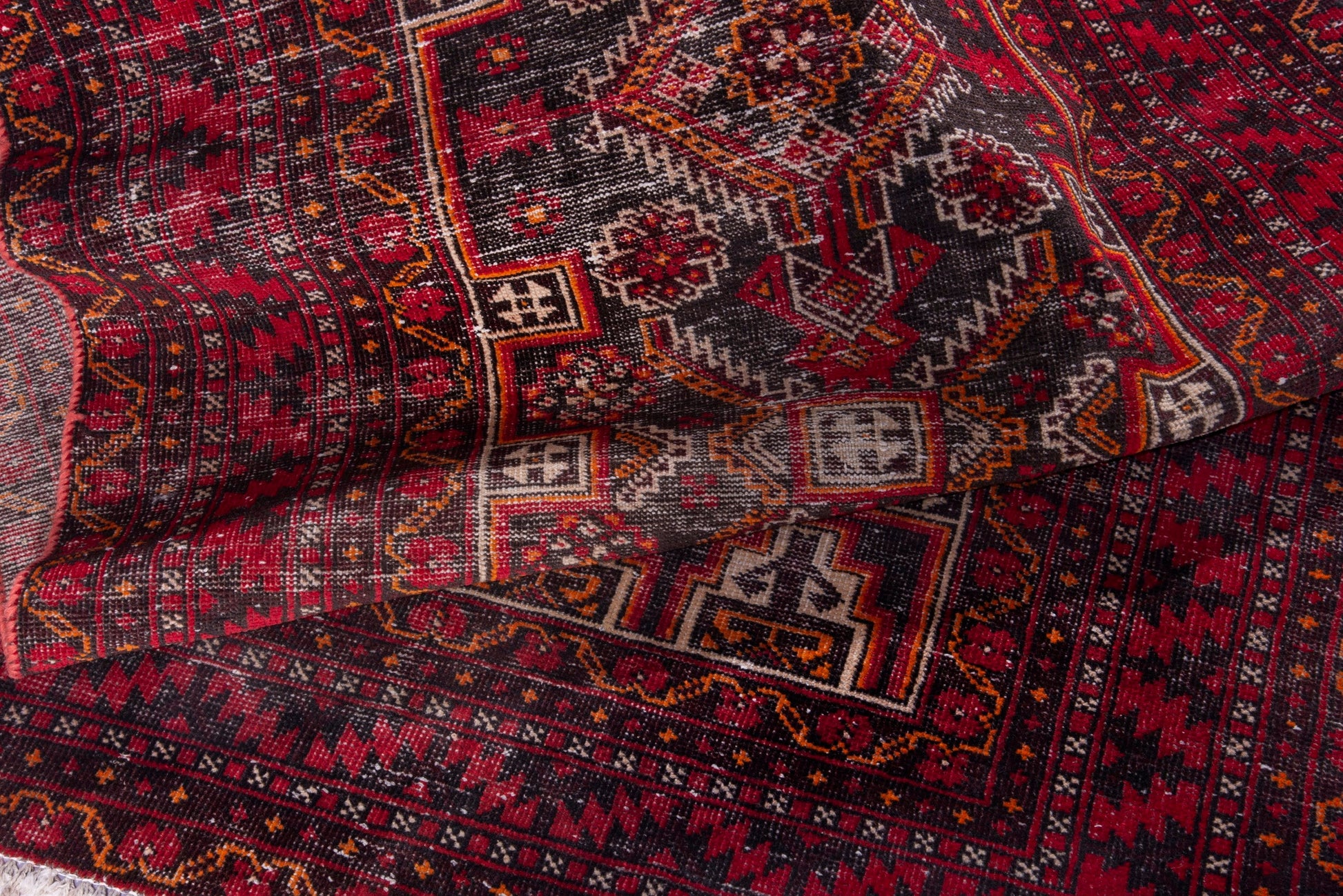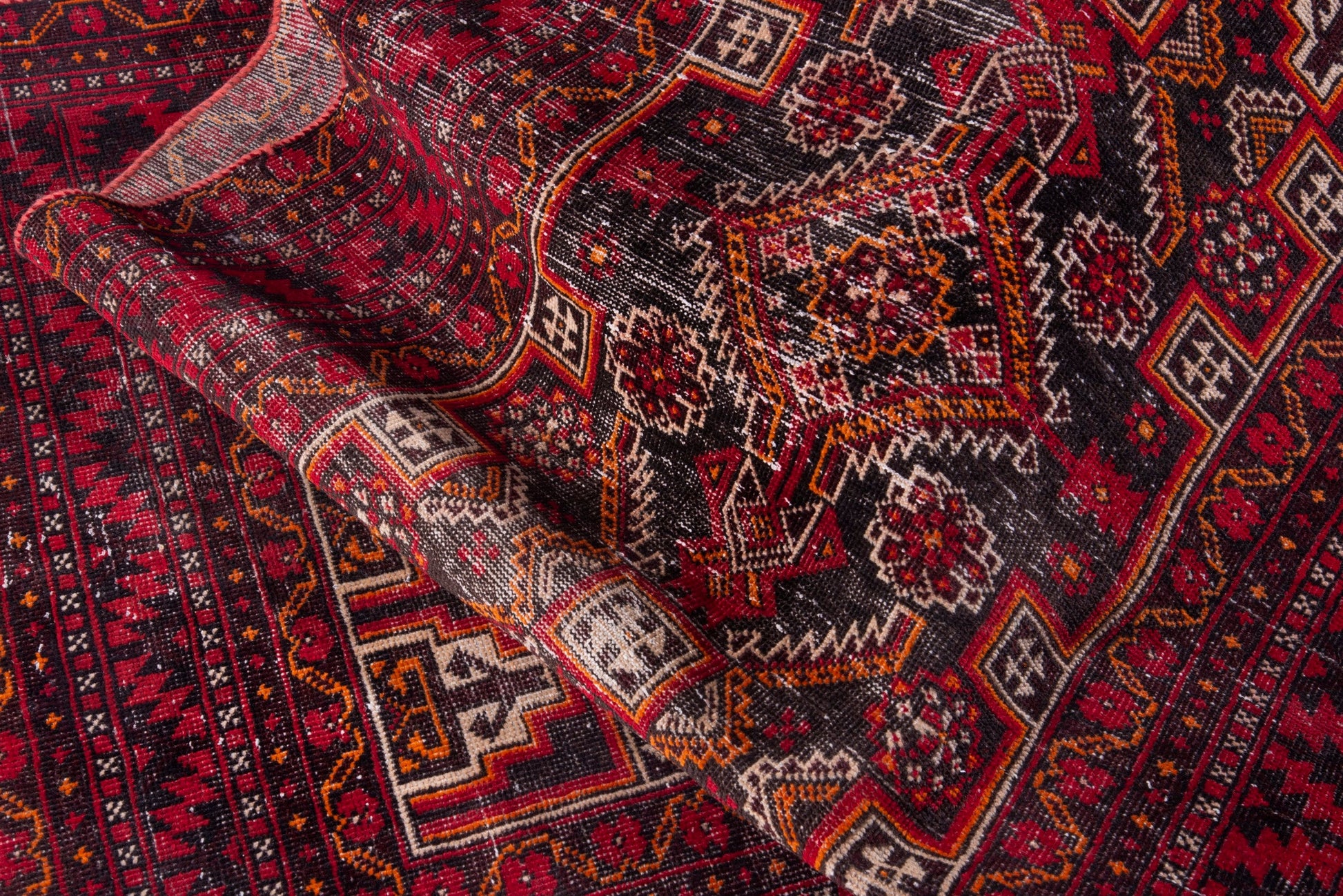 All the rugs we sell are professionally washed and cleaned; age-related wear and natural inconsistencies are inherent in these unique, handcrafted vintage rugs.