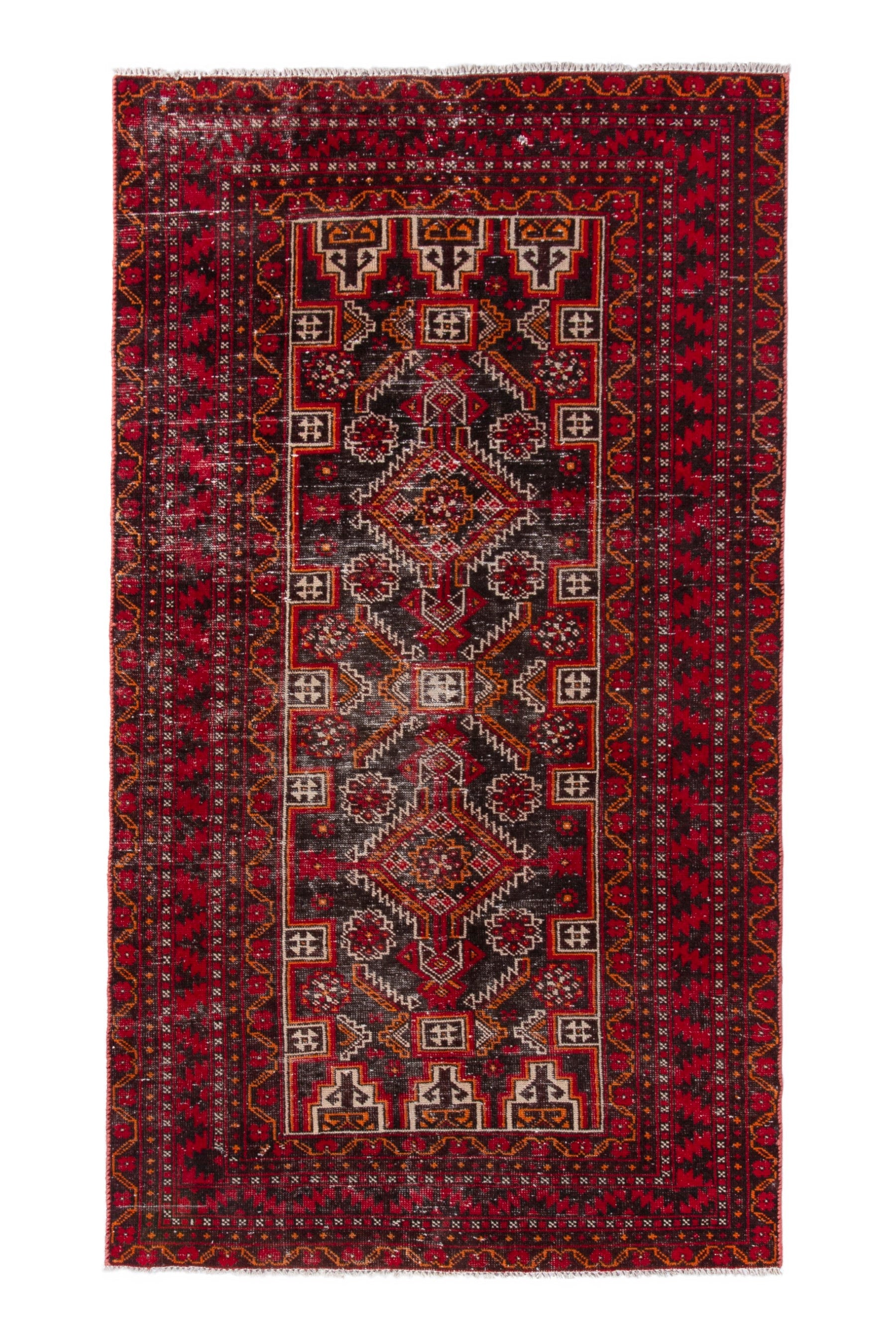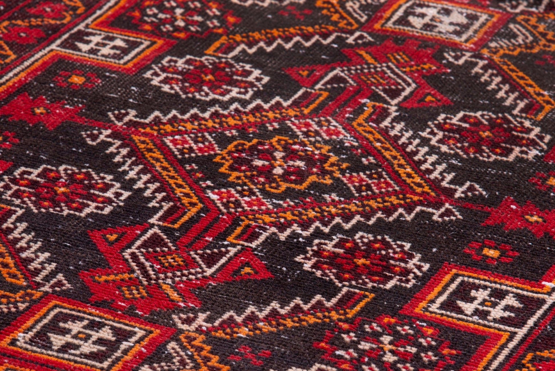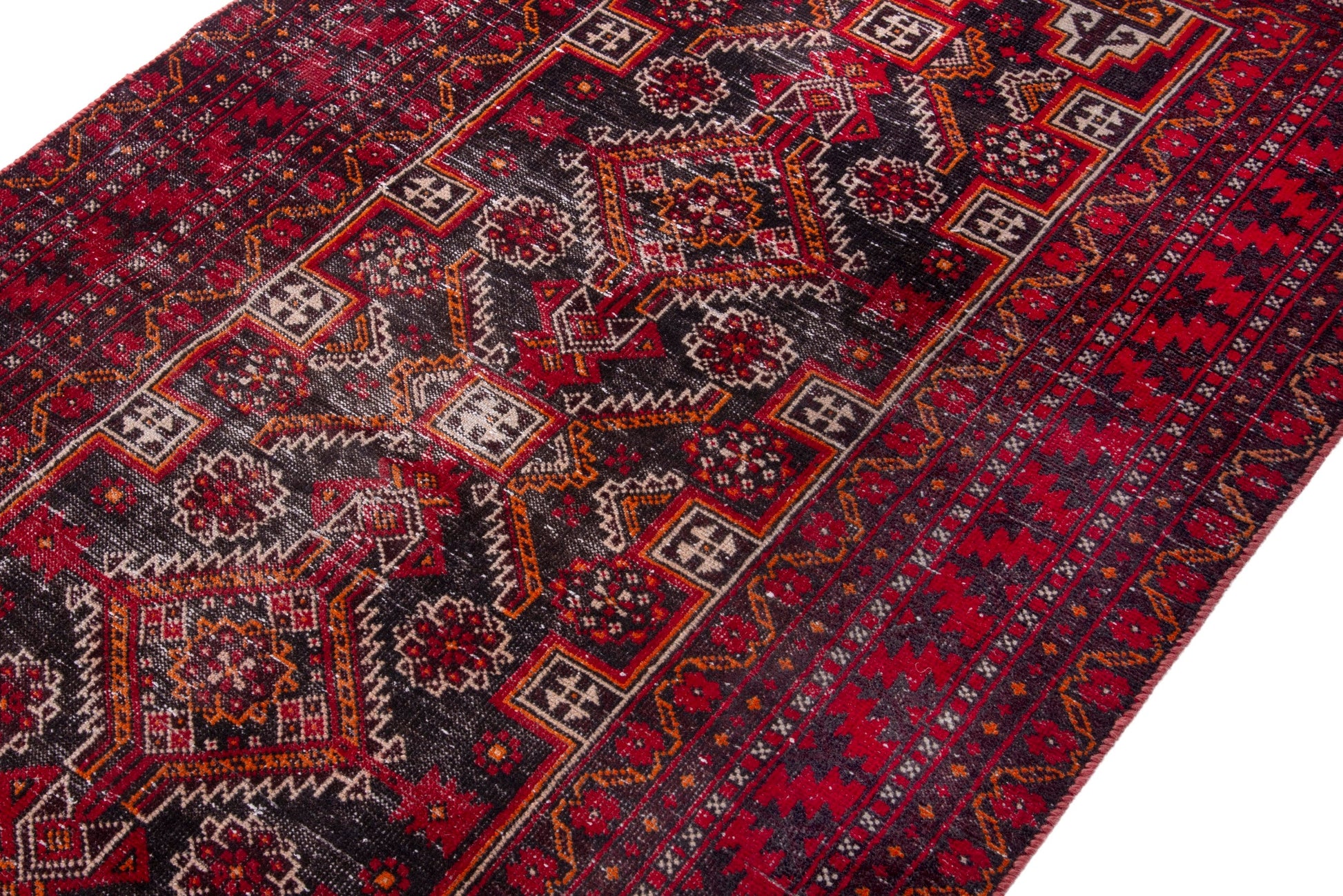 All the rugs we sell are professionally washed and cleaned; age-related wear and natural inconsistencies are inherent in these unique, handcrafted vintage rugs.