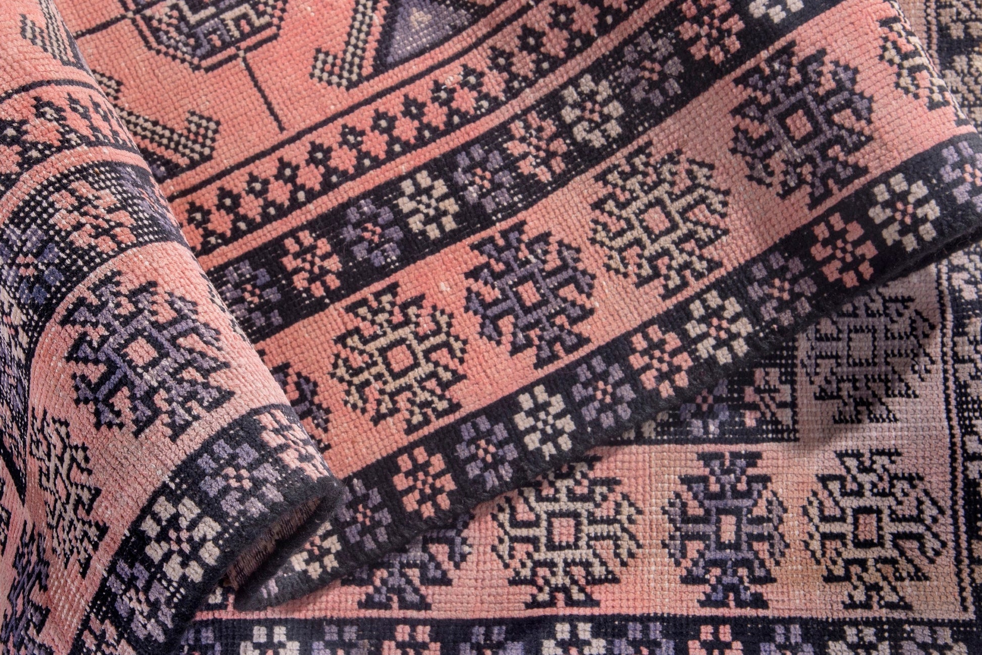 All the rugs we sell are professionally washed and cleaned; age-related wear and natural inconsistencies are inherent in these unique, handcrafted vintage rugs.
