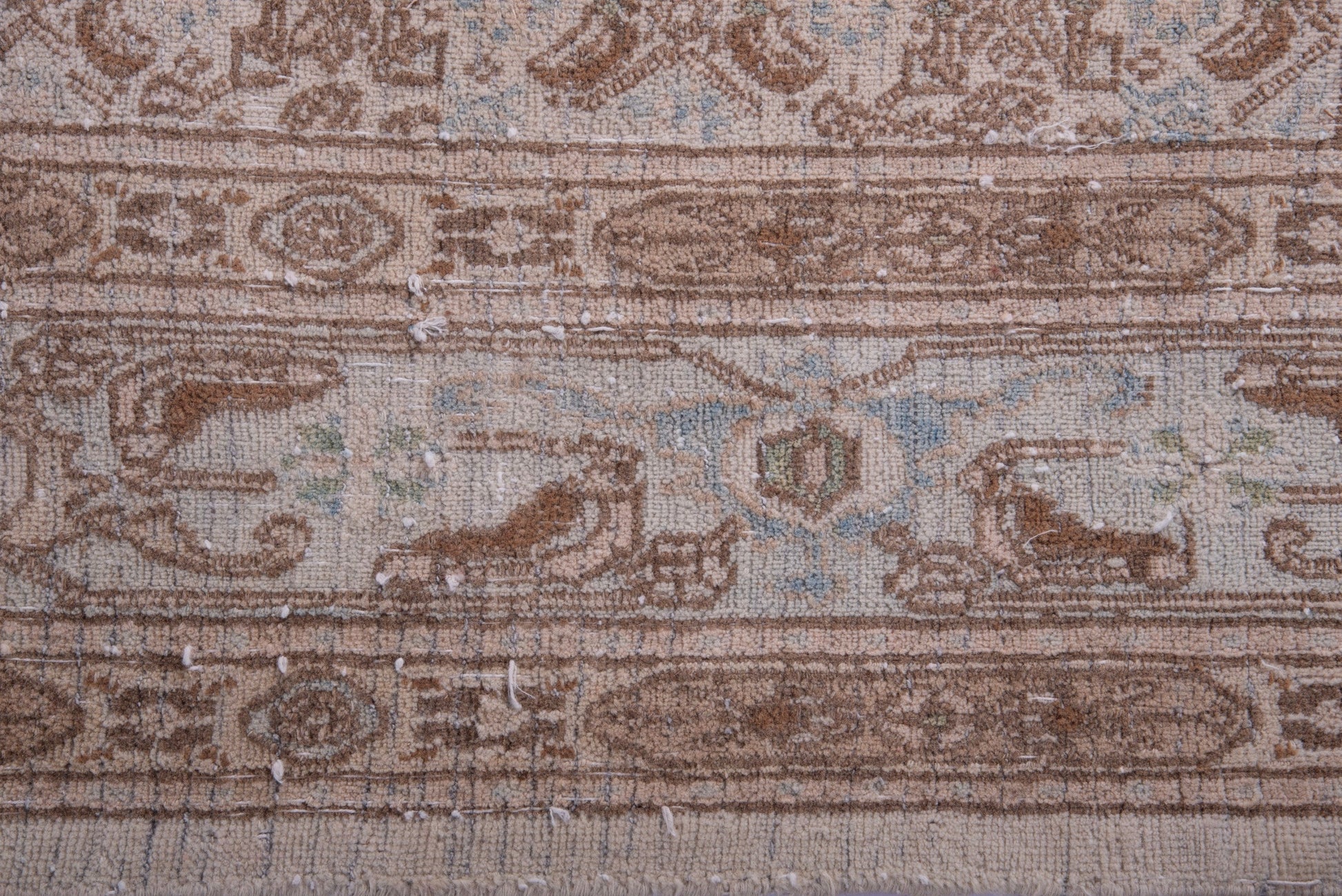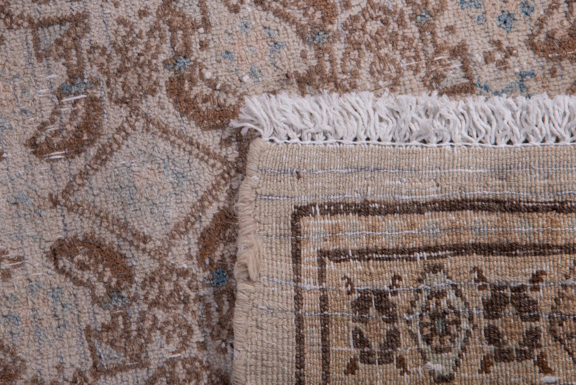 This rug is a hand-knotted rug, and edges are hand sewn.
