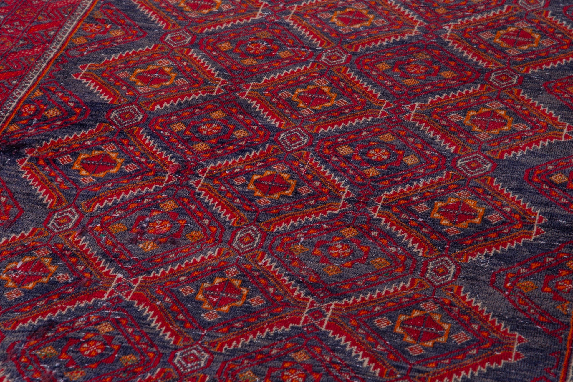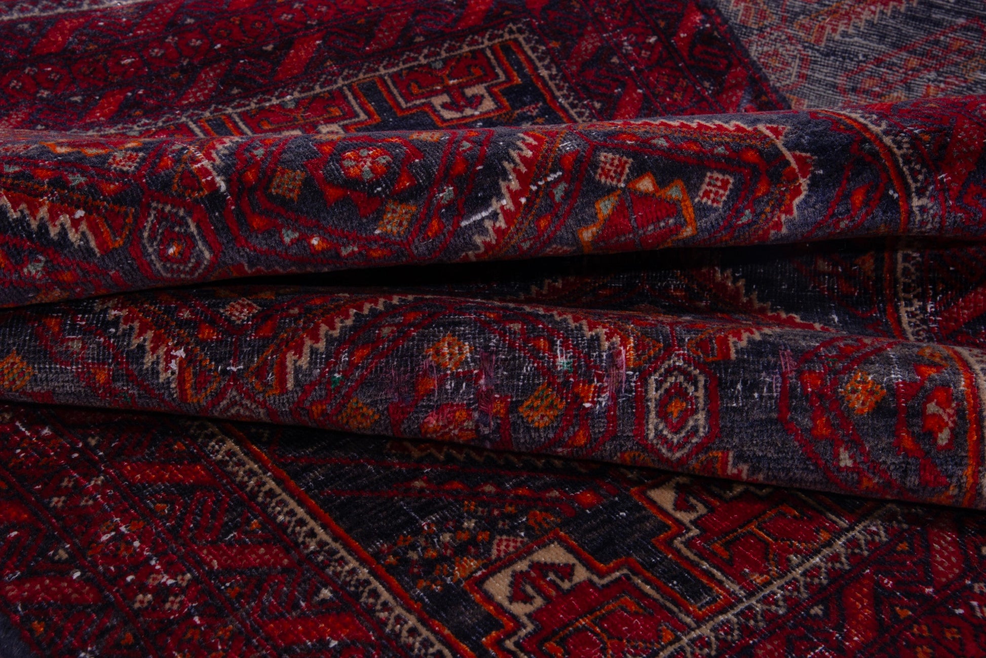 All the rugs we sell are professionally washed and cleaned; age-related wear and natural inconsistencies are inherent in these unique, handcrafted vintage rugs.