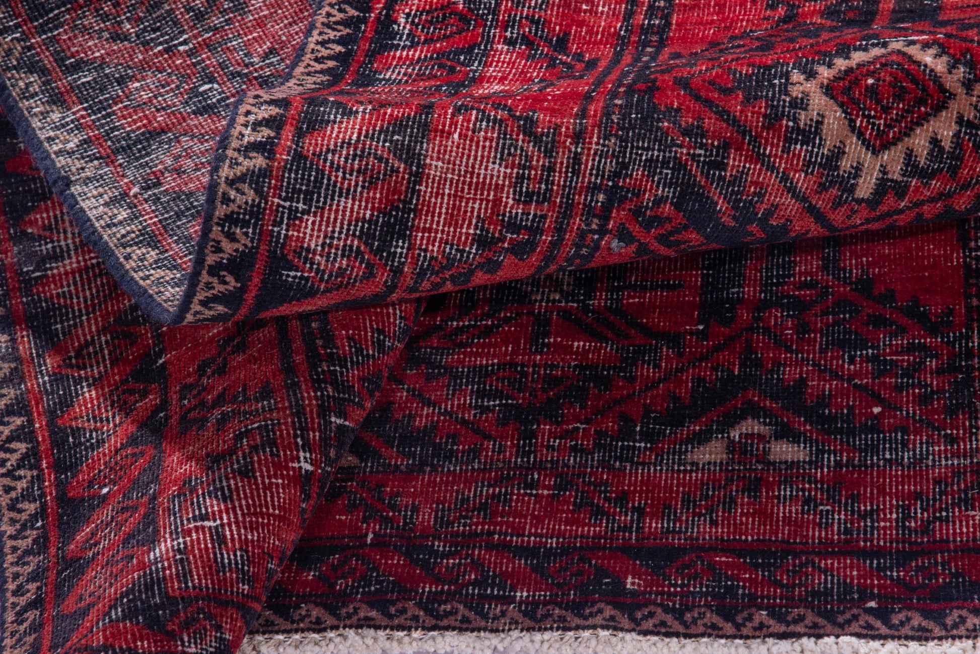 All the rugs we sell are professionally washed and cleaned; age-related wear and natural inconsistencies are inherent in these unique, handcrafted vintage rugs.