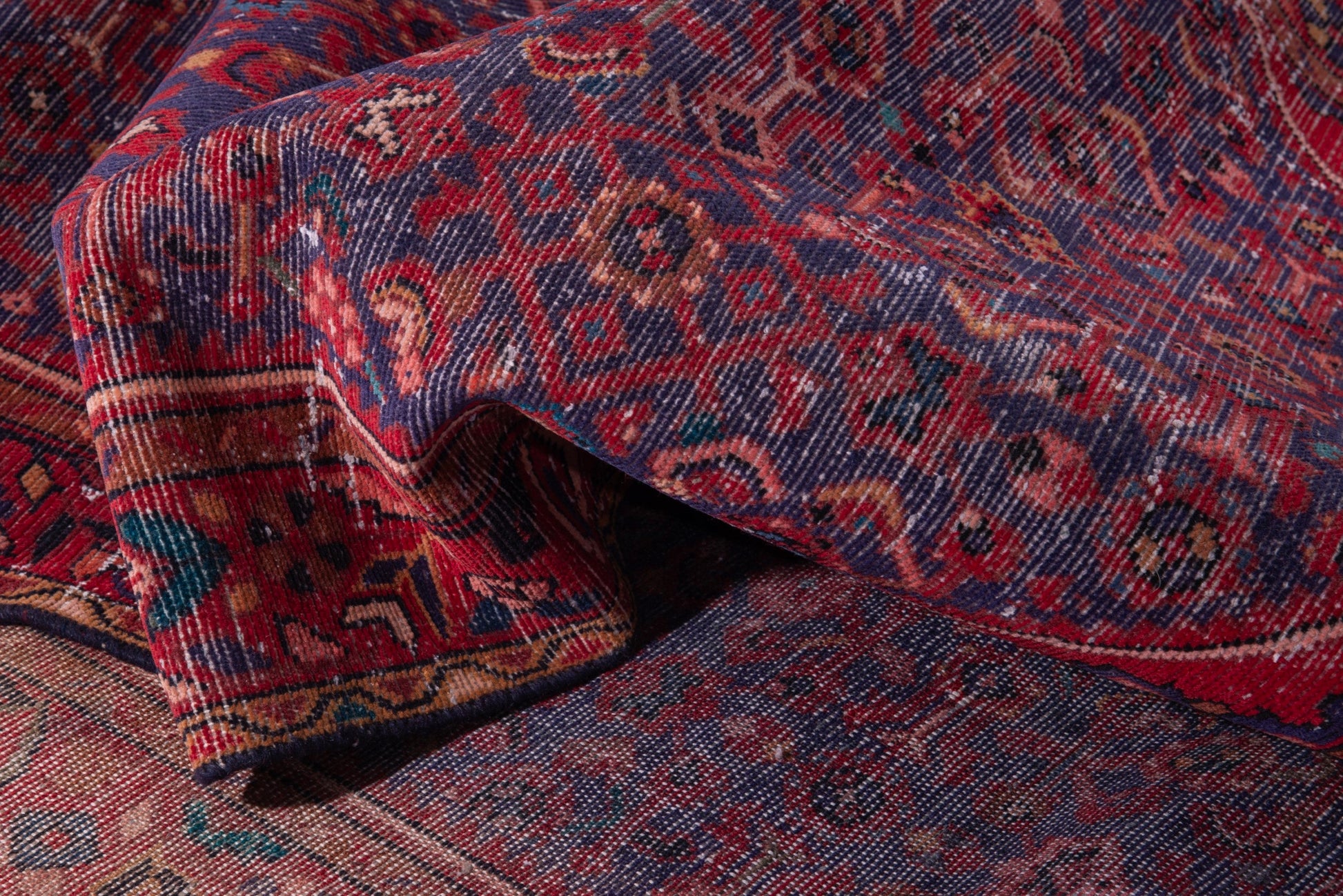 All the rugs we sell are professionally washed and cleaned; age-related wear and natural inconsistencies are inherent in these unique, handcrafted vintage rugs.