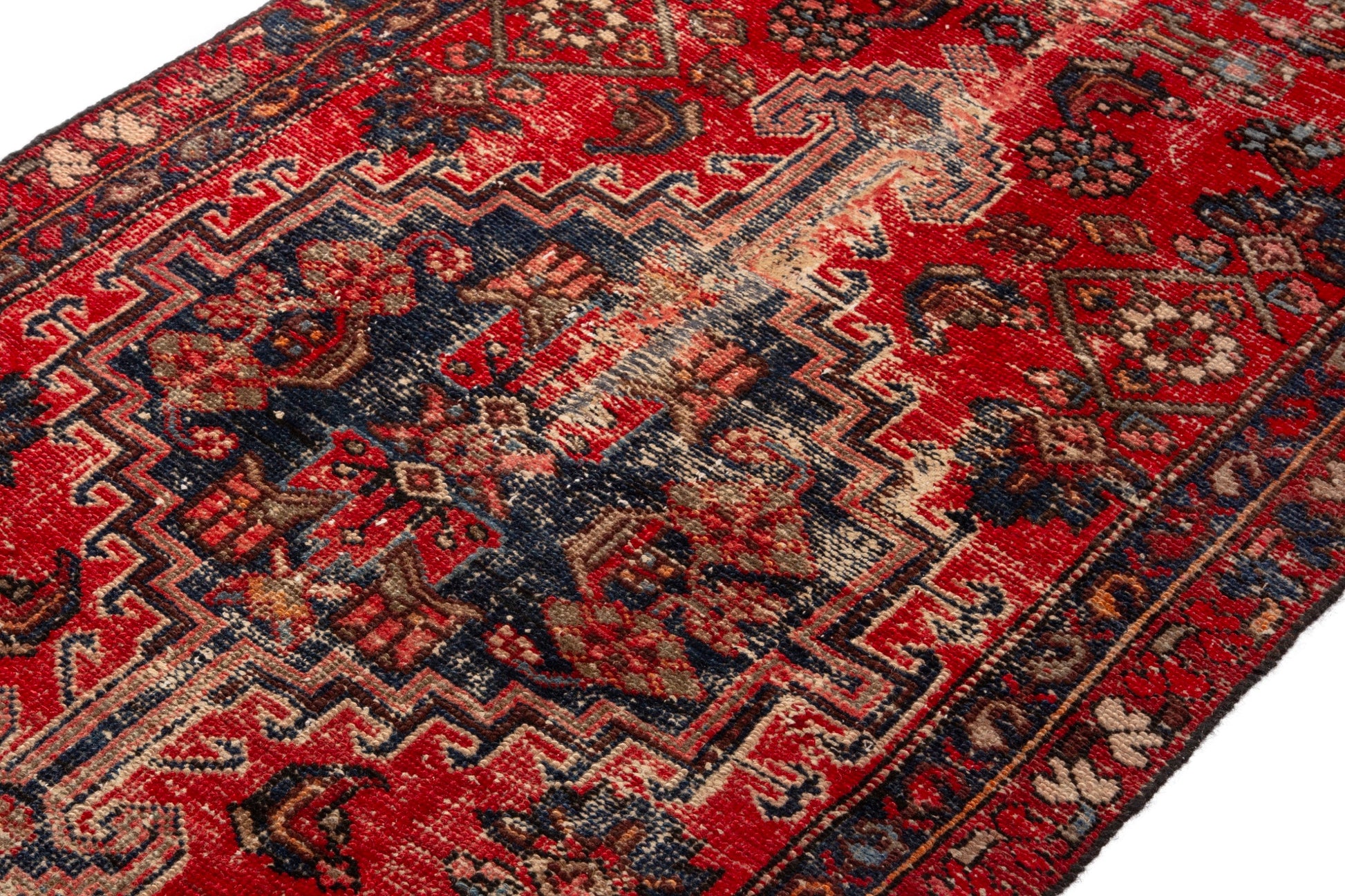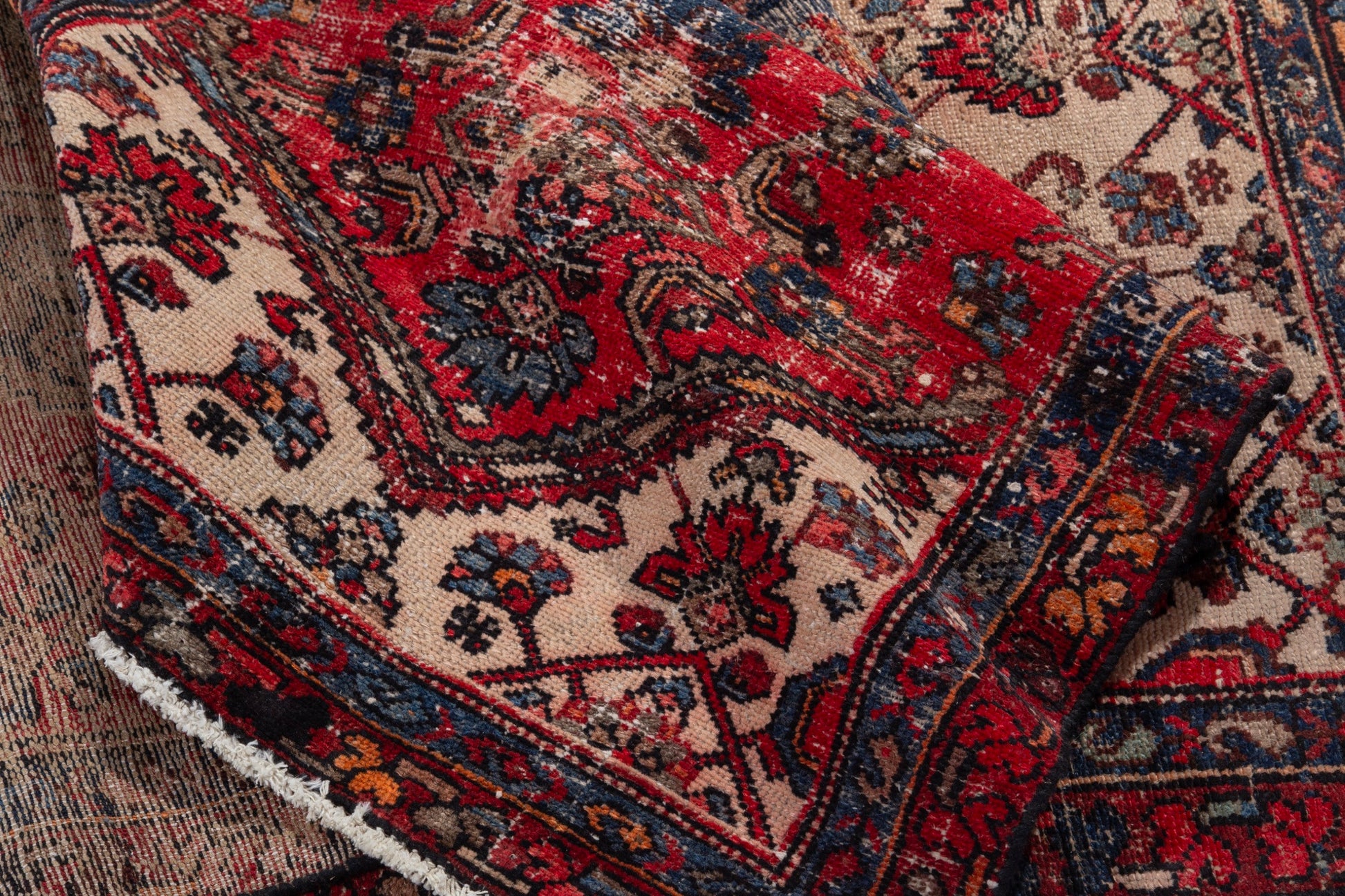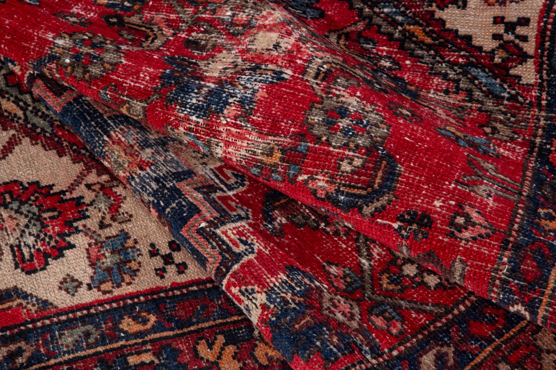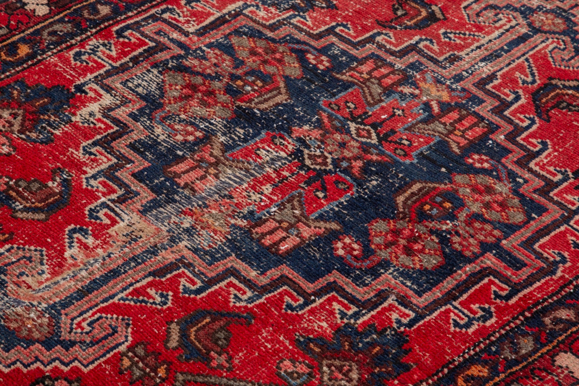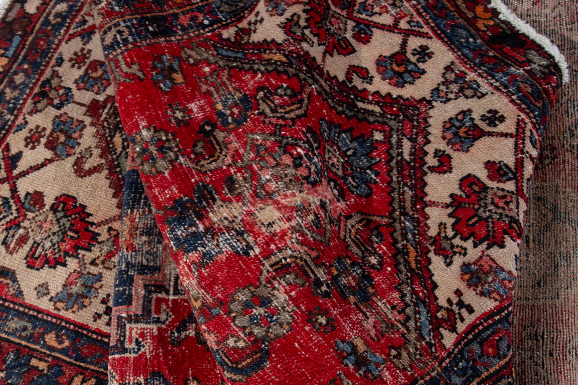 All the rugs we sell are professionally washed and cleaned; age-related wear and natural inconsistencies are inherent in these unique, handcrafted vintage rugs.
