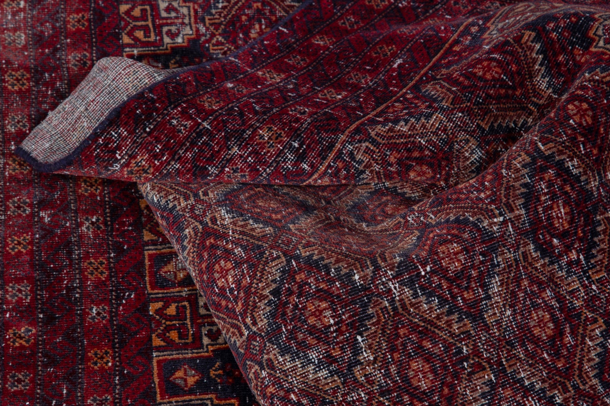 All the rugs we sell are professionally washed and cleaned; age-related wear and natural inconsistencies are inherent in these unique, handcrafted vintage rugs.