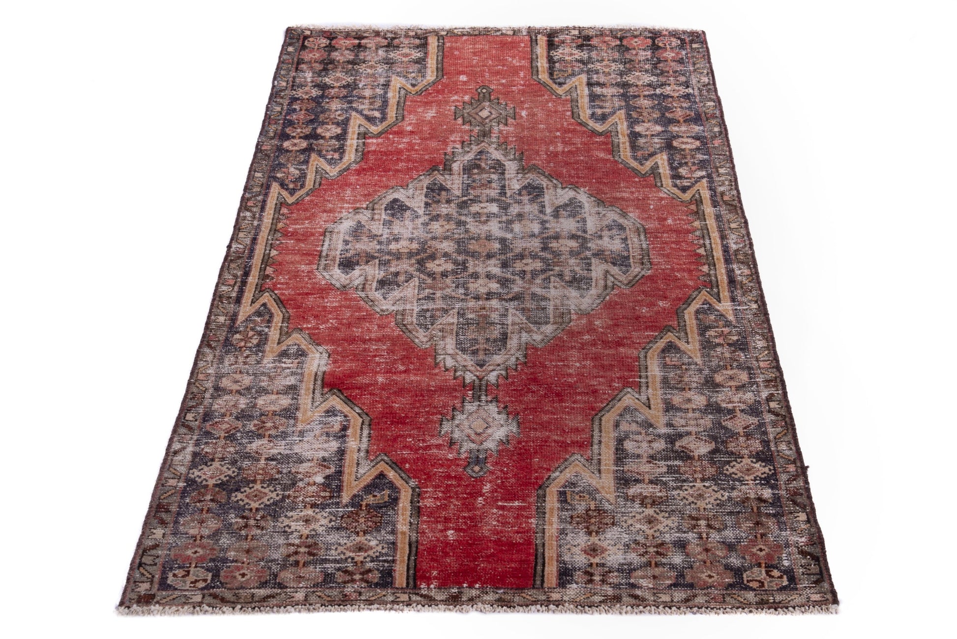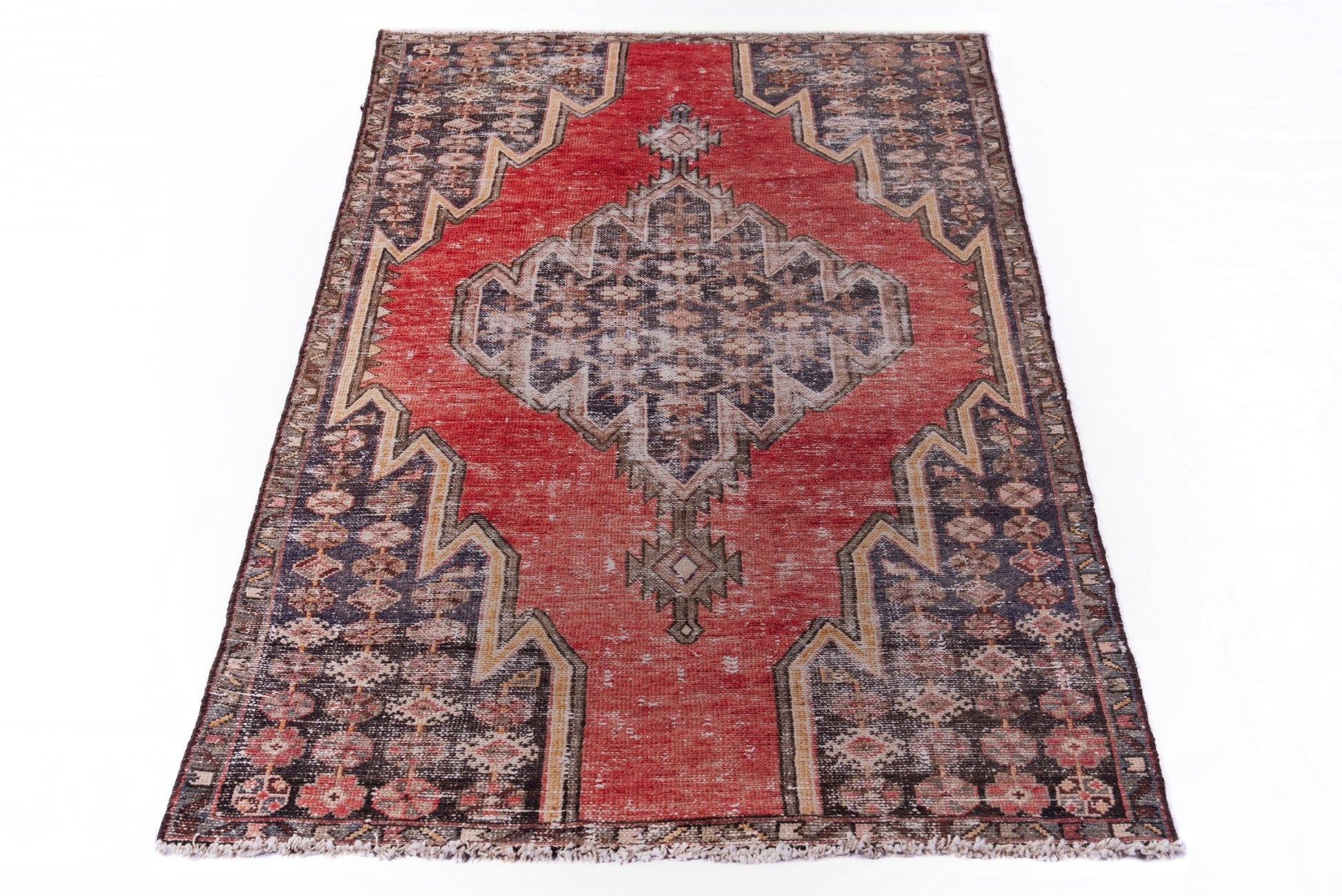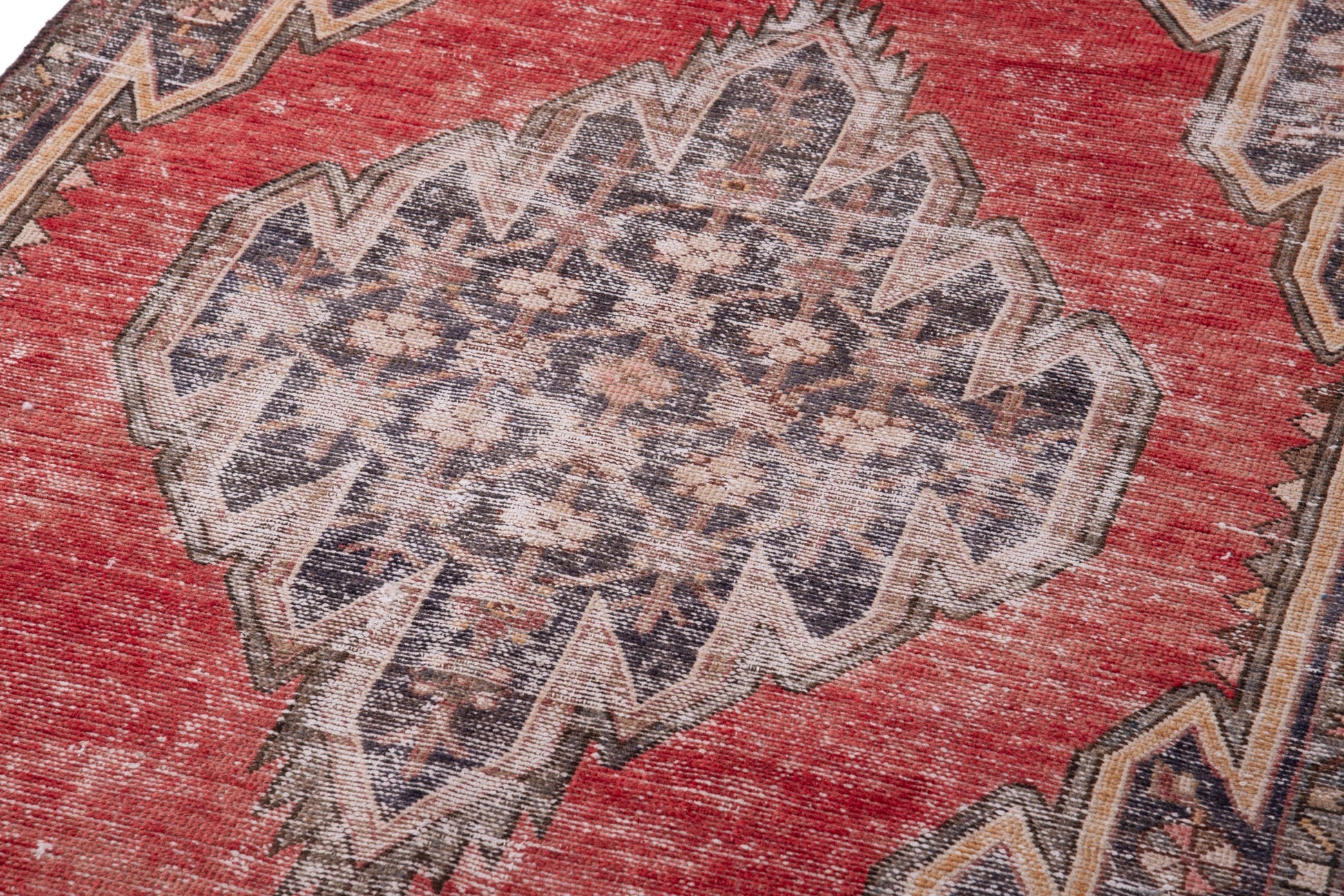All the rugs we sell are professionally washed and cleaned; age-related wear and natural inconsistencies are inherent in these unique, handcrafted vintage rugs.