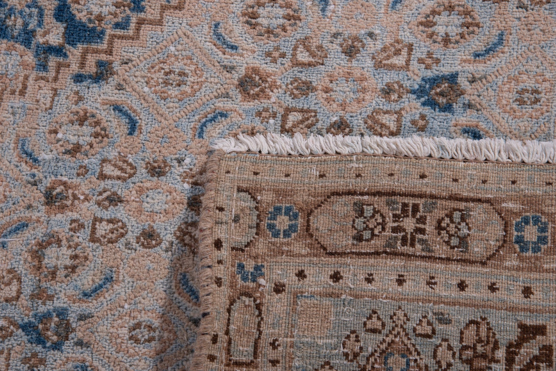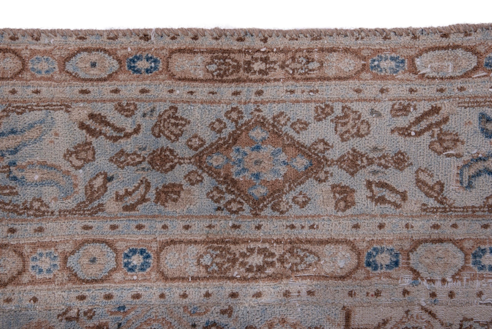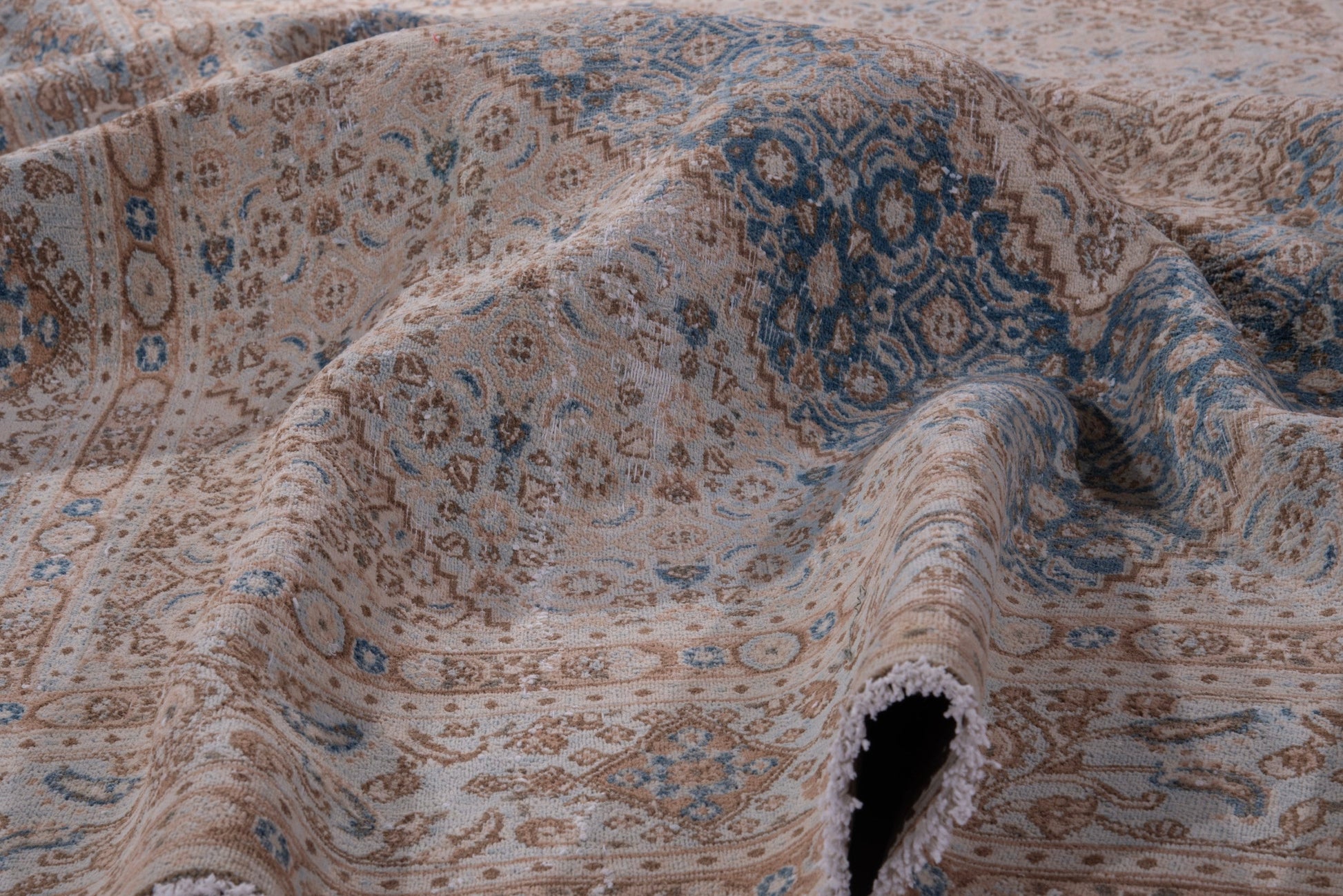 This rug is a hand-knotted rug, and edges are hand sewn.