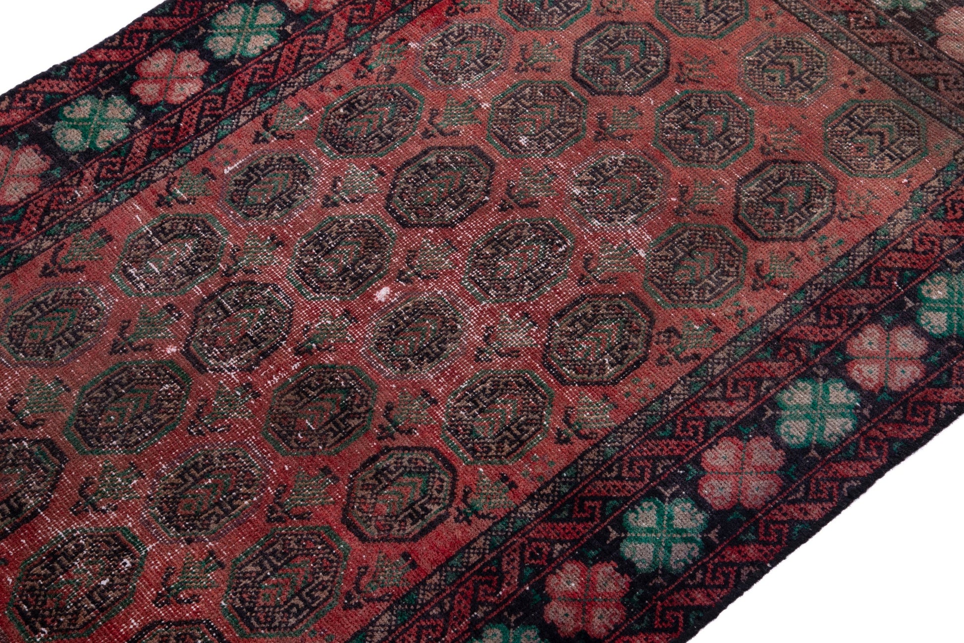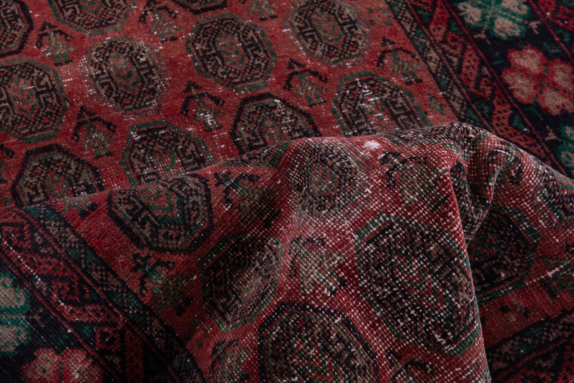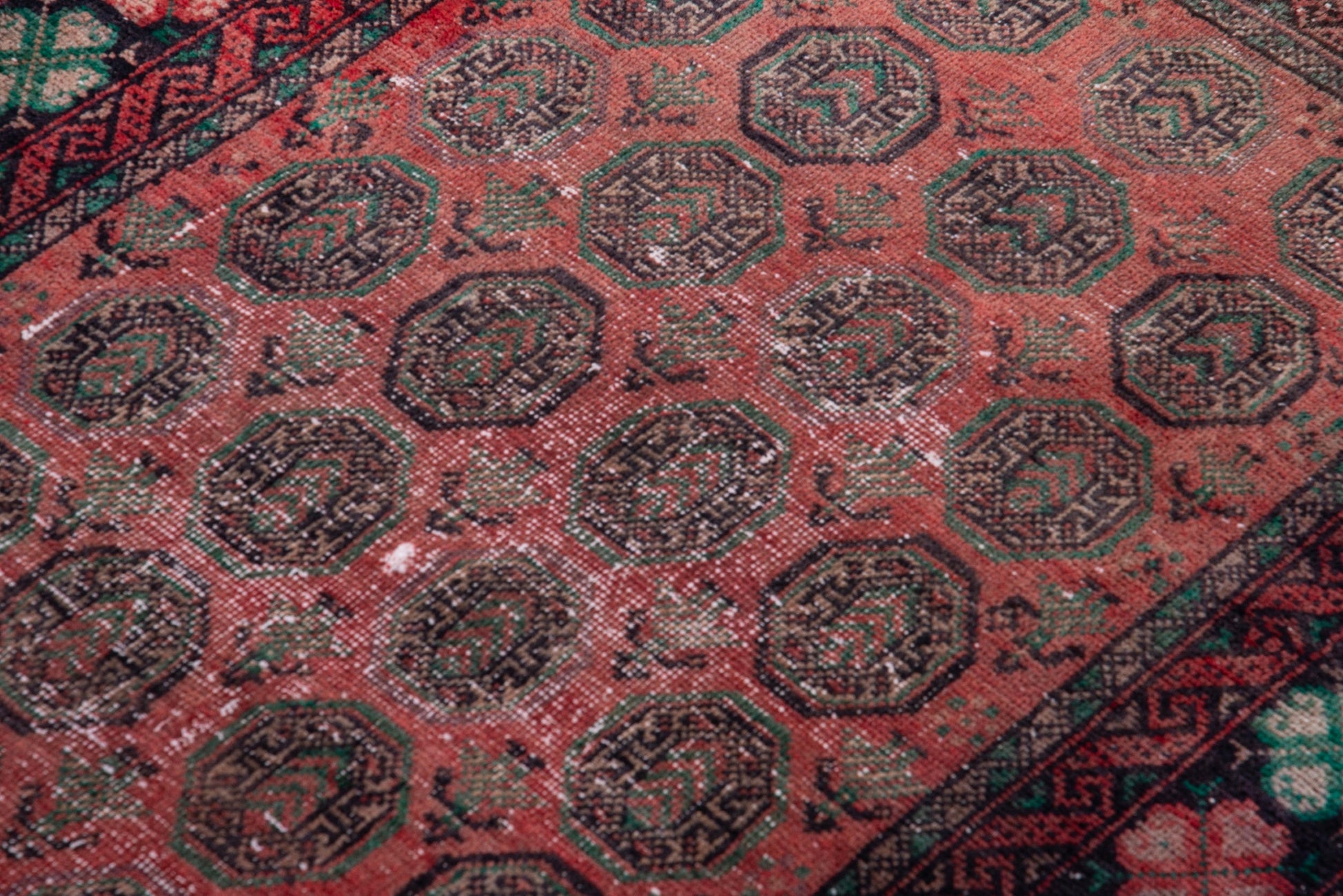 All the rugs we sell are professionally washed and cleaned; age-related wear and natural inconsistencies are inherent in these unique, handcrafted vintage rugs.
