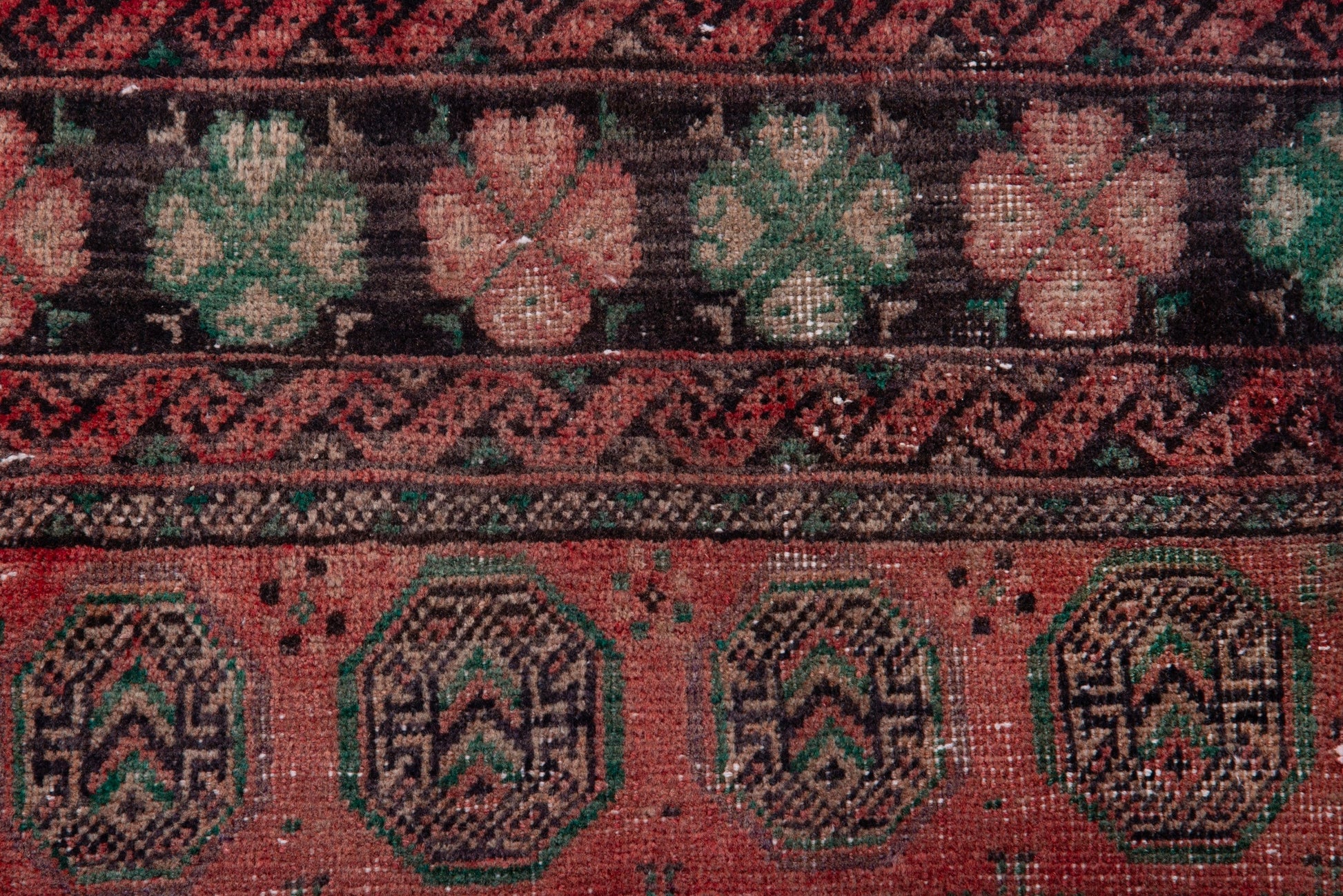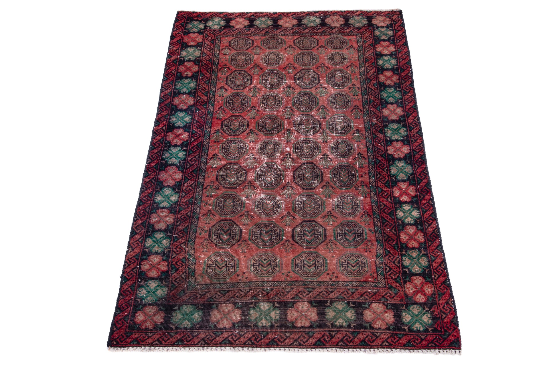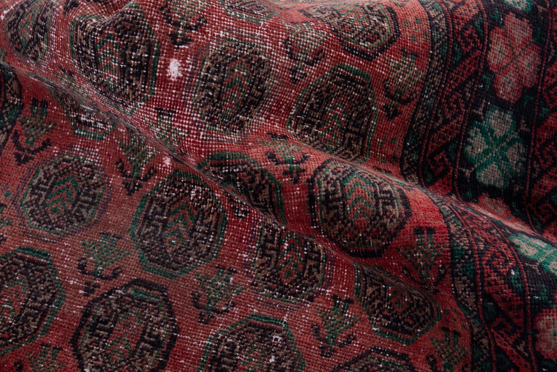 All the rugs we sell are professionally washed and cleaned; age-related wear and natural inconsistencies are inherent in these unique, handcrafted vintage rugs.