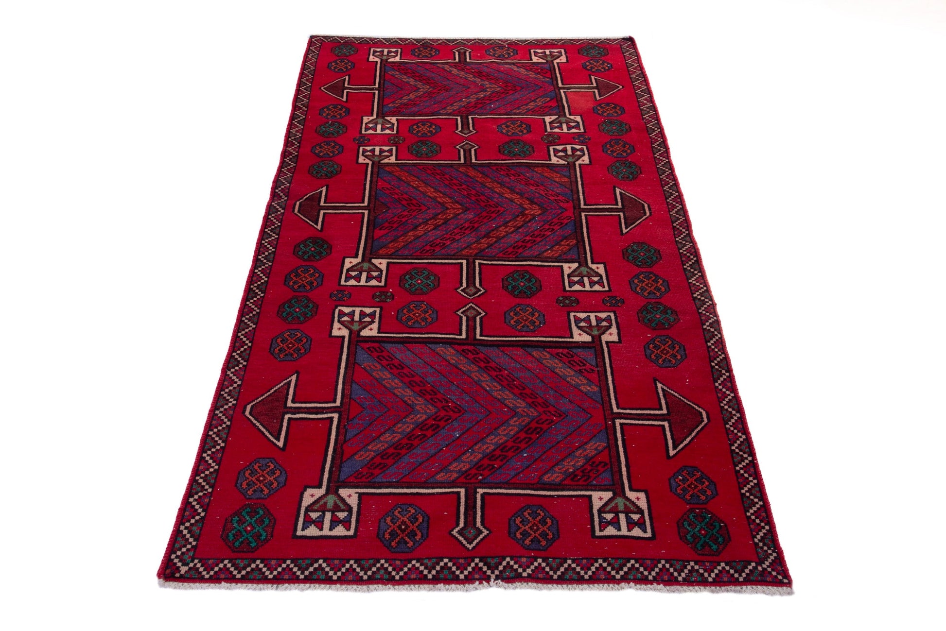 All the rugs we sell are professionally washed and cleaned; age-related wear and natural inconsistencies are inherent in these unique, handcrafted vintage rugs.