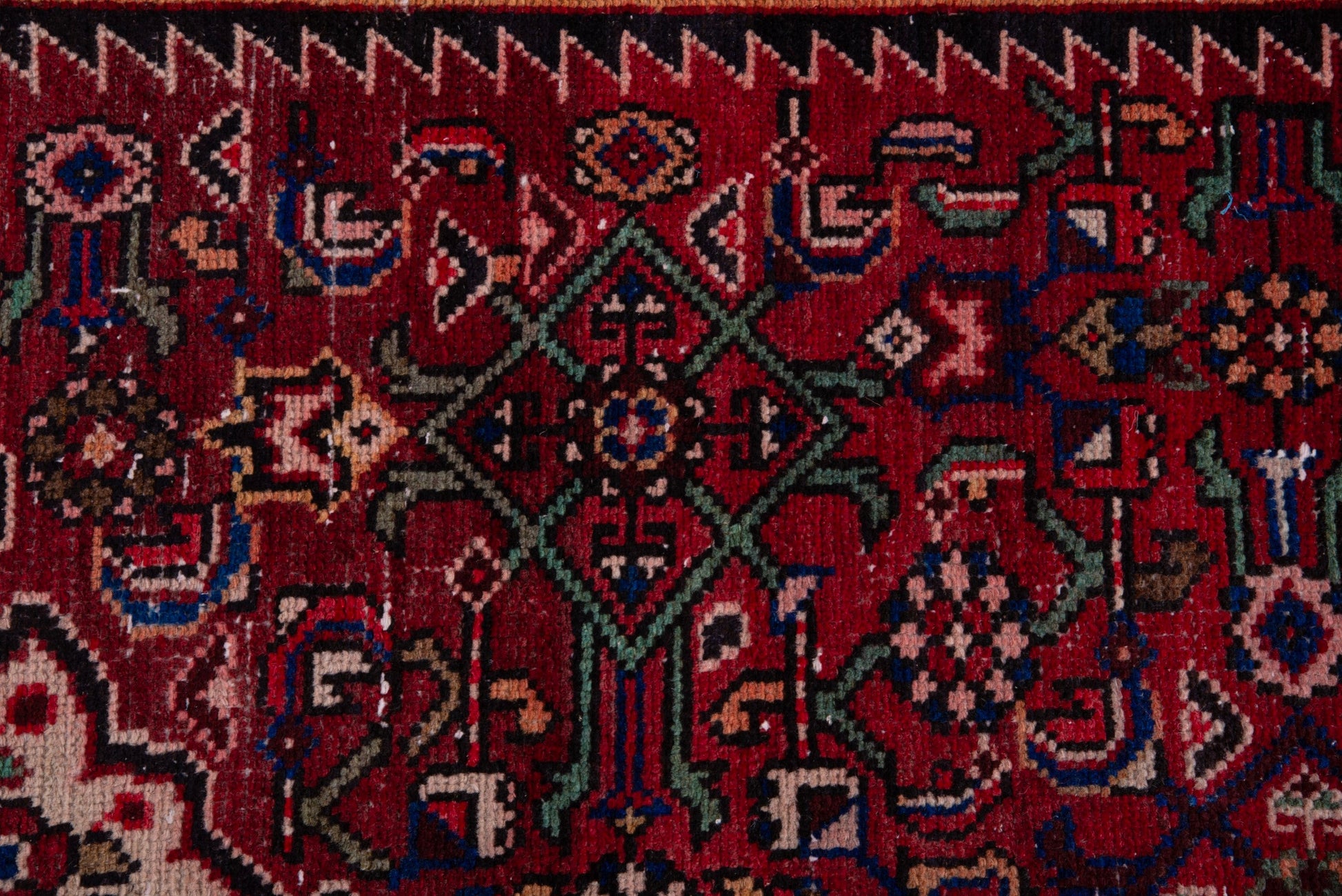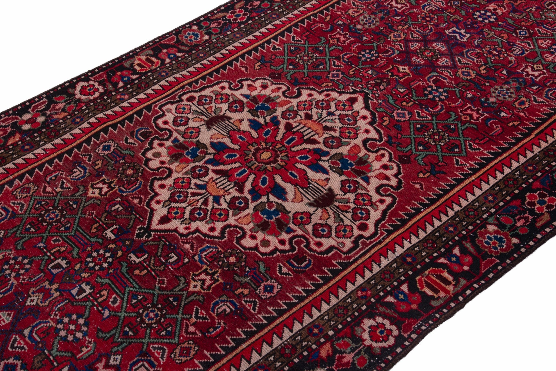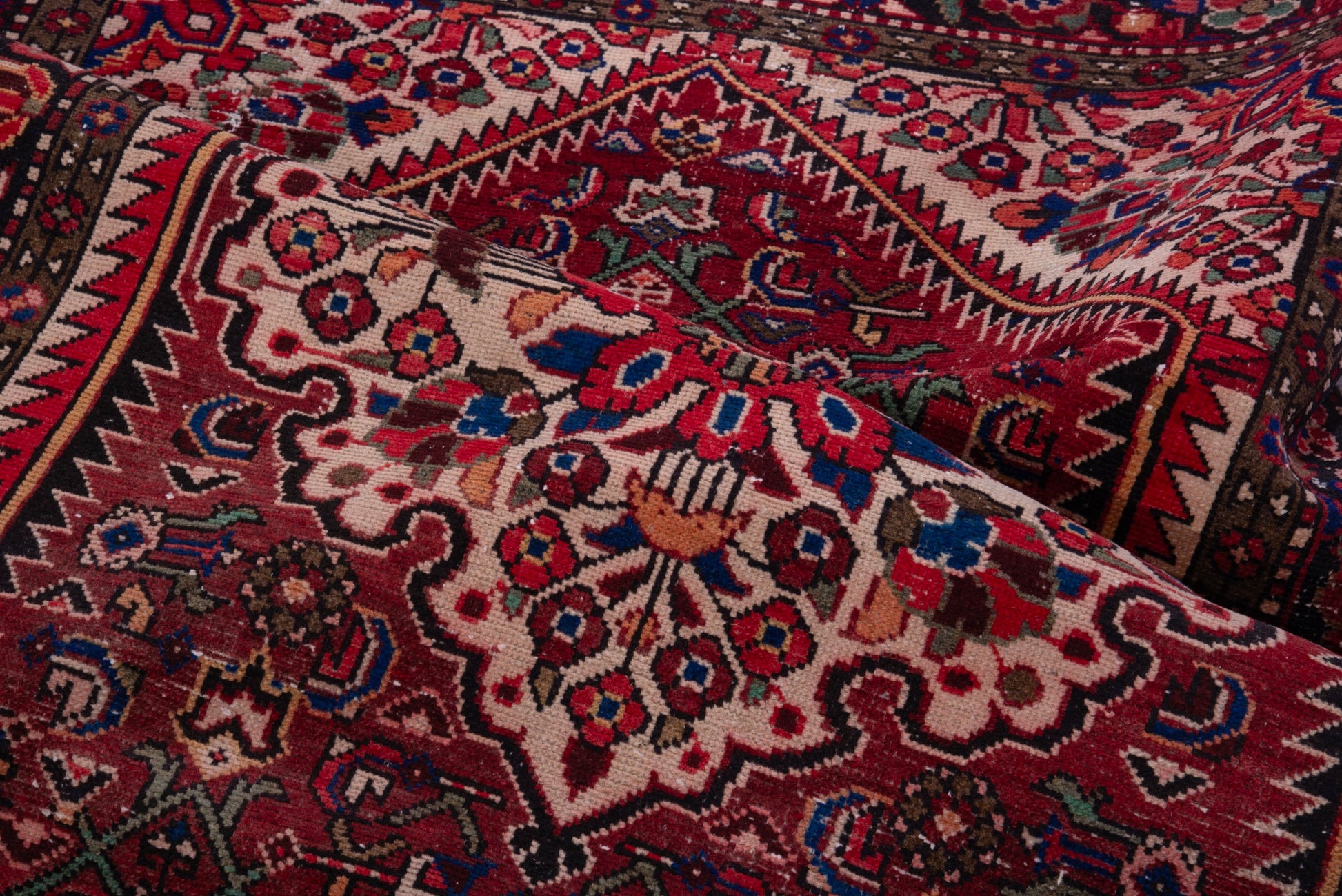 All the rugs we sell are professionally washed and cleaned; age-related wear and natural inconsistencies are inherent in these unique, handcrafted vintage rugs.