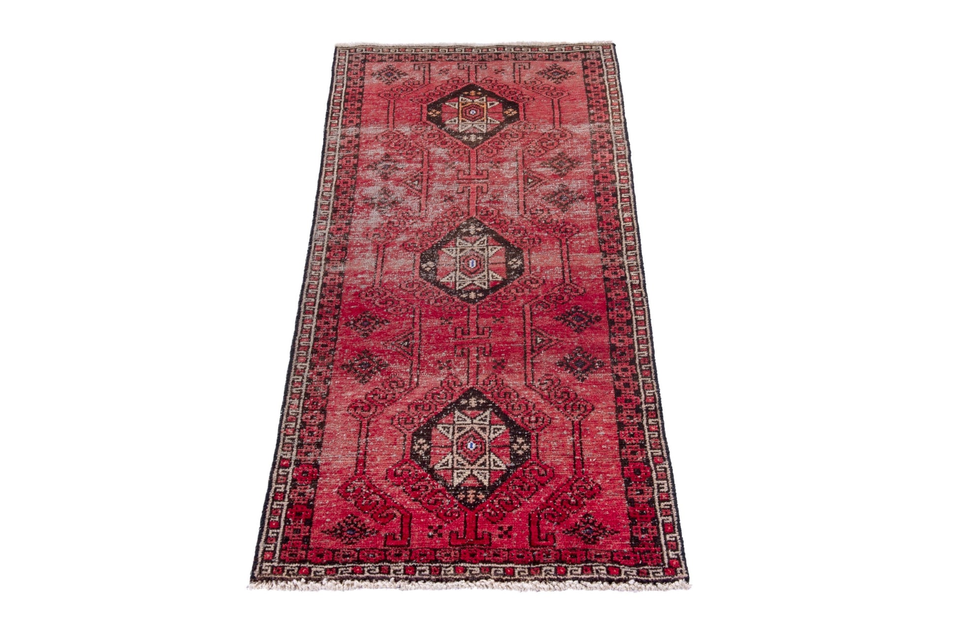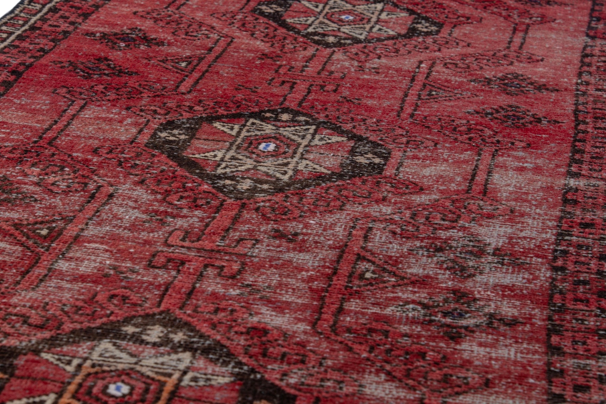 All the rugs we sell are professionally washed and cleaned; age-related wear and natural inconsistencies are inherent in these unique, handcrafted vintage rugs.