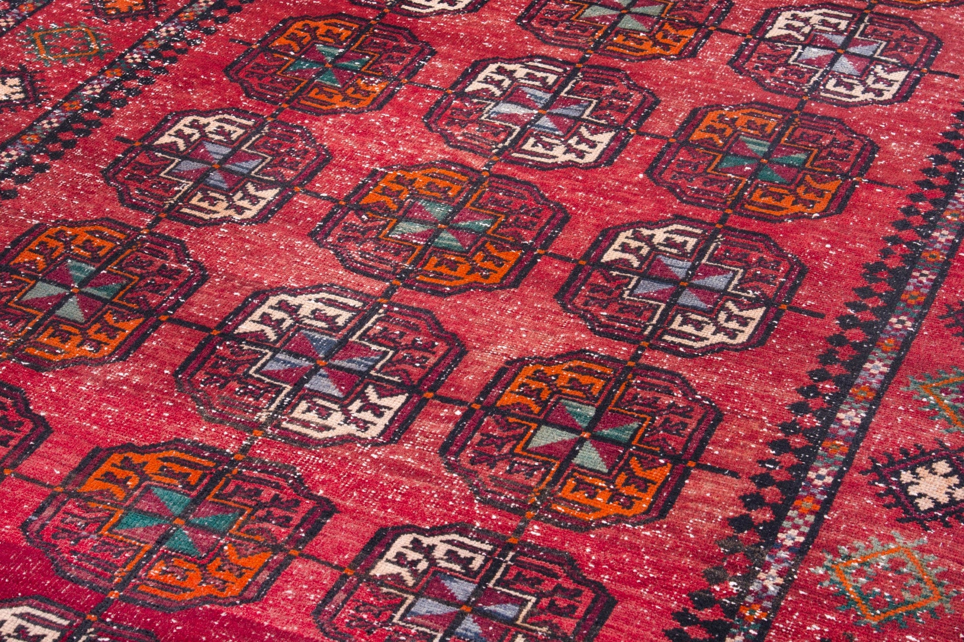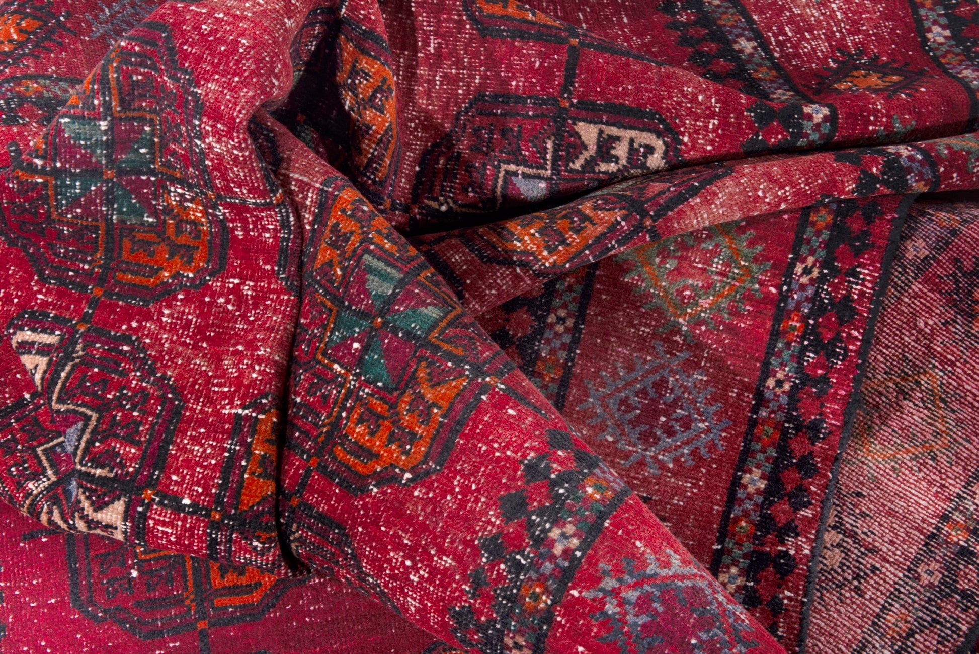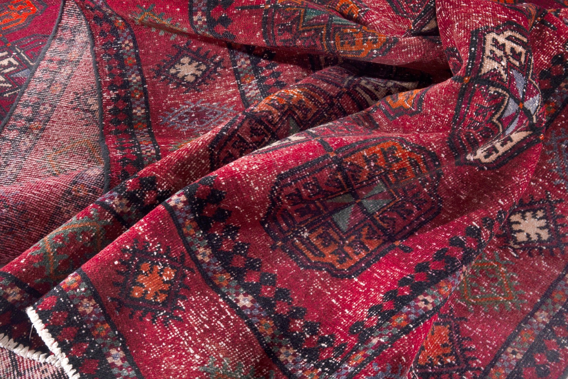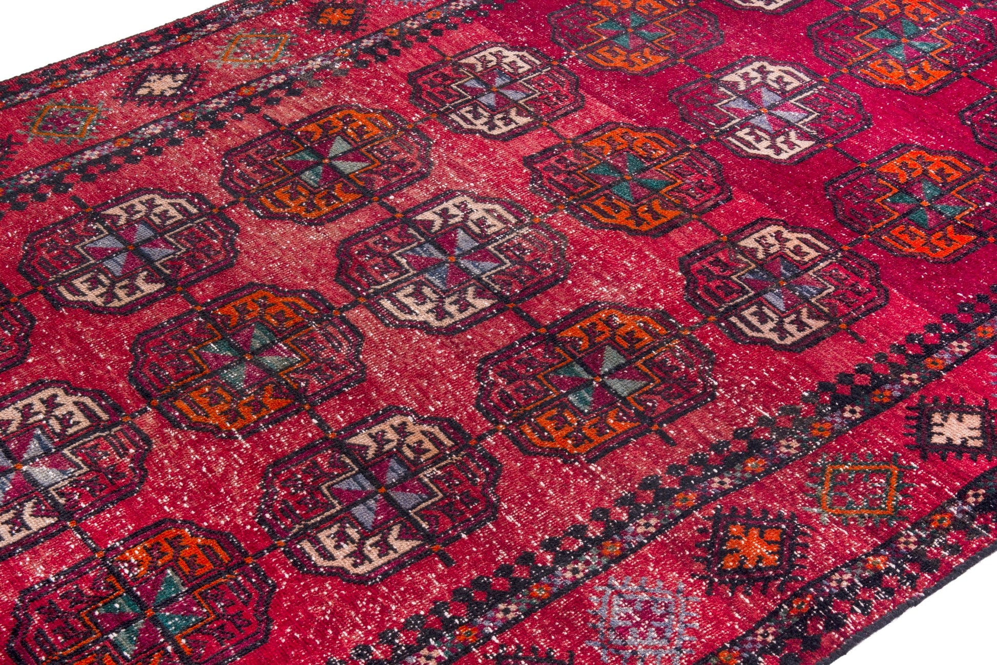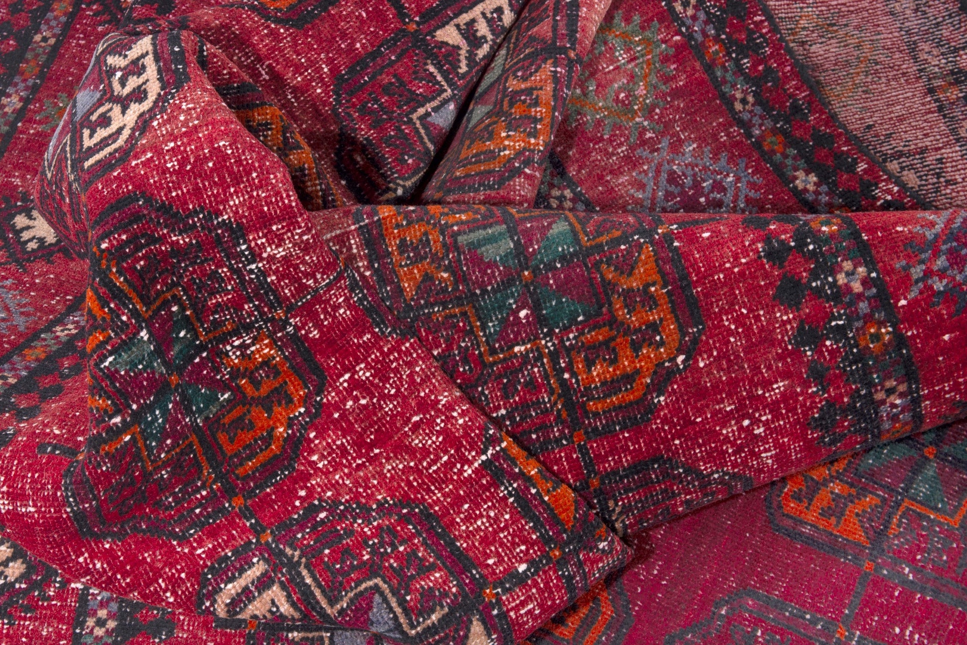 All the rugs we sell are professionally washed and cleaned; age-related wear and natural inconsistencies are inherent in these unique, handcrafted vintage rugs.