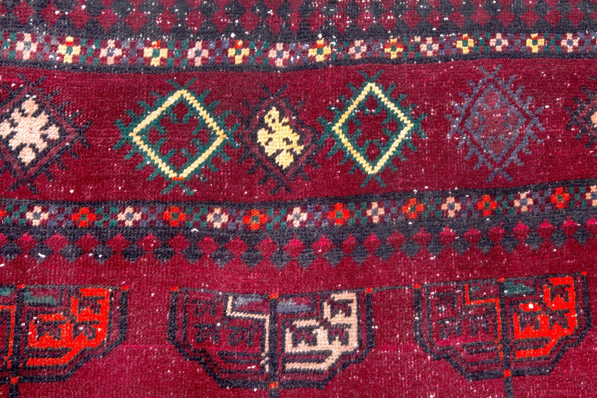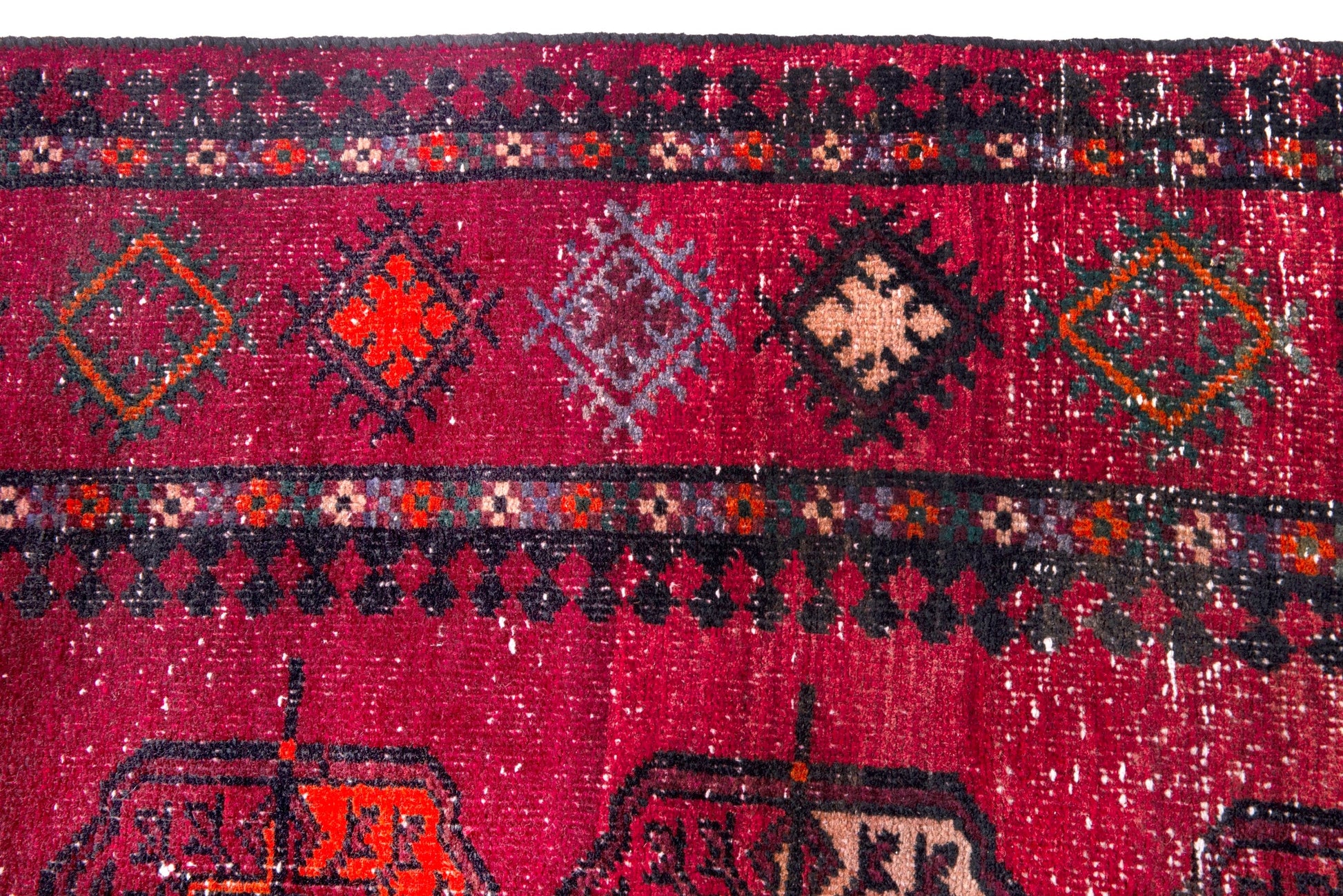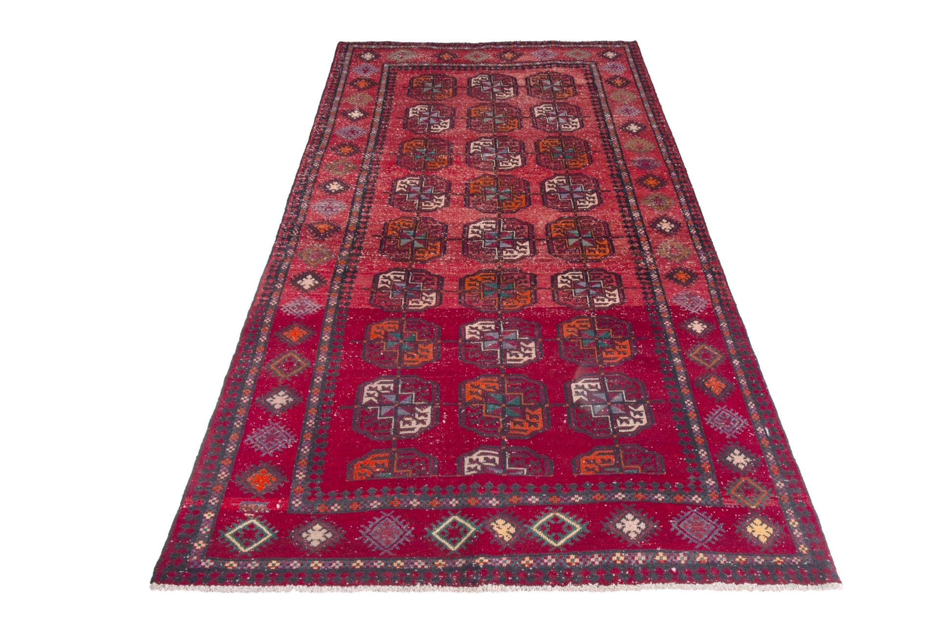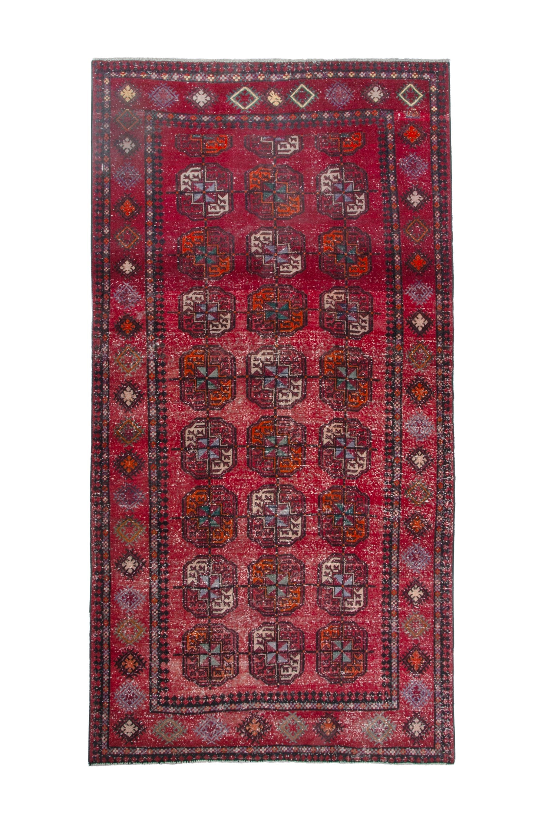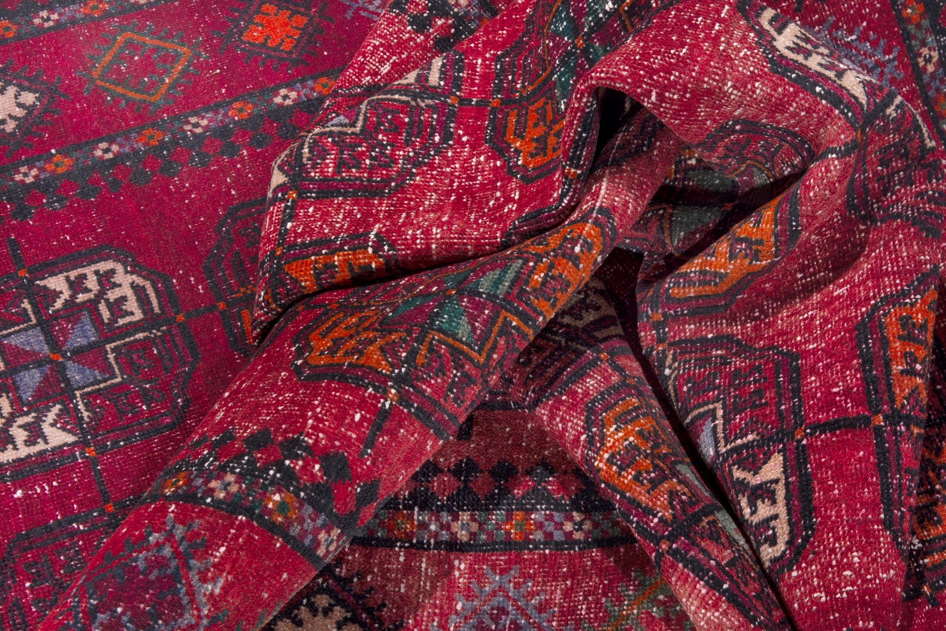 All the rugs we sell are professionally washed and cleaned; age-related wear and natural inconsistencies are inherent in these unique, handcrafted vintage rugs.