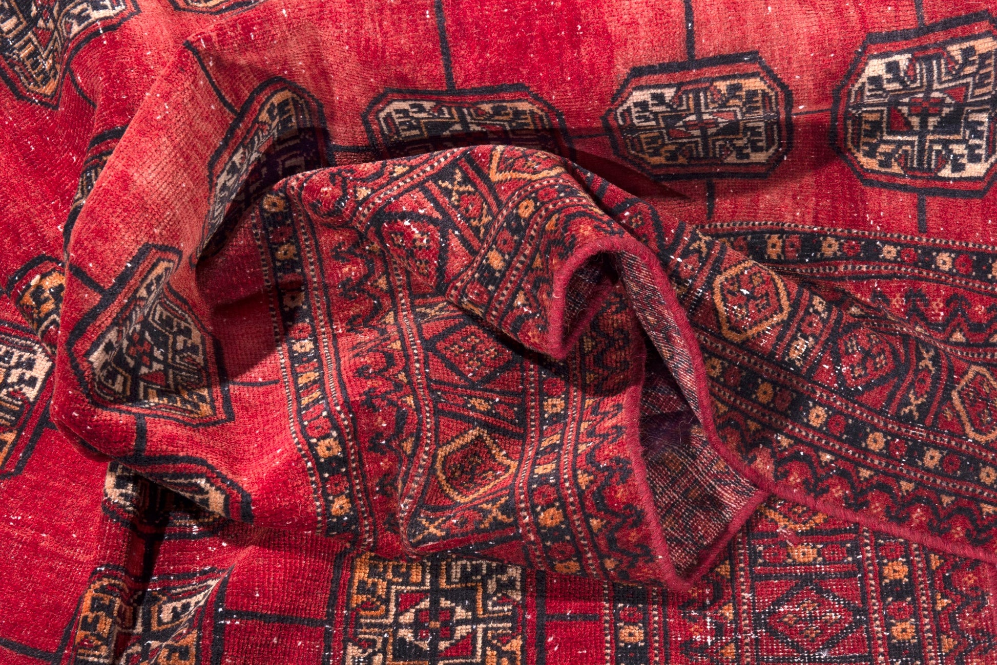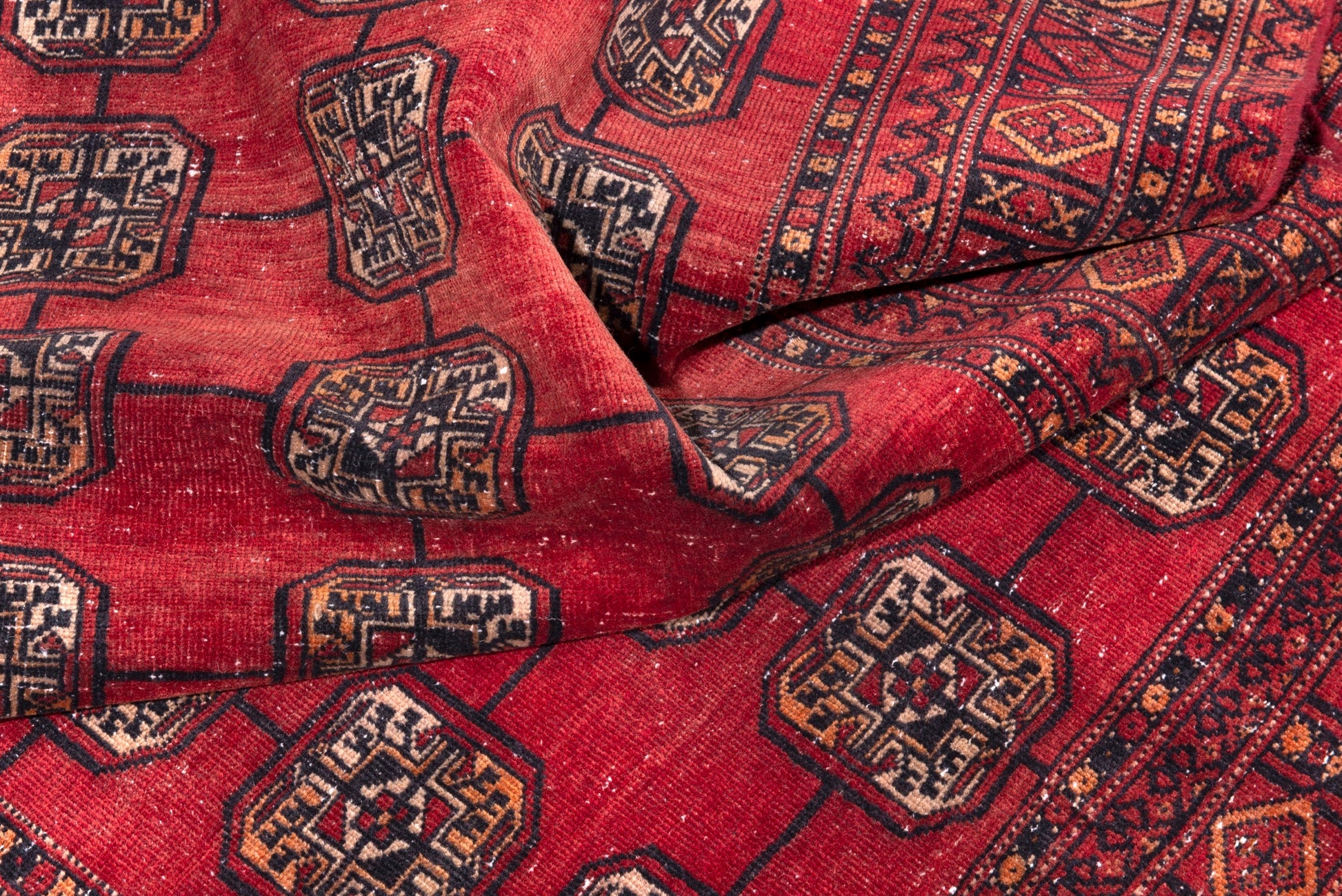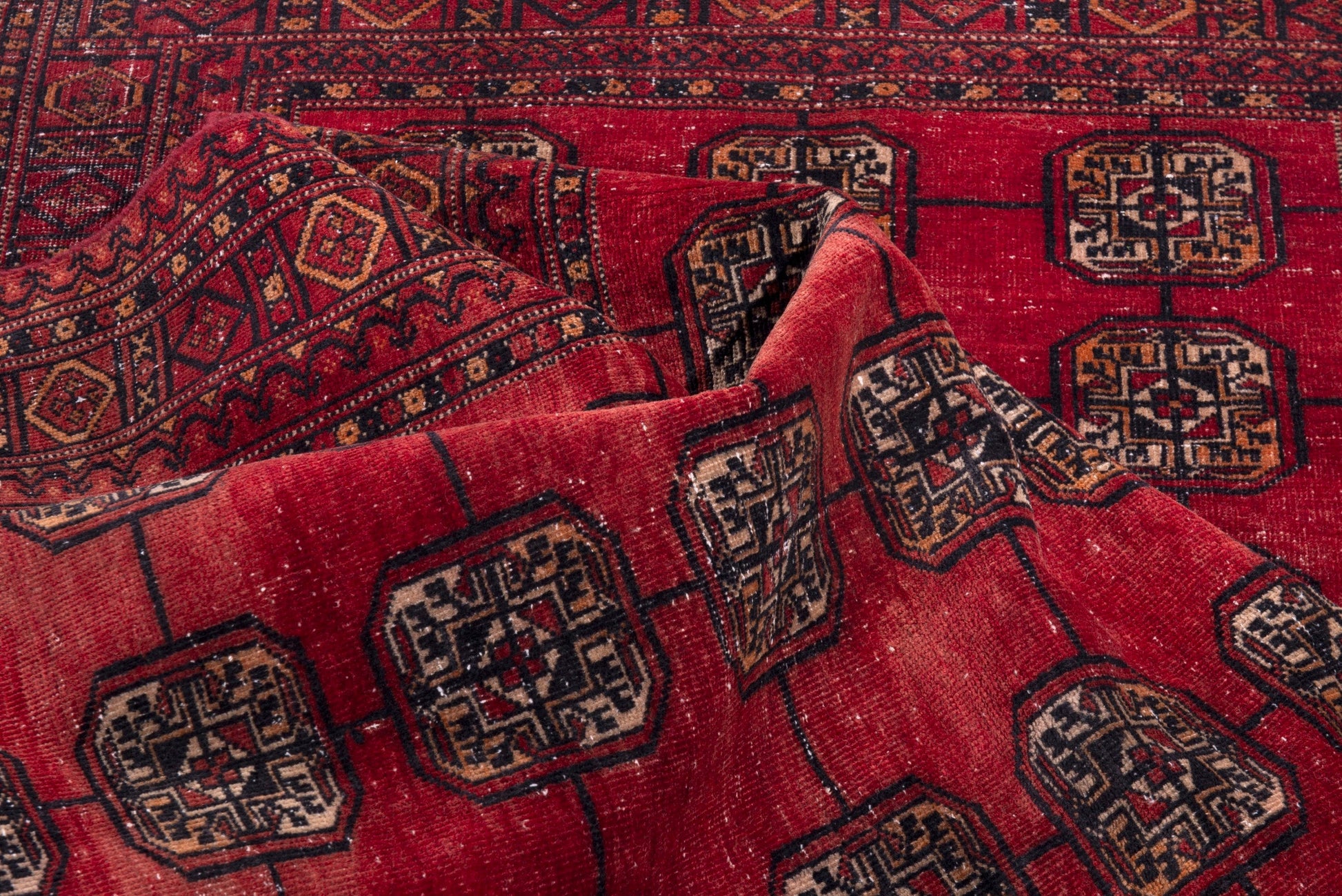 All the rugs we sell are professionally washed and cleaned; age-related wear and natural inconsistencies are inherent in these unique, handcrafted vintage rugs.