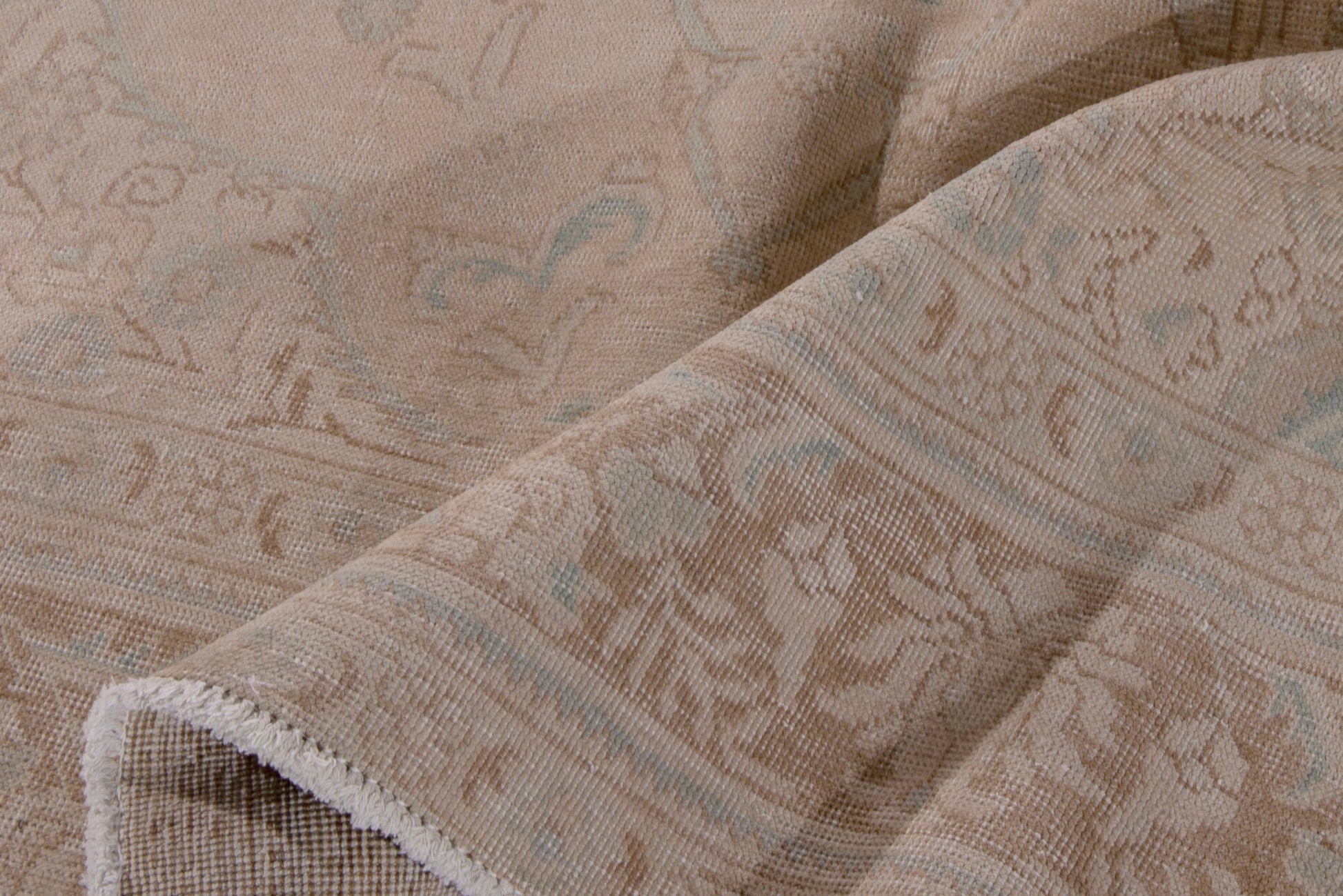 This rug is a hand-knotted rug, and edges are hand sewn.