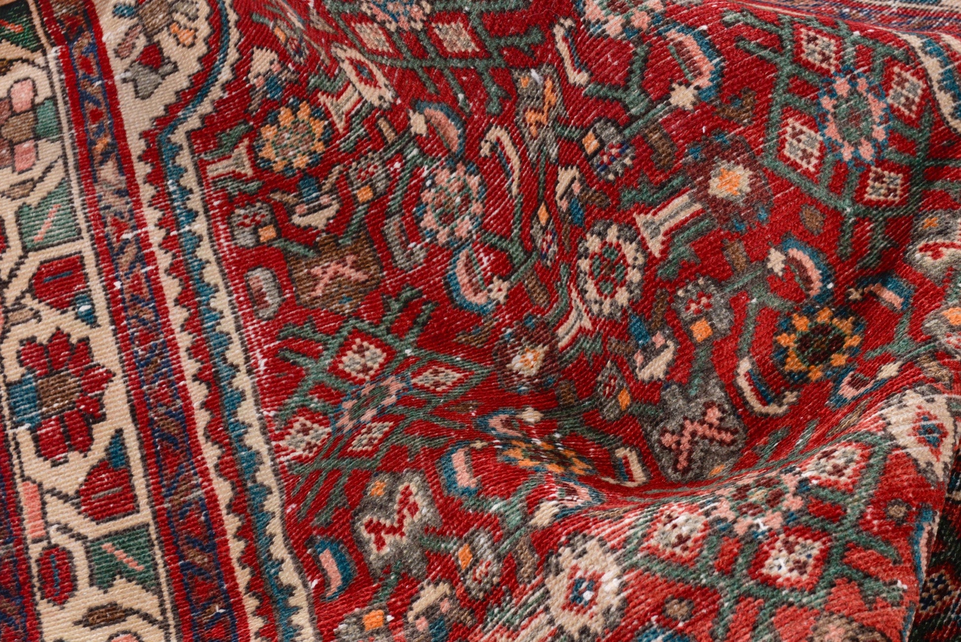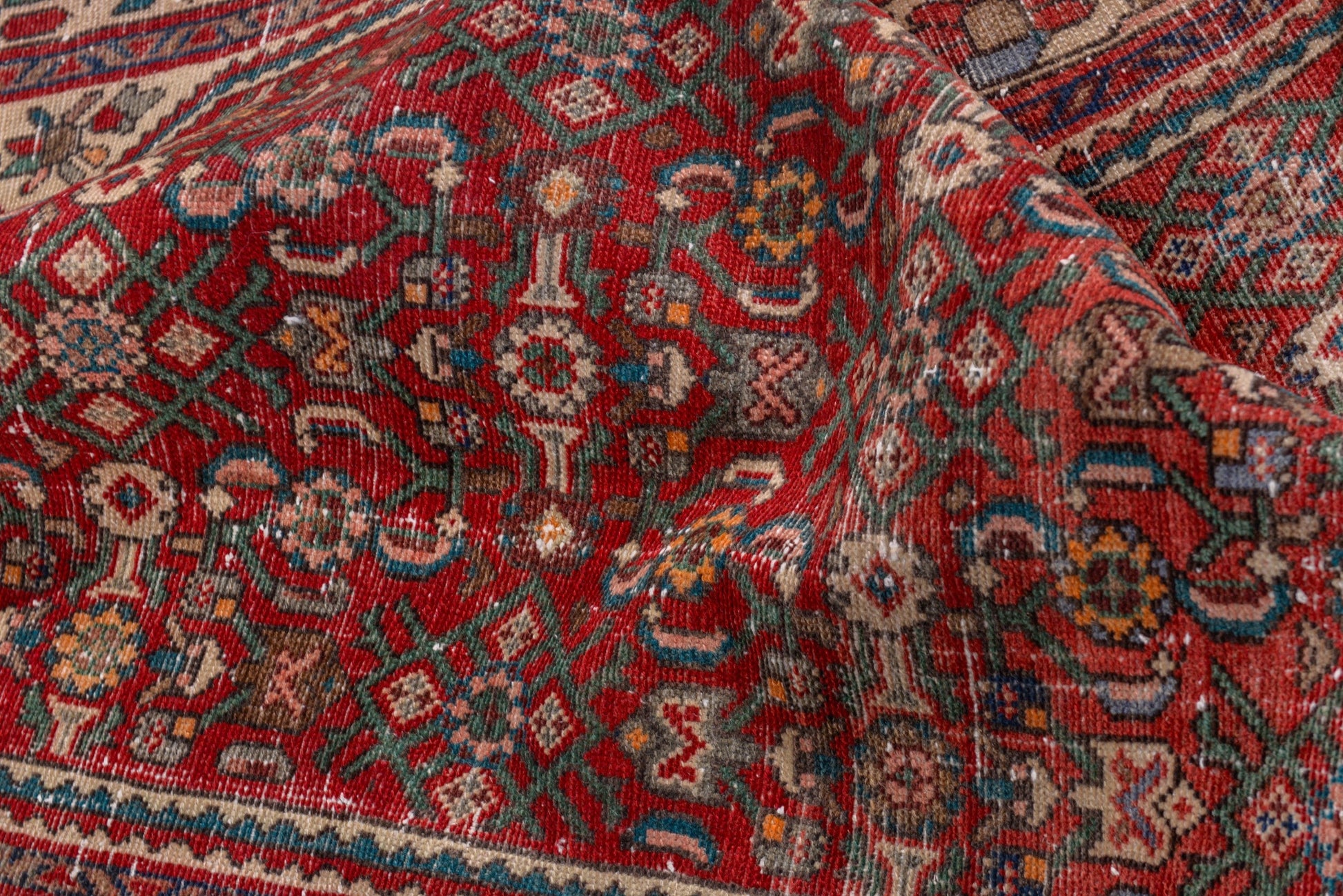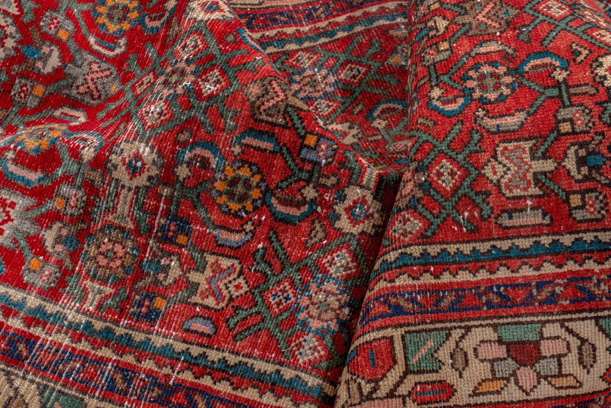 All the rugs we sell are professionally washed and cleaned; age-related wear and natural inconsistencies are inherent in these unique, handcrafted vintage rugs.