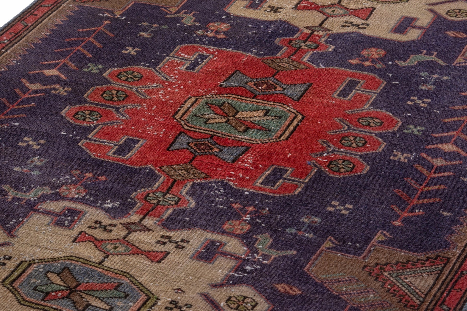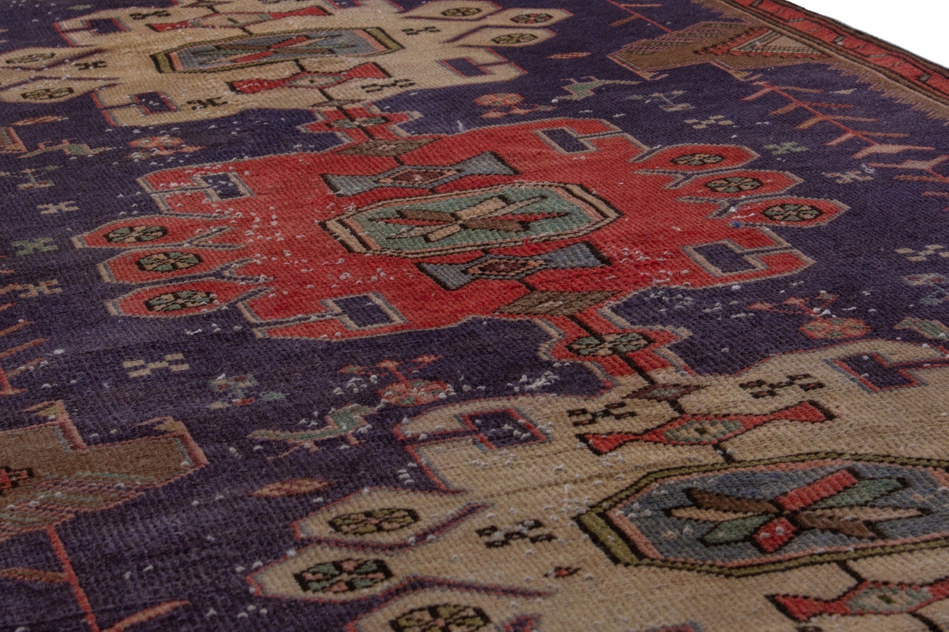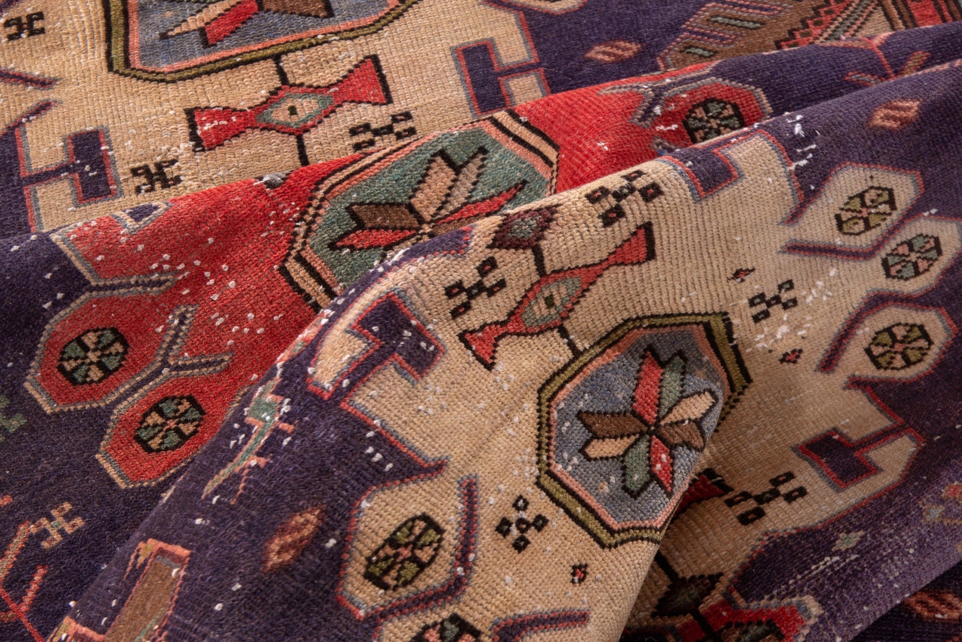 All the rugs we sell are professionally washed and cleaned; age-related wear and natural inconsistencies are inherent in these unique, handcrafted vintage rugs.