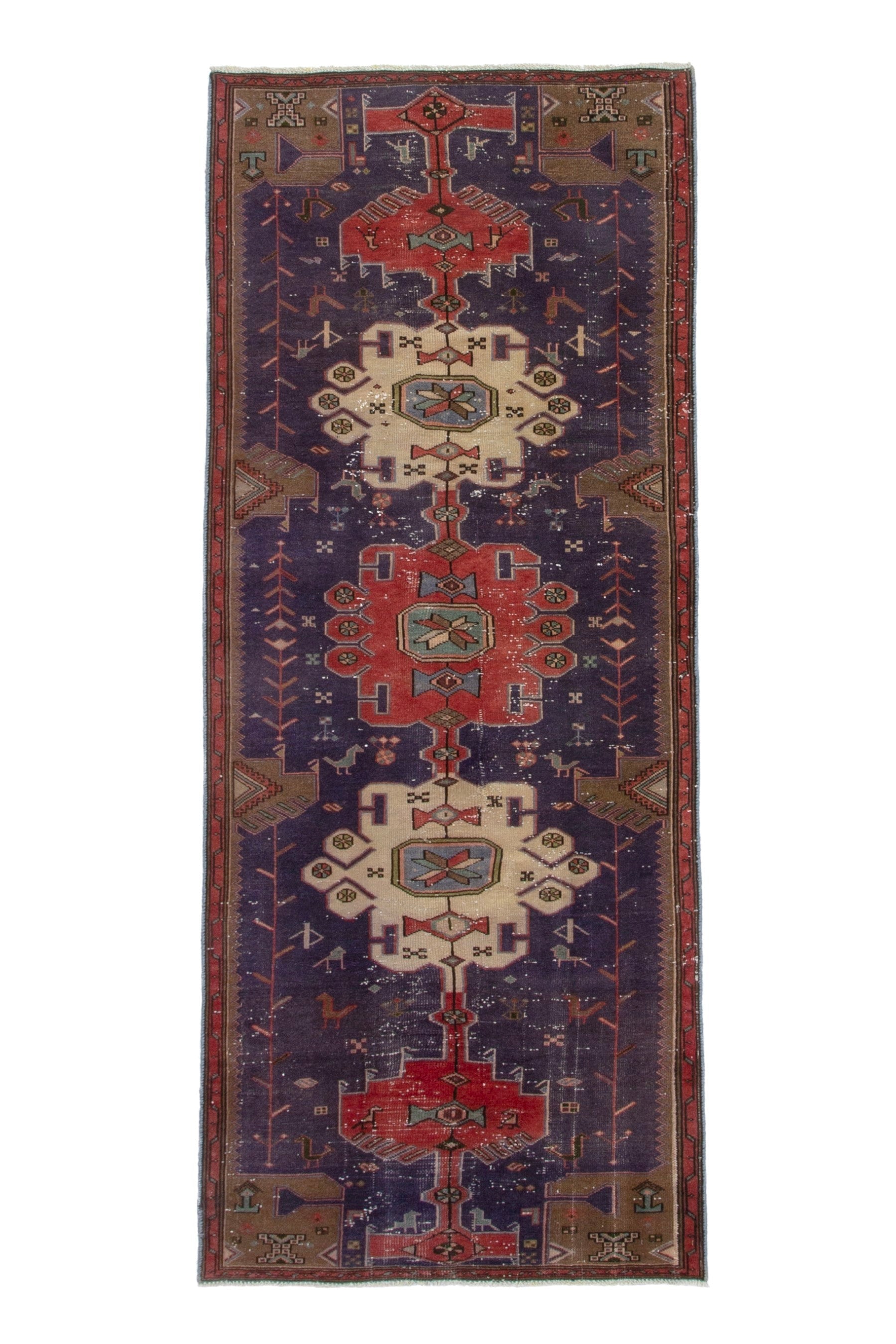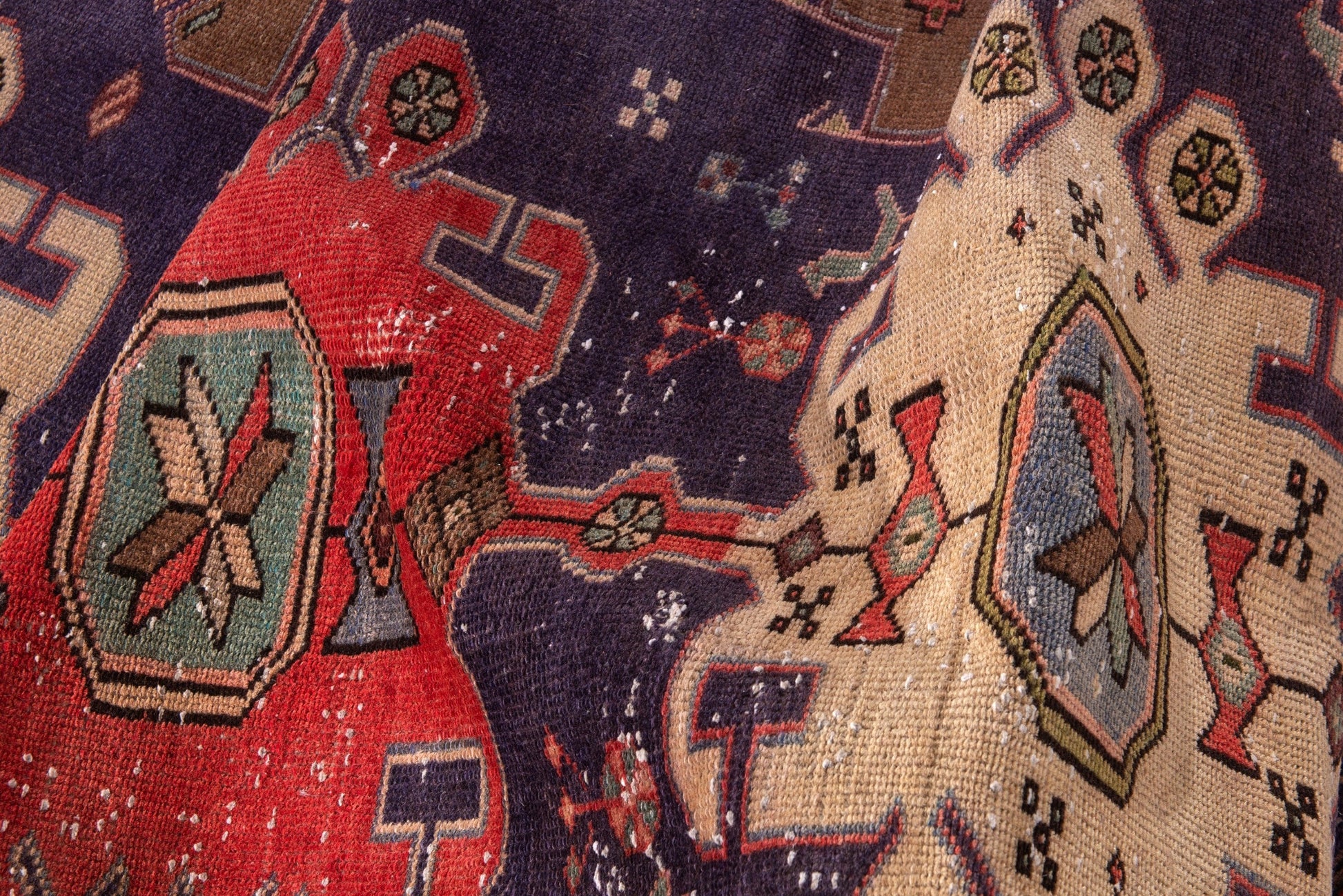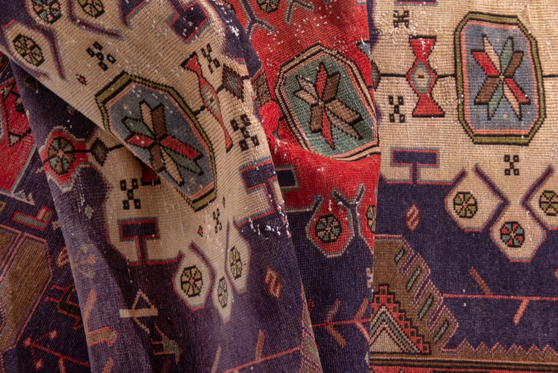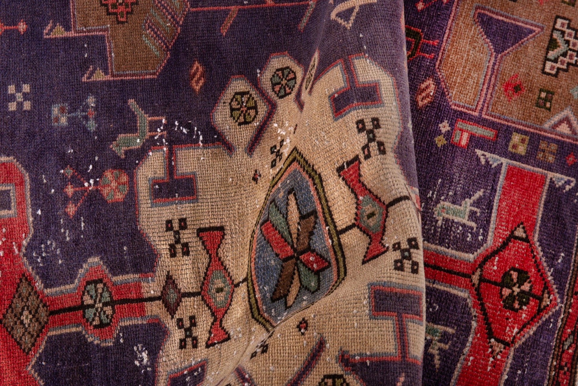 All the rugs we sell are professionally washed and cleaned; age-related wear and natural inconsistencies are inherent in these unique, handcrafted vintage rugs.