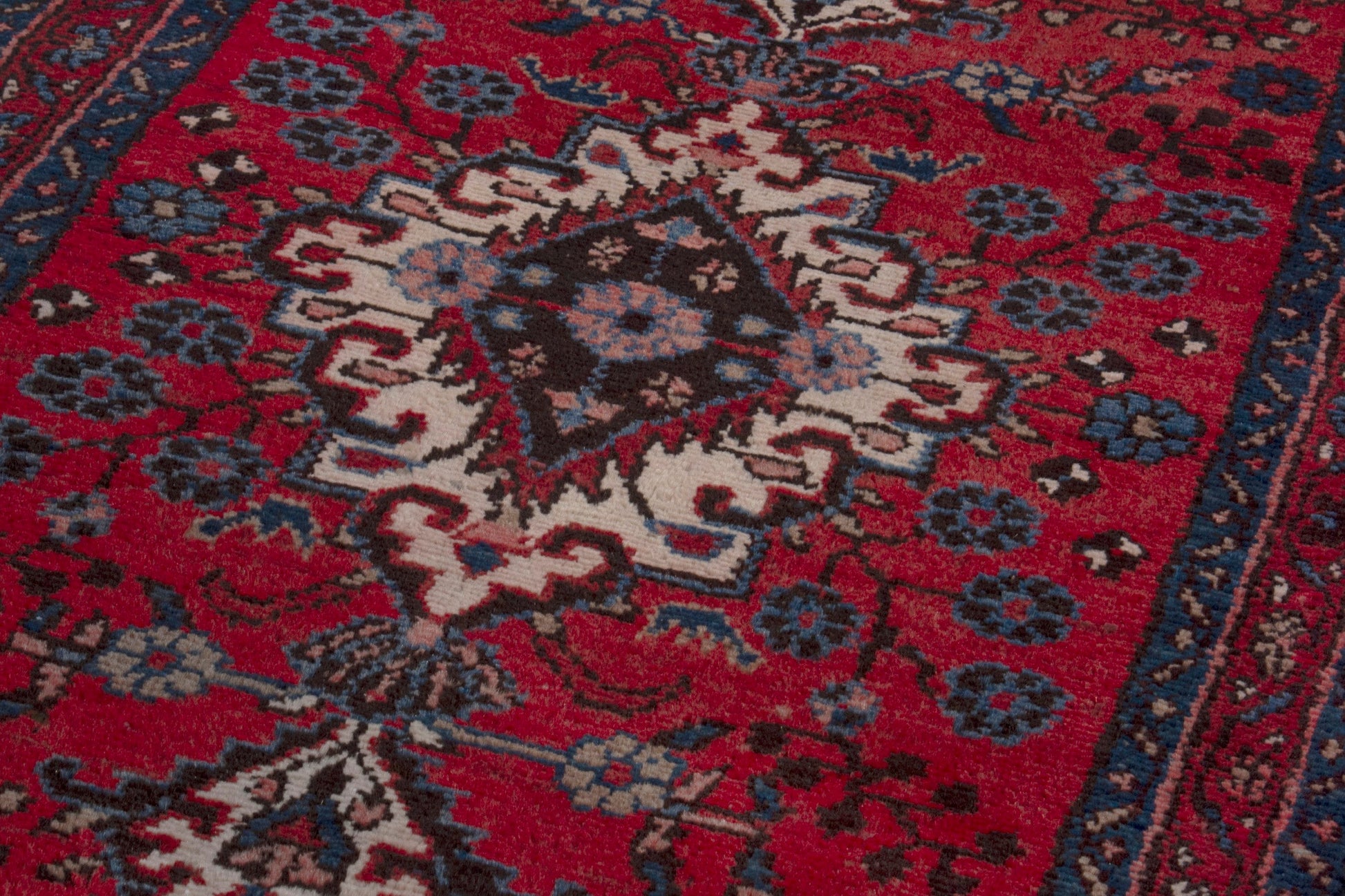 All the rugs we sell are professionally washed and cleaned; age-related wear and natural inconsistencies are inherent in these unique, handcrafted vintage rugs.