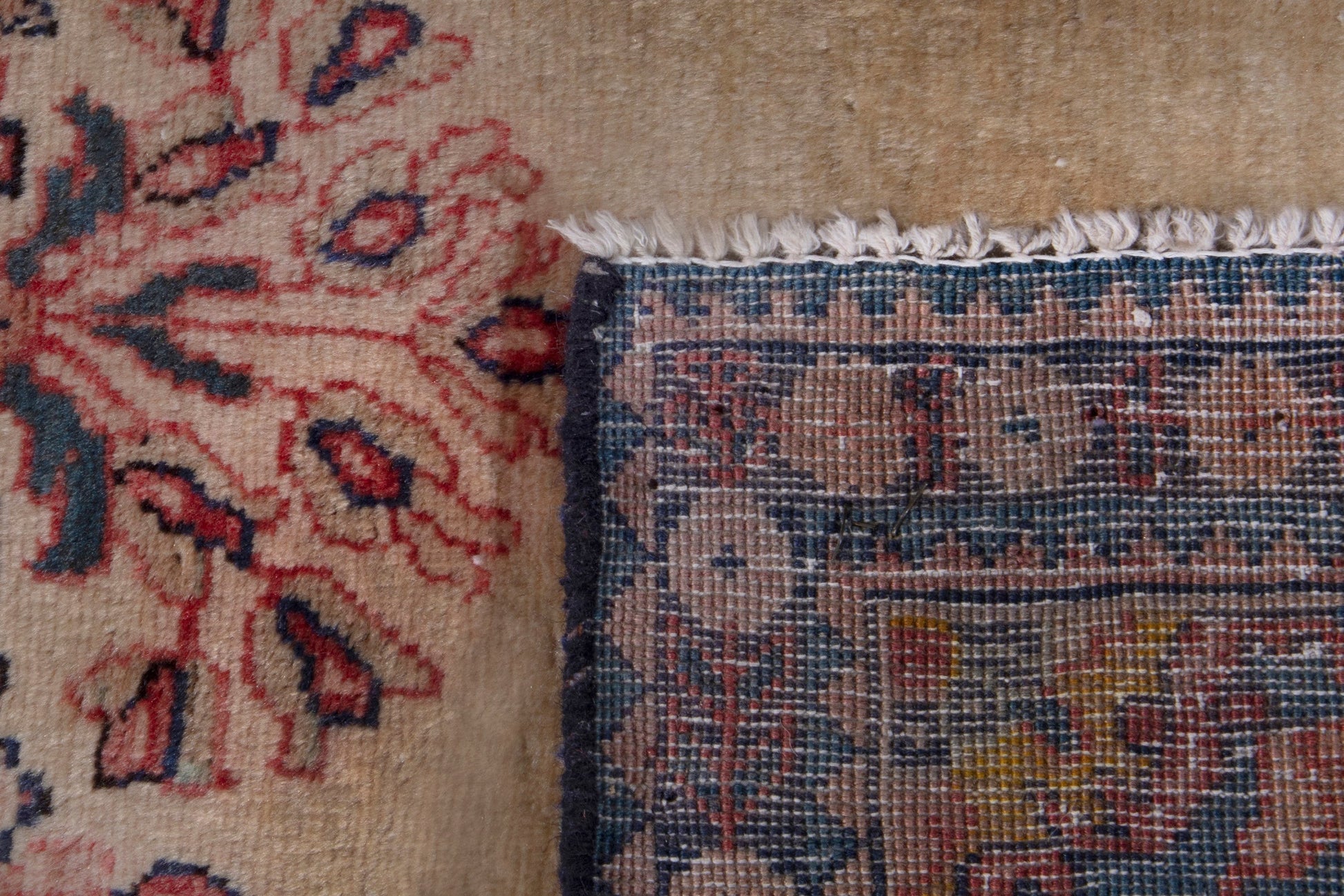 This rug is a hand-knotted rug, and edges are hand sewn.