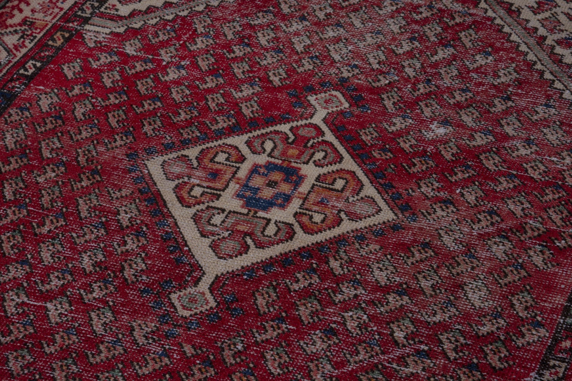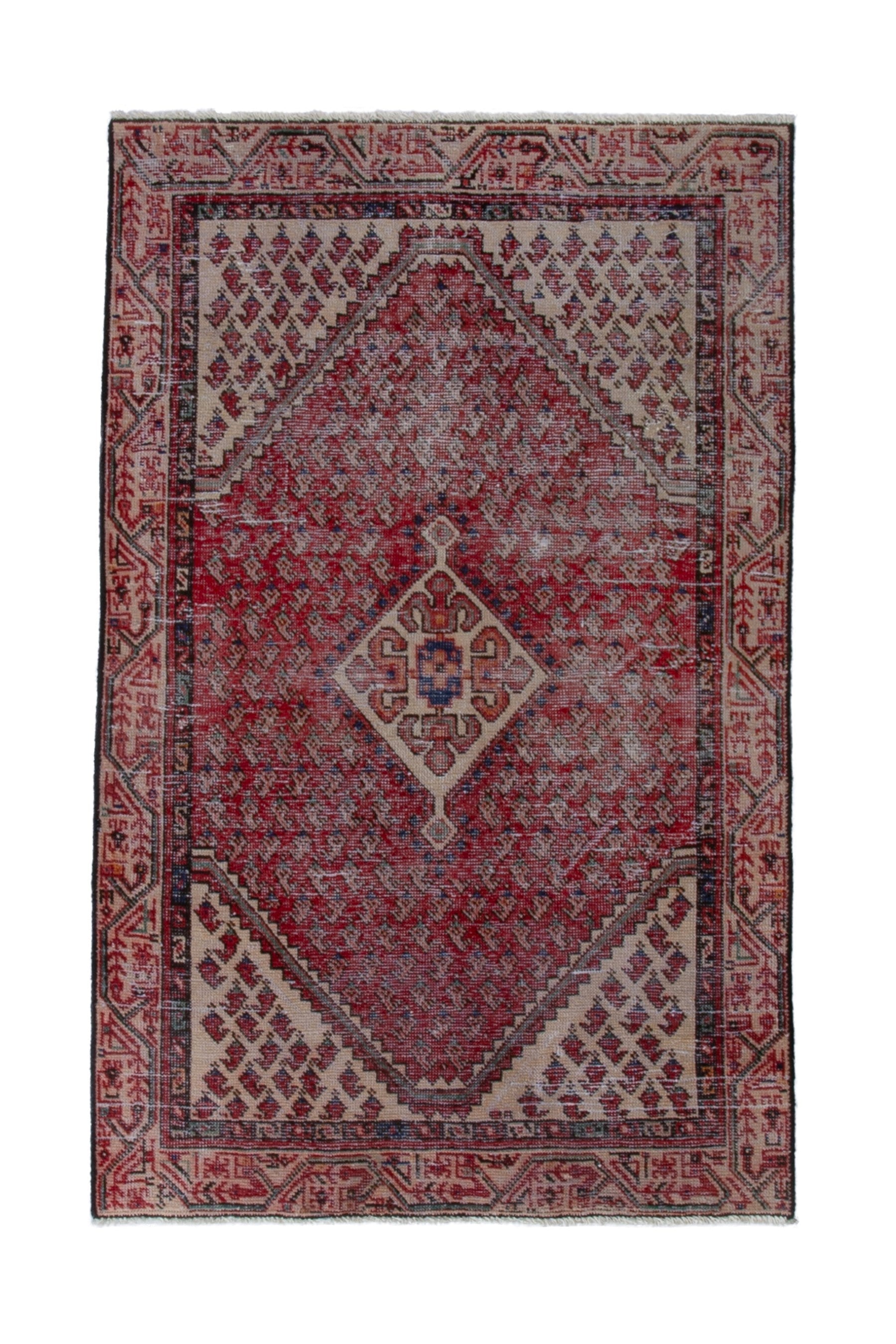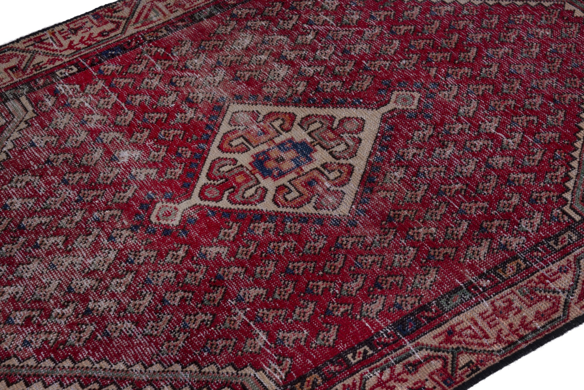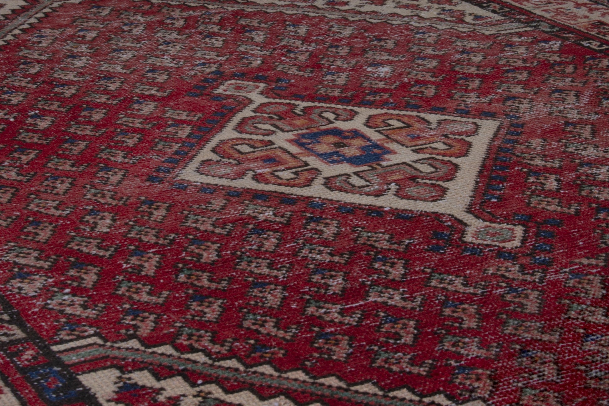All the rugs we sell are professionally washed and cleaned; age-related wear and natural inconsistencies are inherent in these unique, handcrafted vintage rugs.