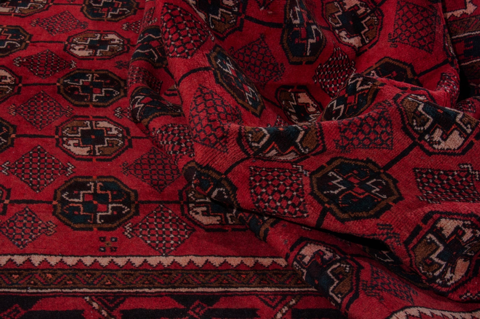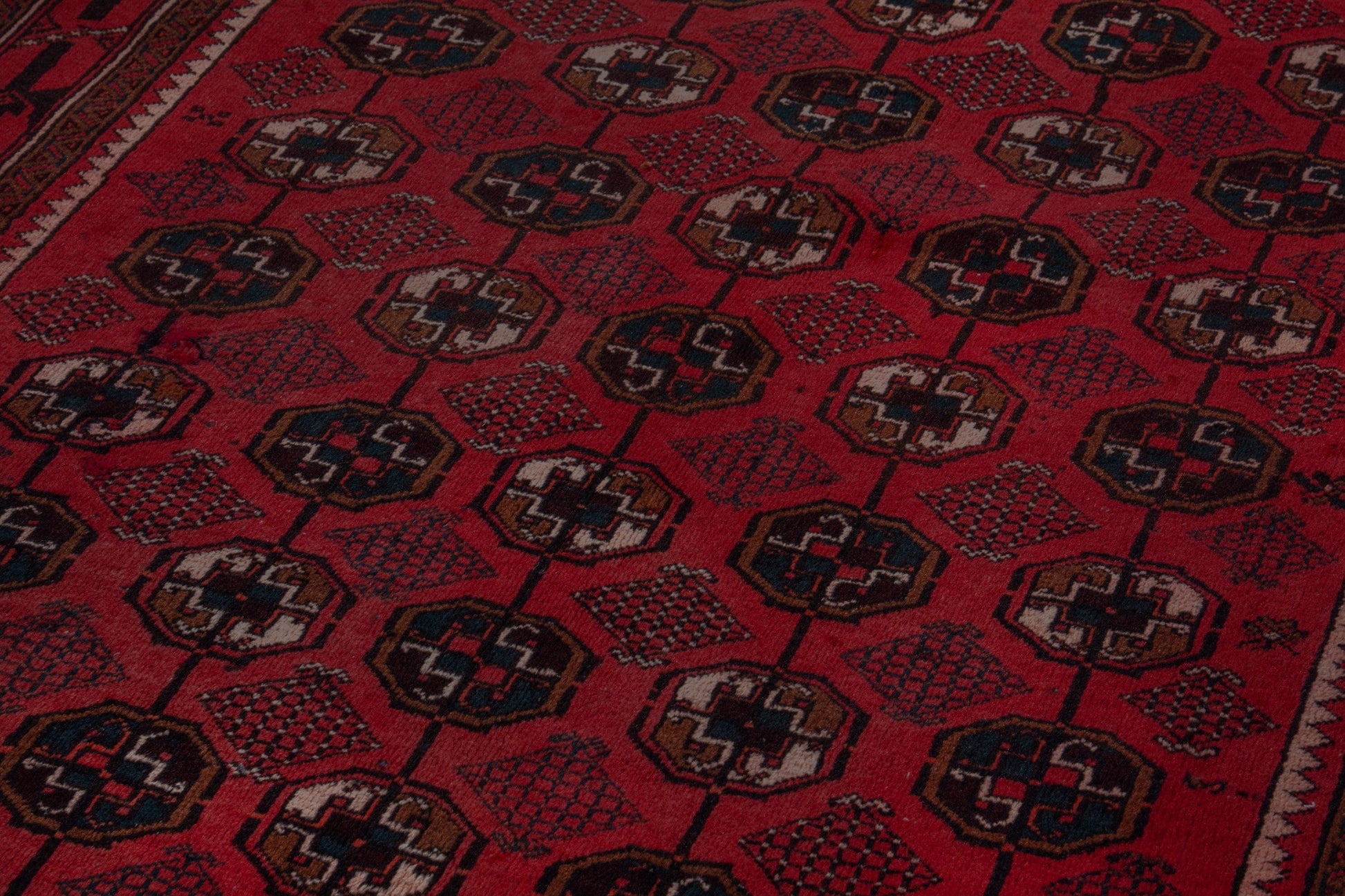 All the rugs we sell are professionally washed and cleaned; age-related wear and natural inconsistencies are inherent in these unique, handcrafted vintage rugs.