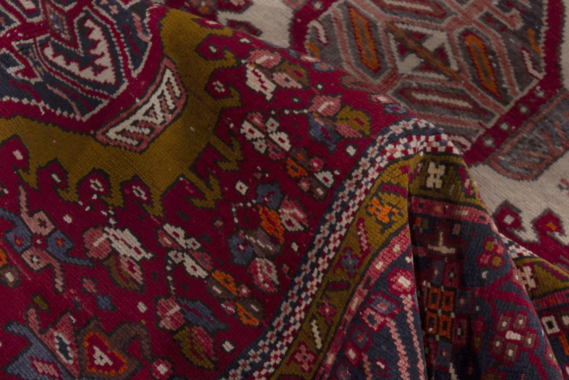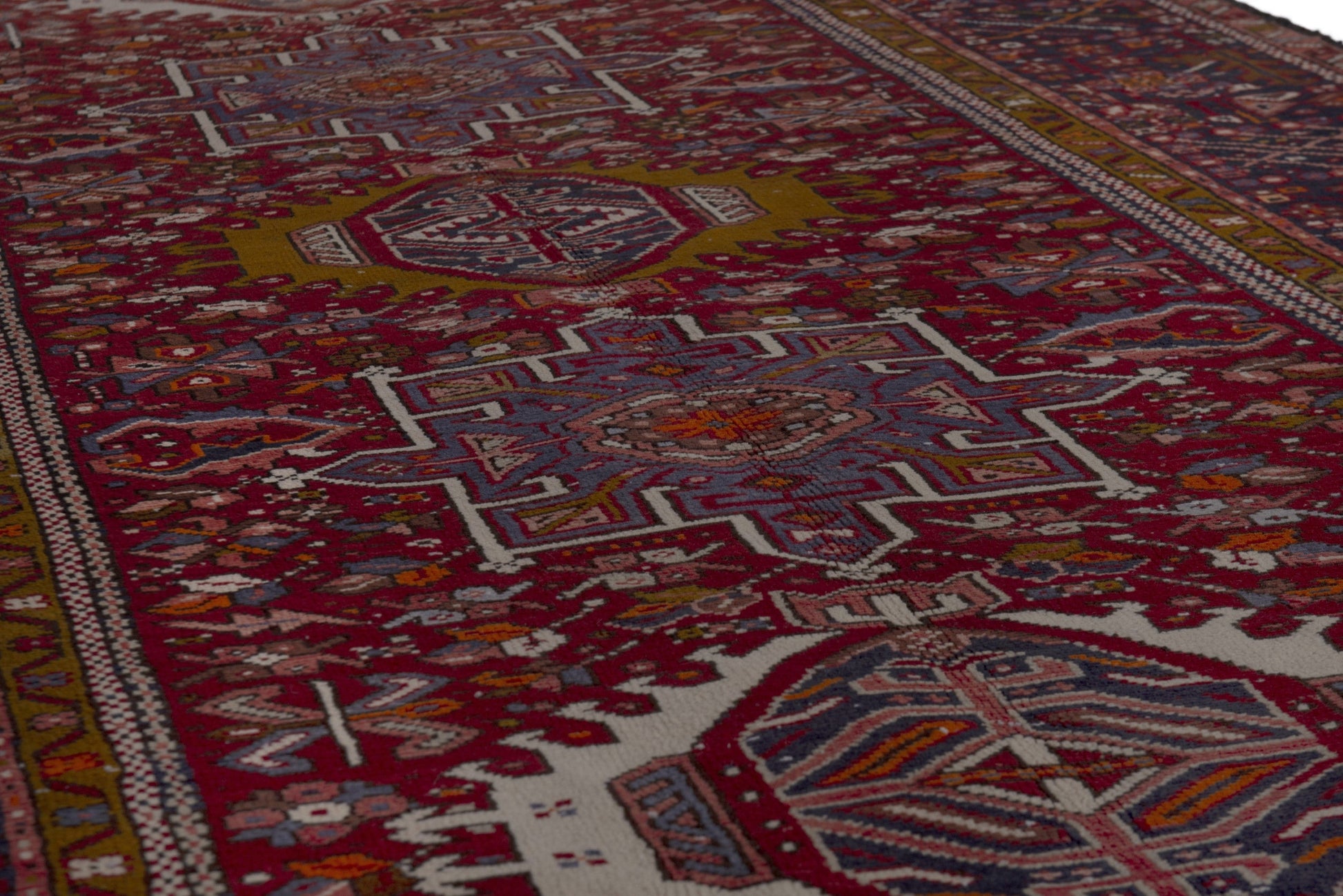 All the rugs we sell are professionally washed and cleaned; age-related wear and natural inconsistencies are inherent in these unique, handcrafted vintage rugs.