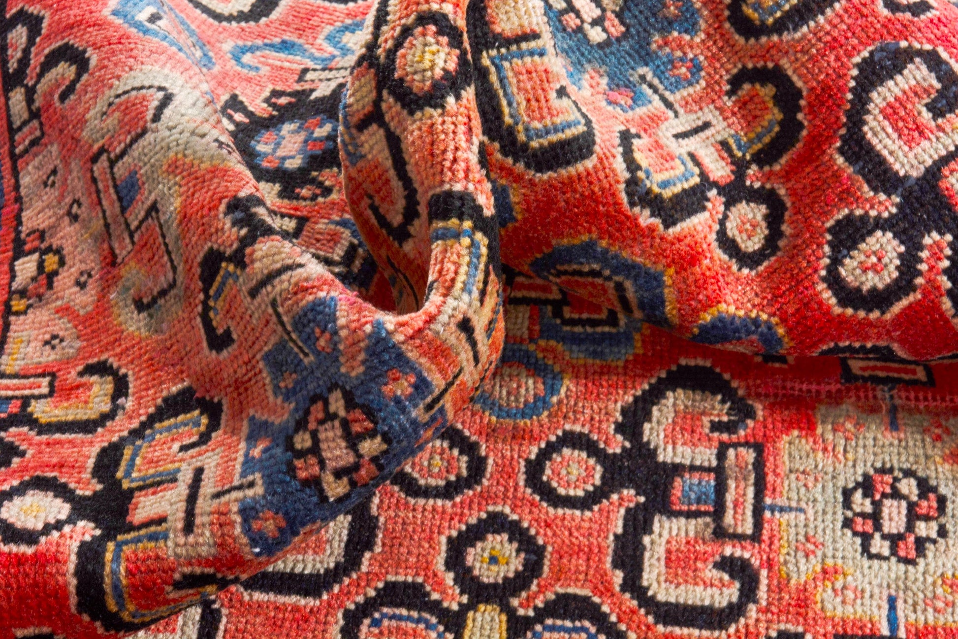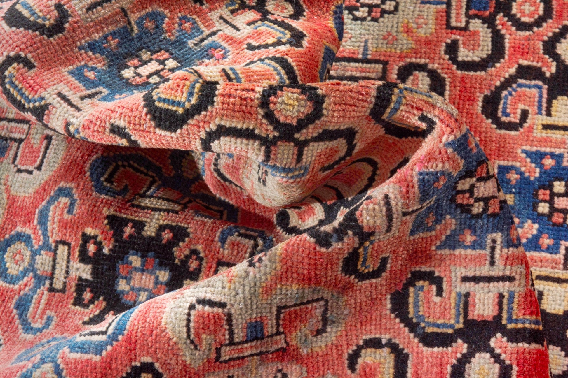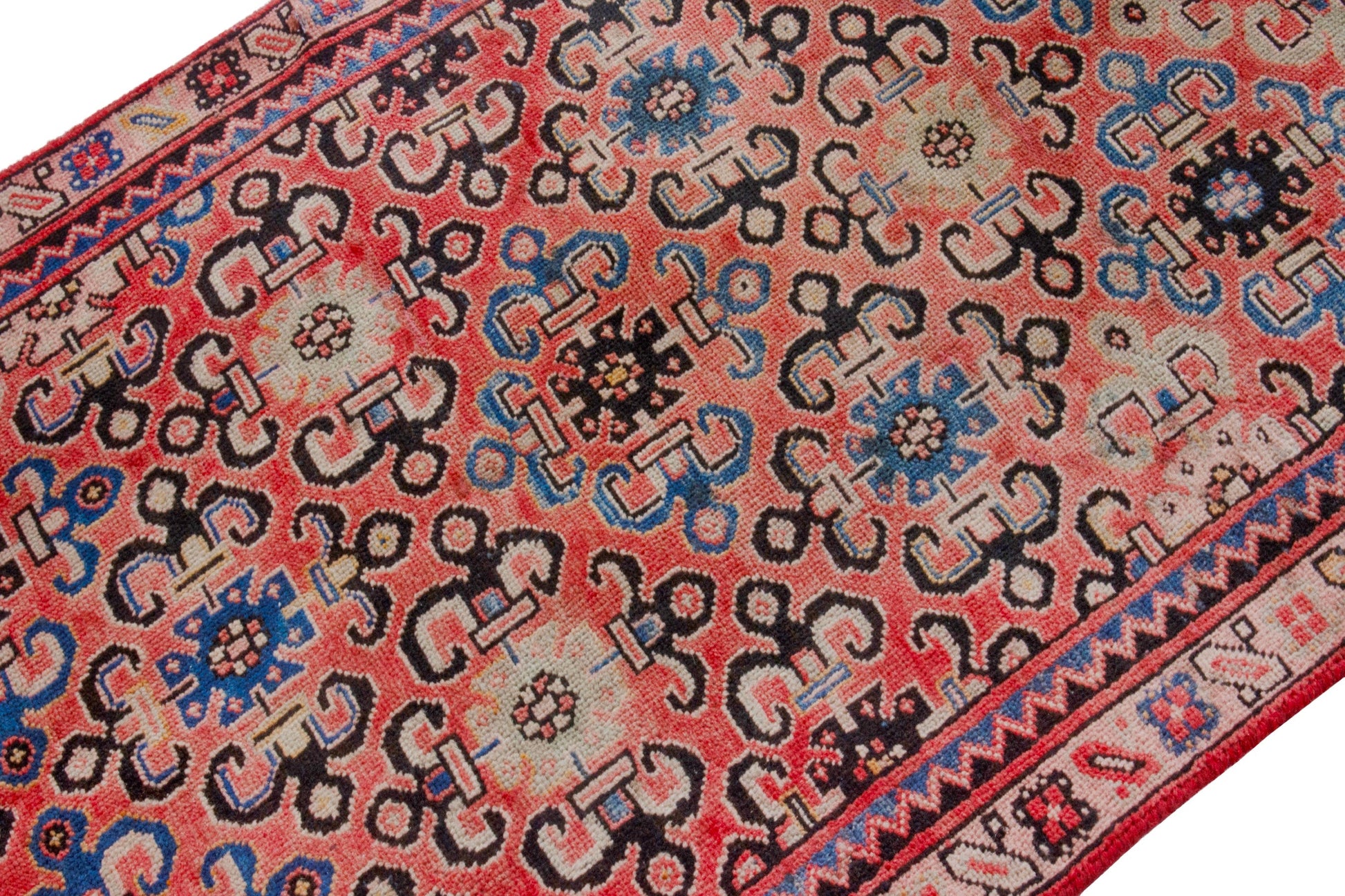 All the rugs we sell are professionally washed and cleaned; age-related wear and natural inconsistencies are inherent in these unique, handcrafted vintage rugs.
