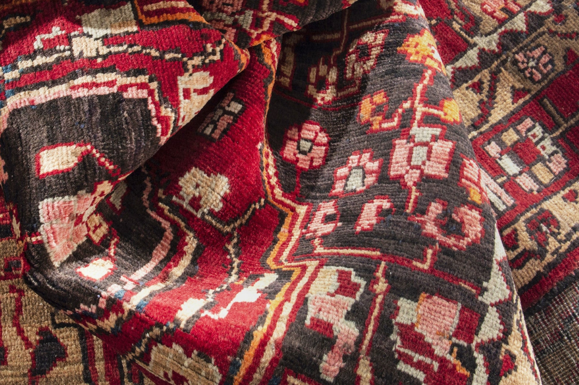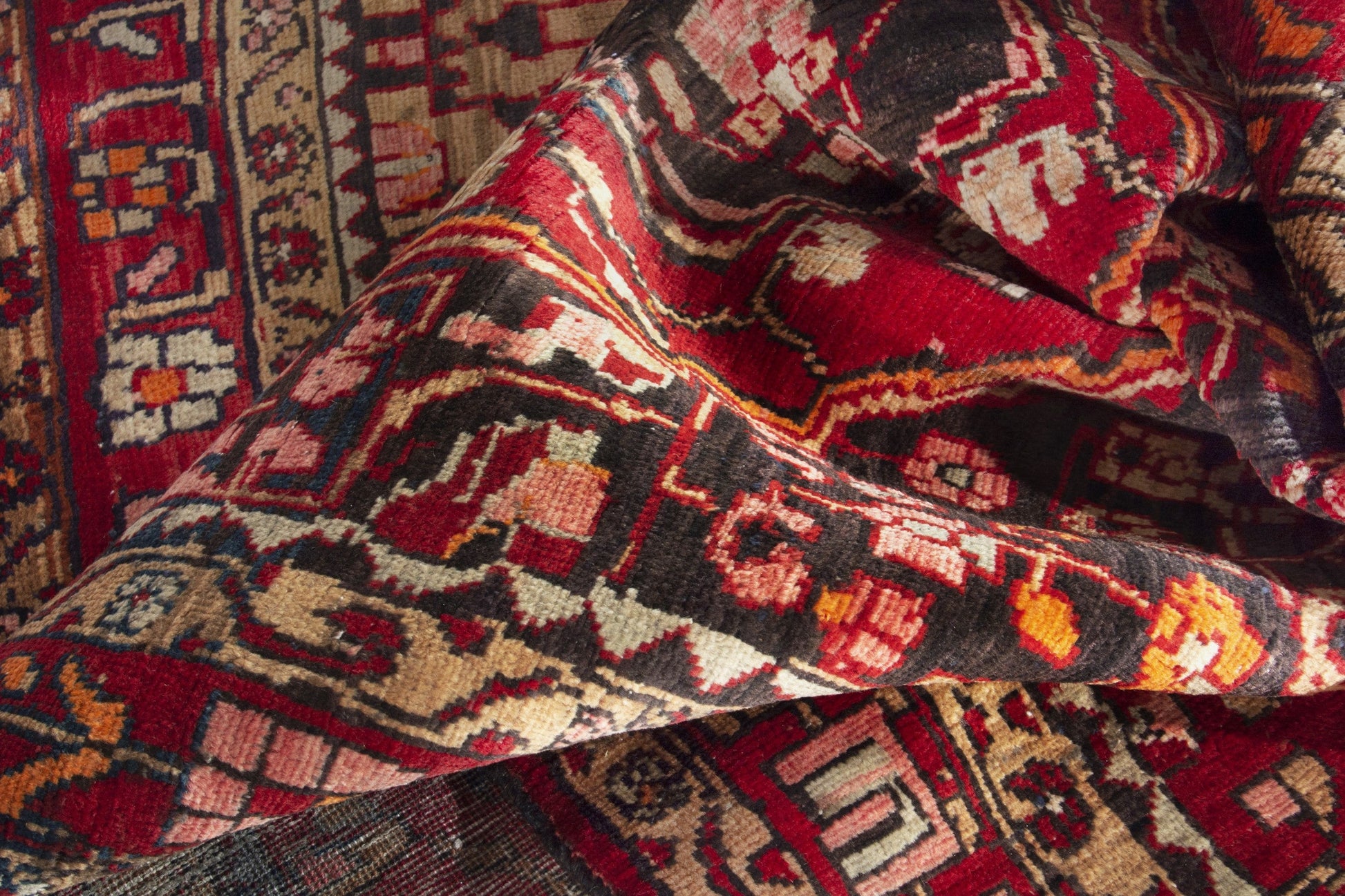 All the rugs we sell are professionally washed and cleaned; age-related wear and natural inconsistencies are inherent in these unique, handcrafted vintage rugs.