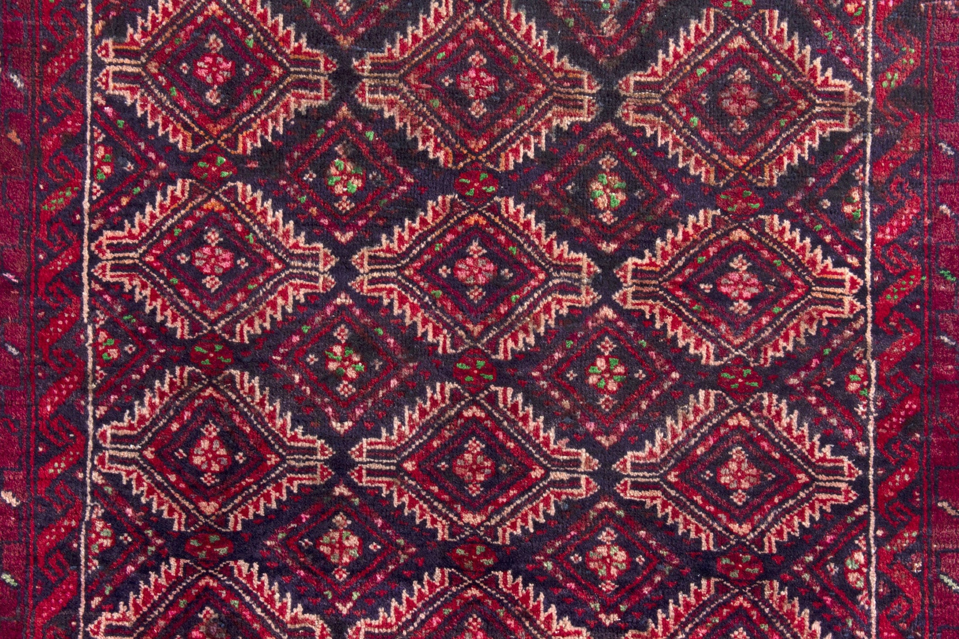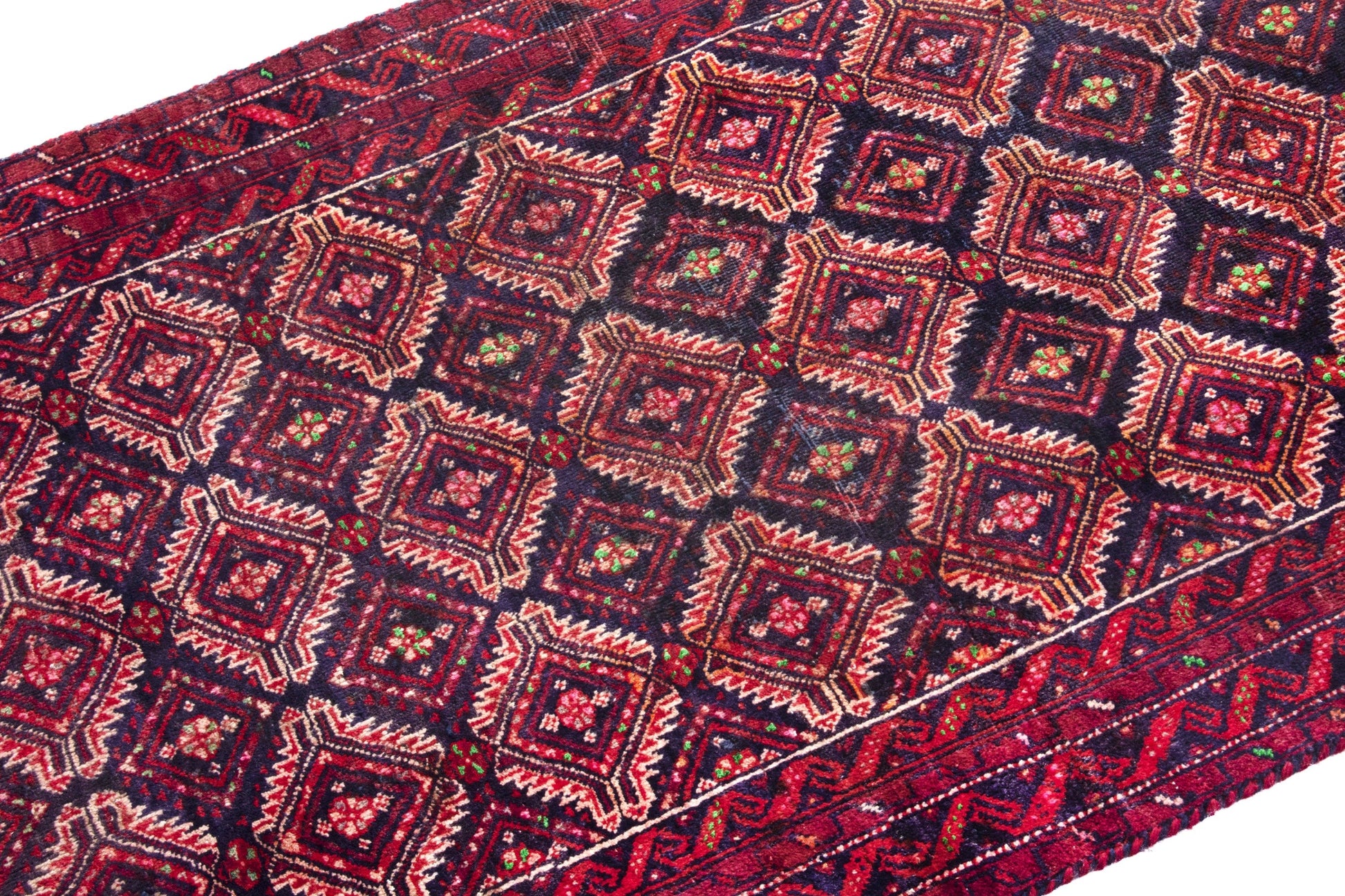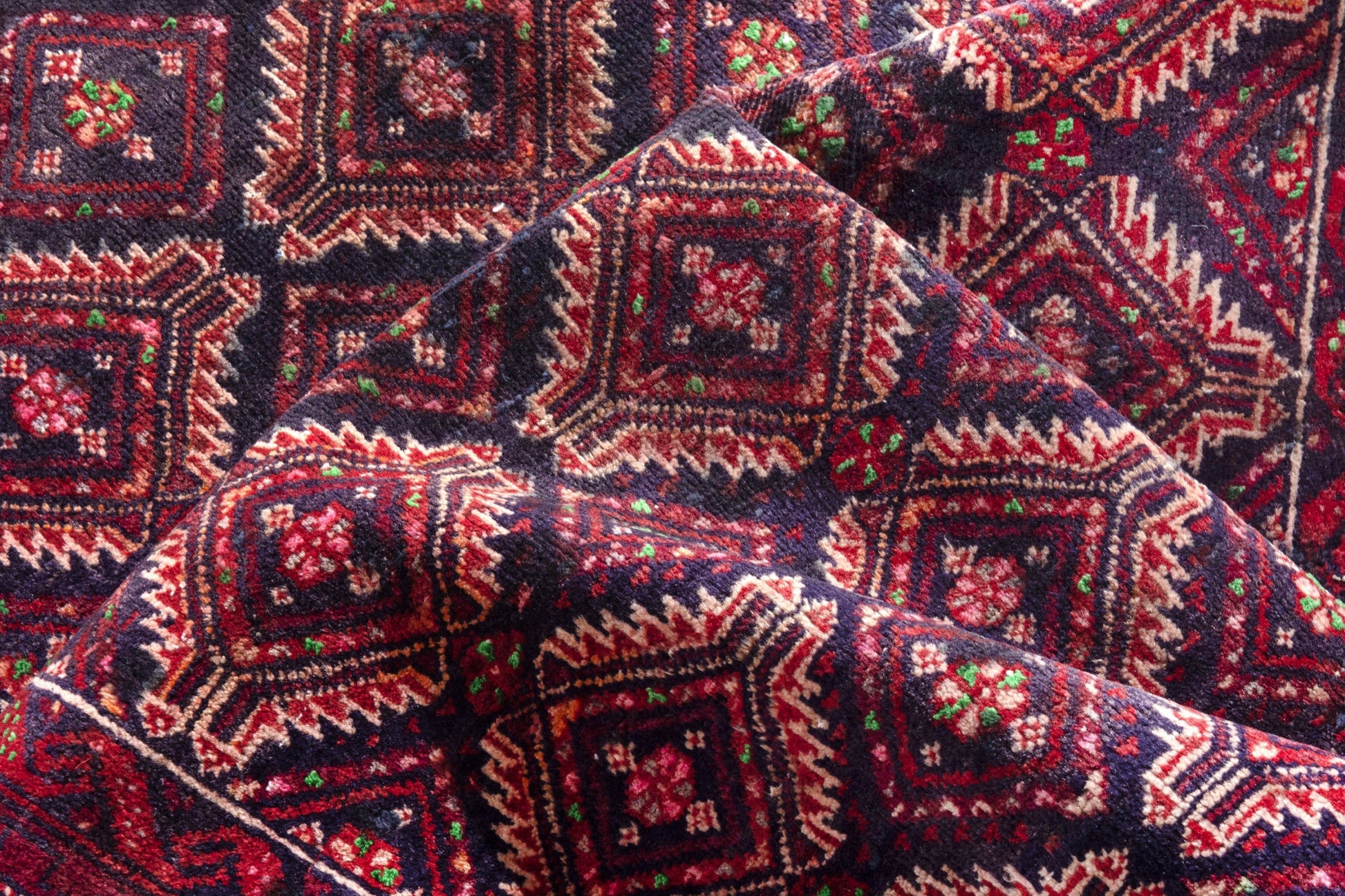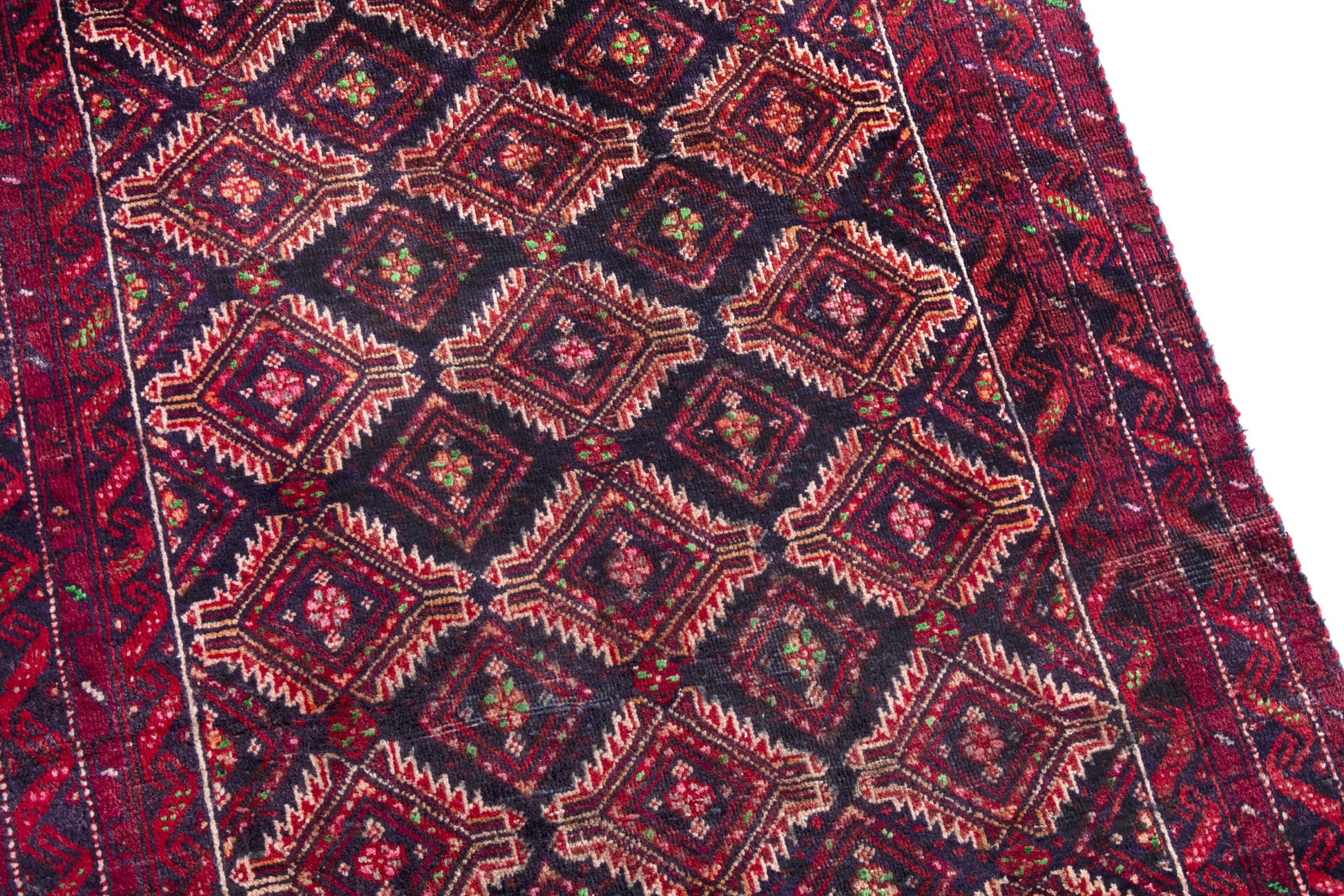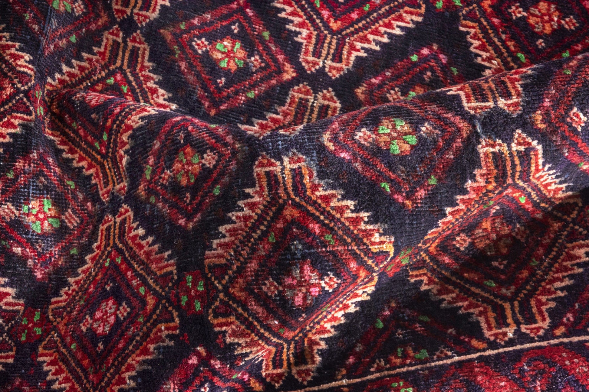 All the rugs we sell are professionally washed and cleaned; age-related wear and natural inconsistencies are inherent in these unique, handcrafted vintage rugs.