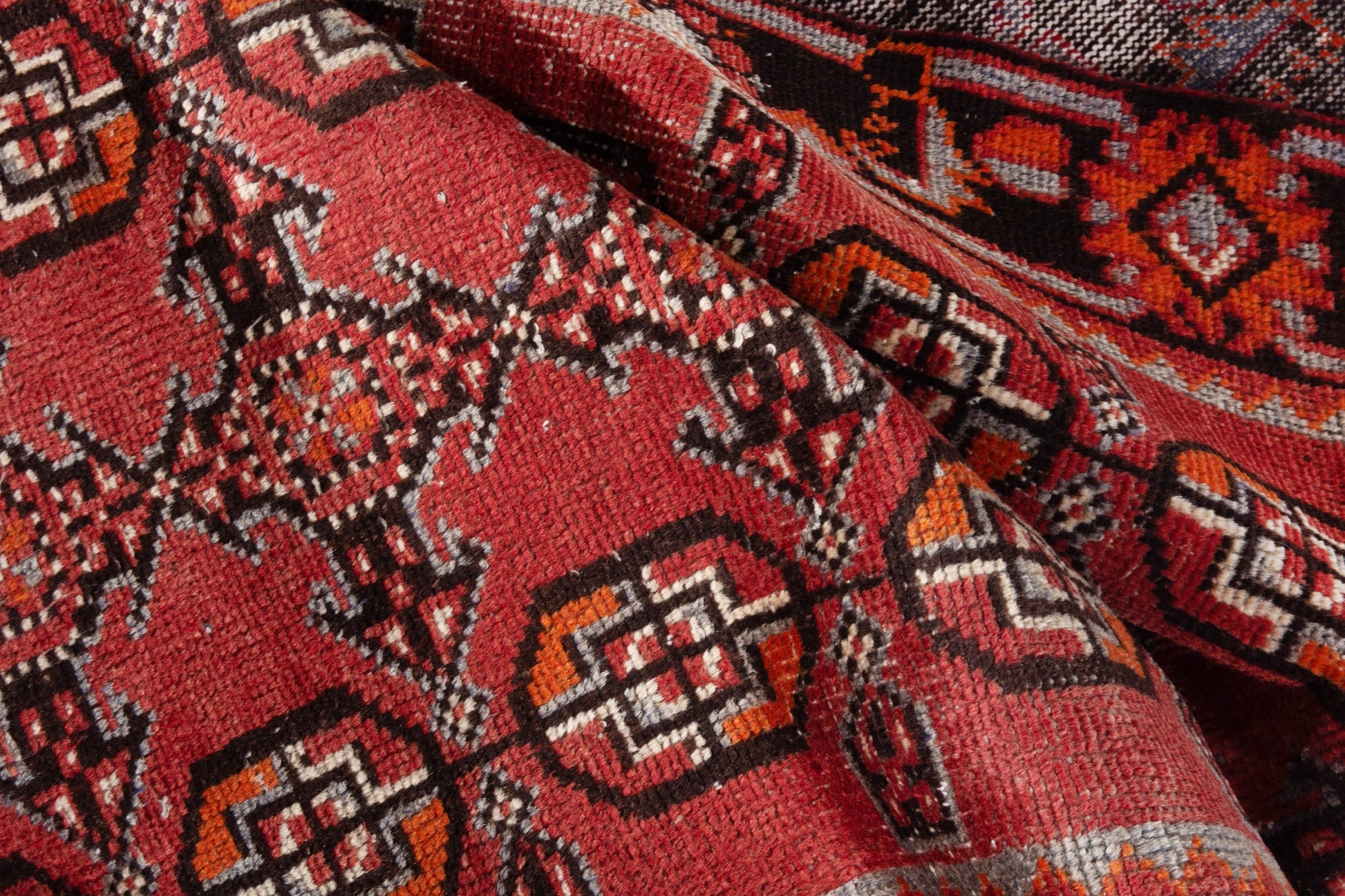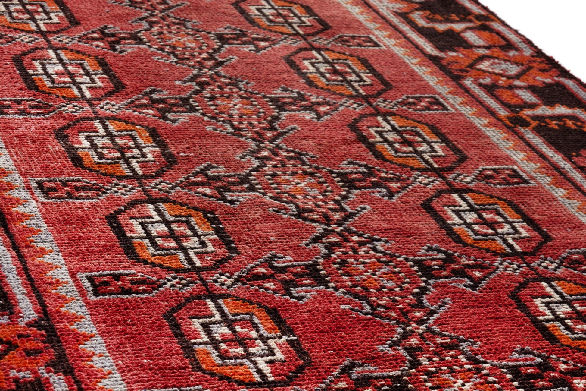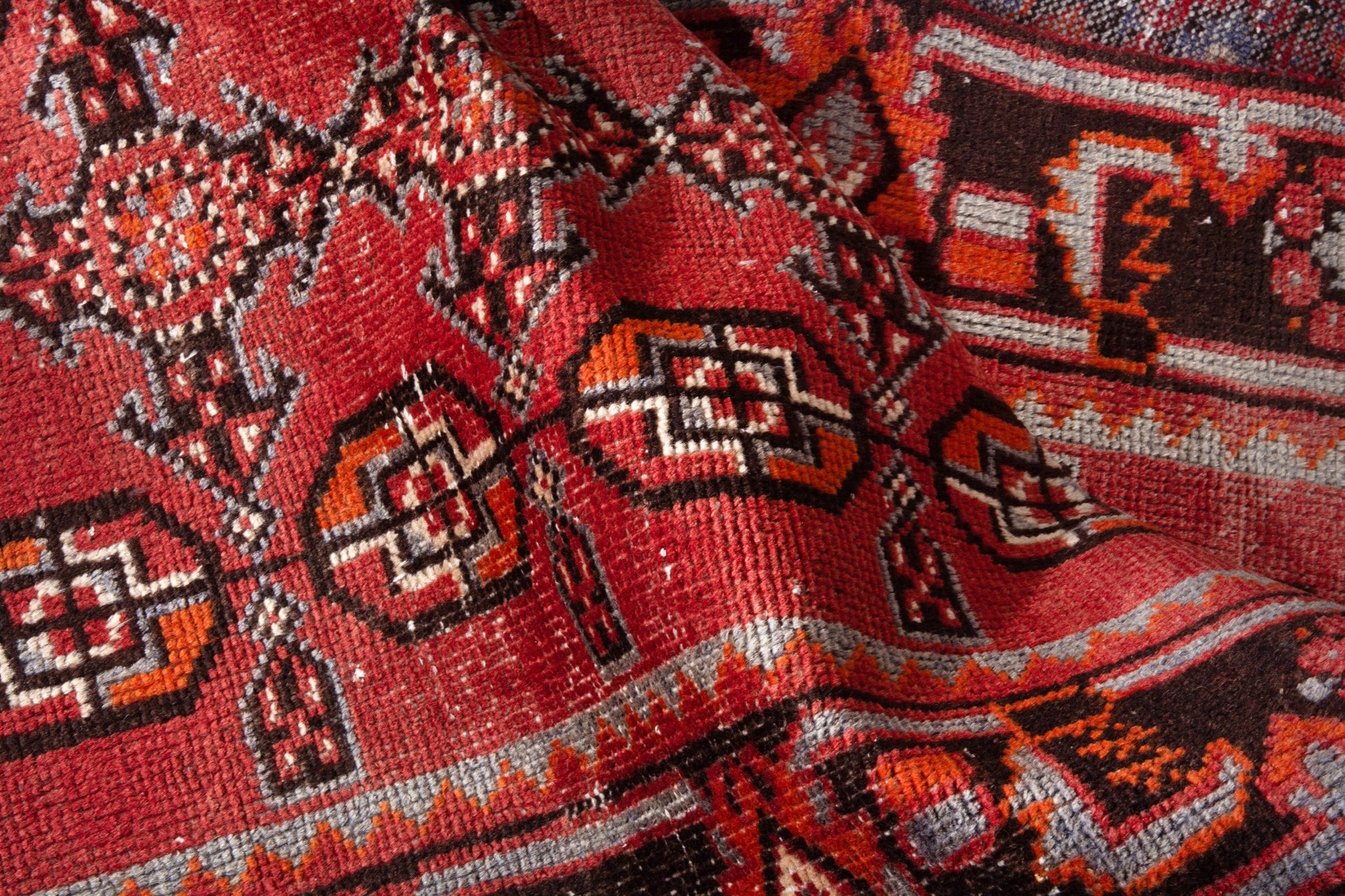 All the rugs we sell are professionally washed and cleaned; age-related wear and natural inconsistencies are inherent in these unique, handcrafted vintage rugs.