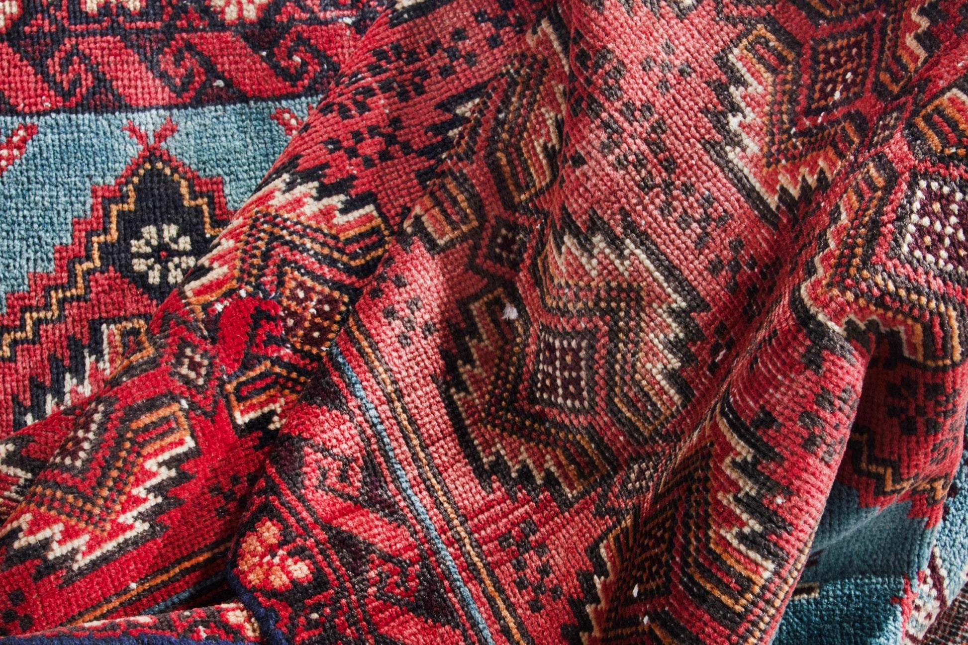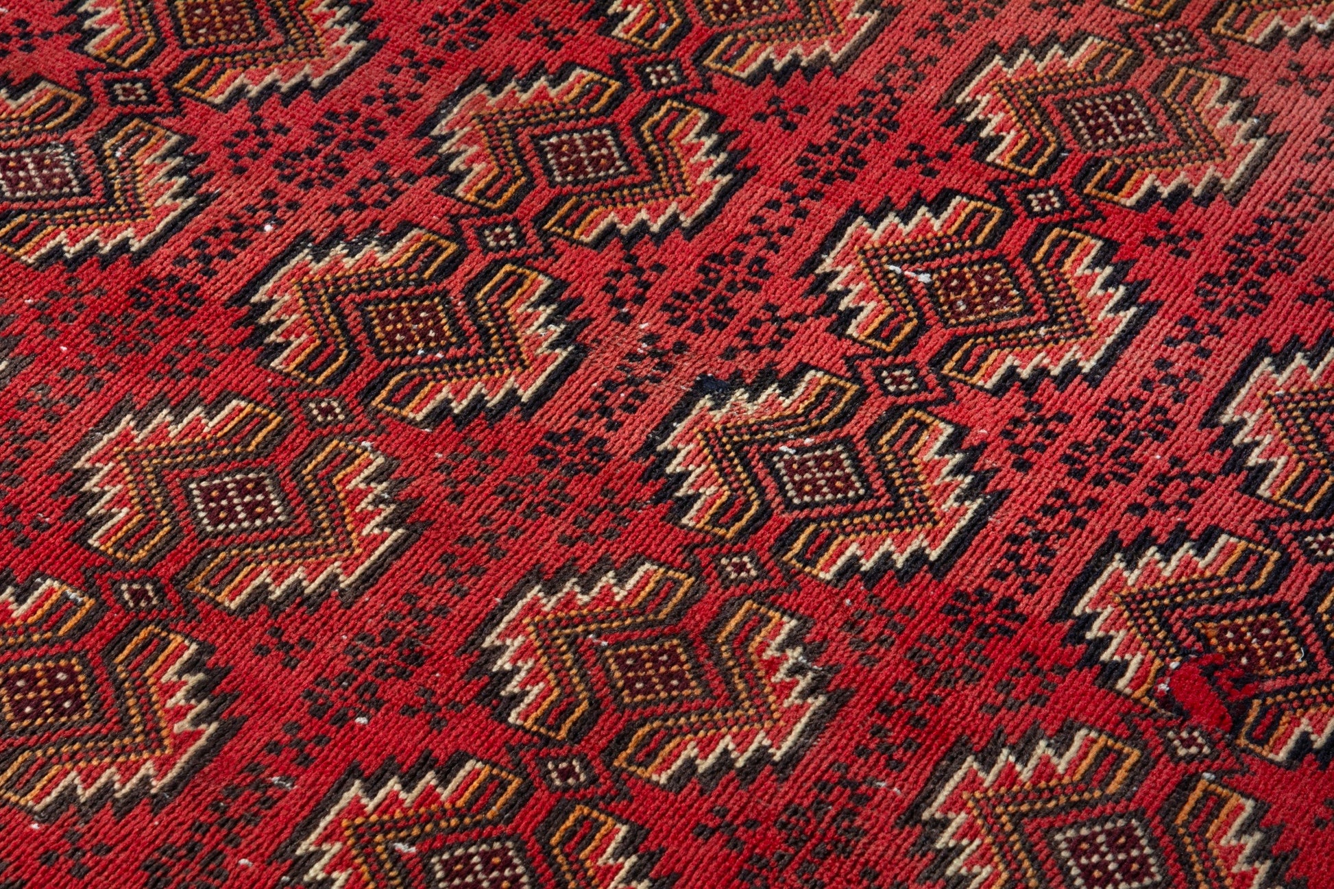 All the rugs we sell are professionally washed and cleaned; age-related wear and natural inconsistencies are inherent in these unique, handcrafted vintage rugs.