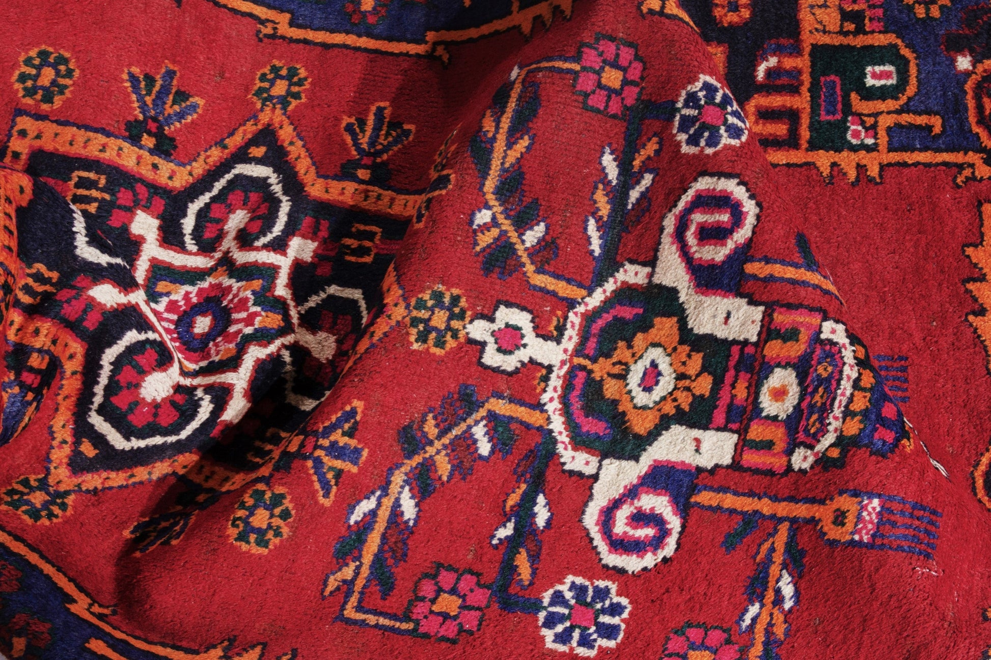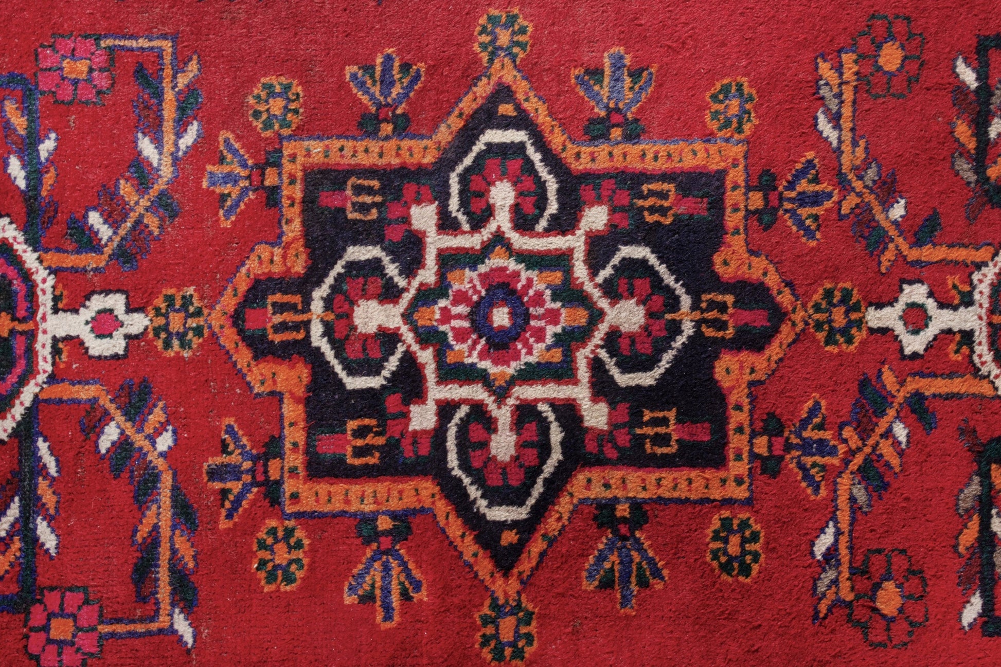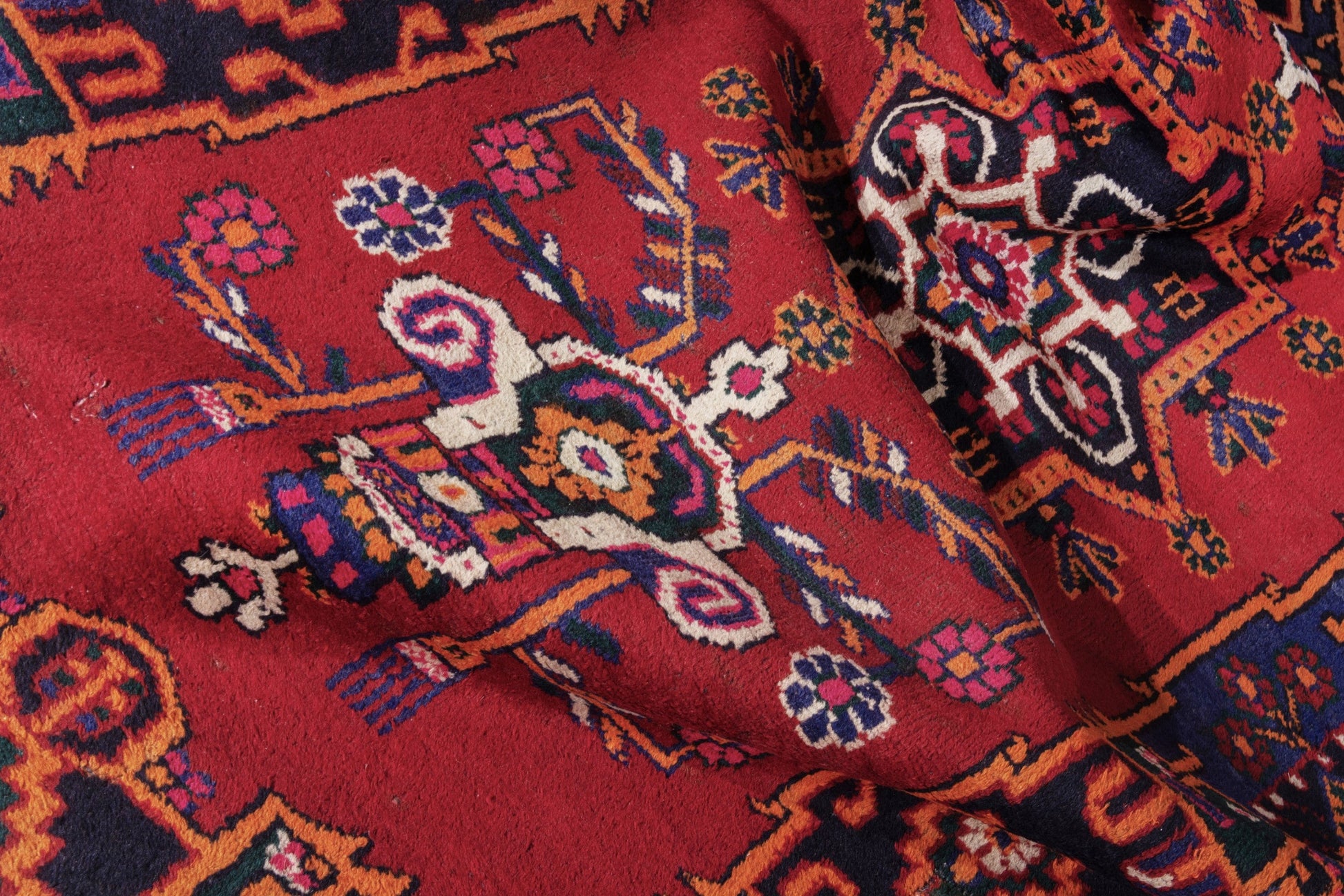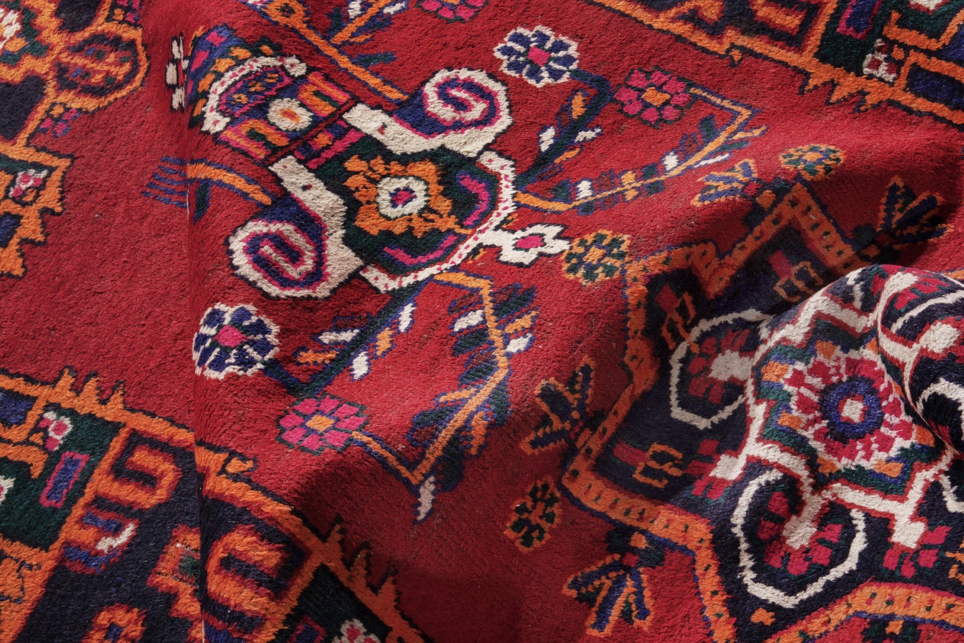 All the rugs we sell are professionally washed and cleaned; age-related wear and natural inconsistencies are inherent in these unique, handcrafted vintage rugs.
