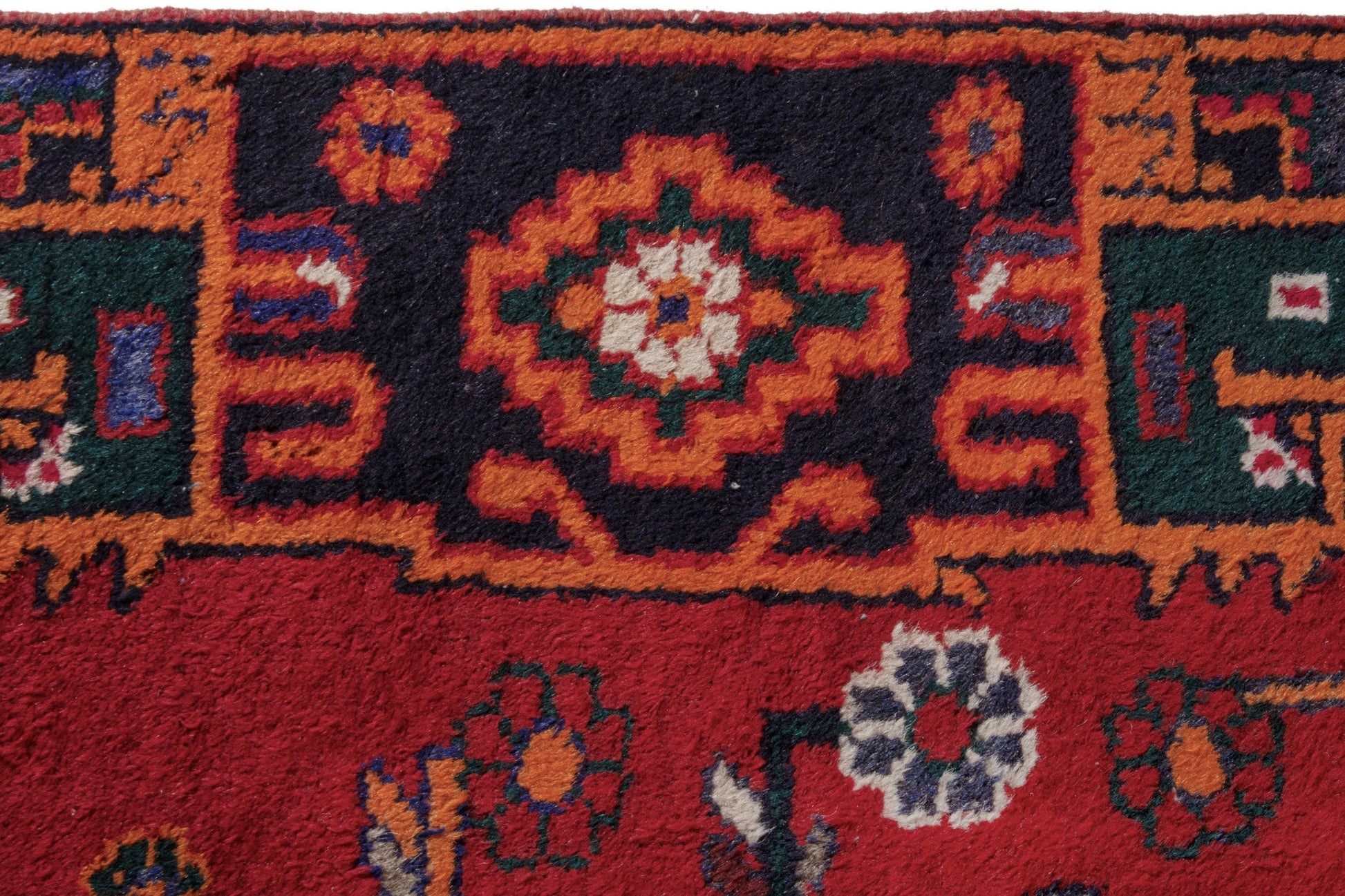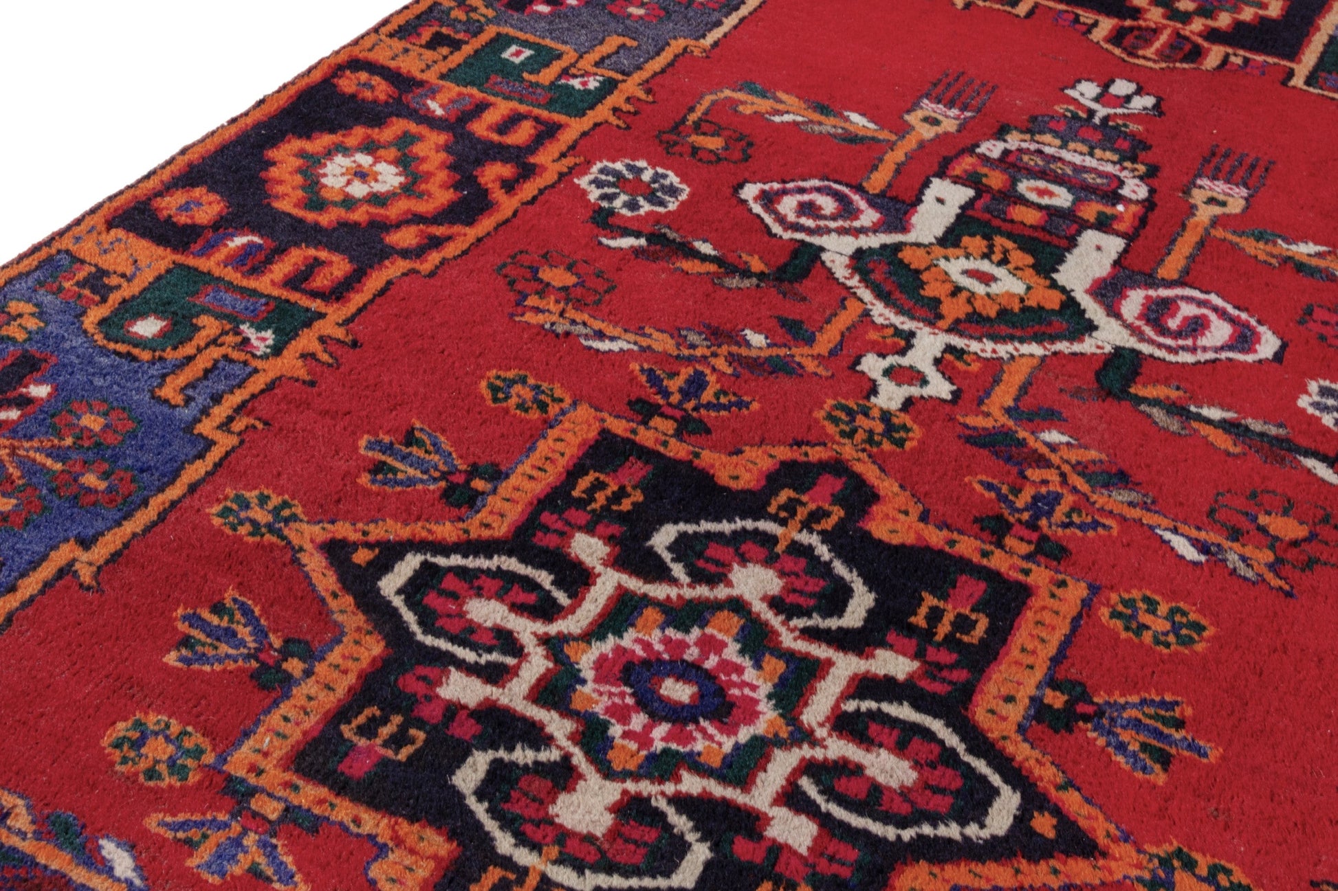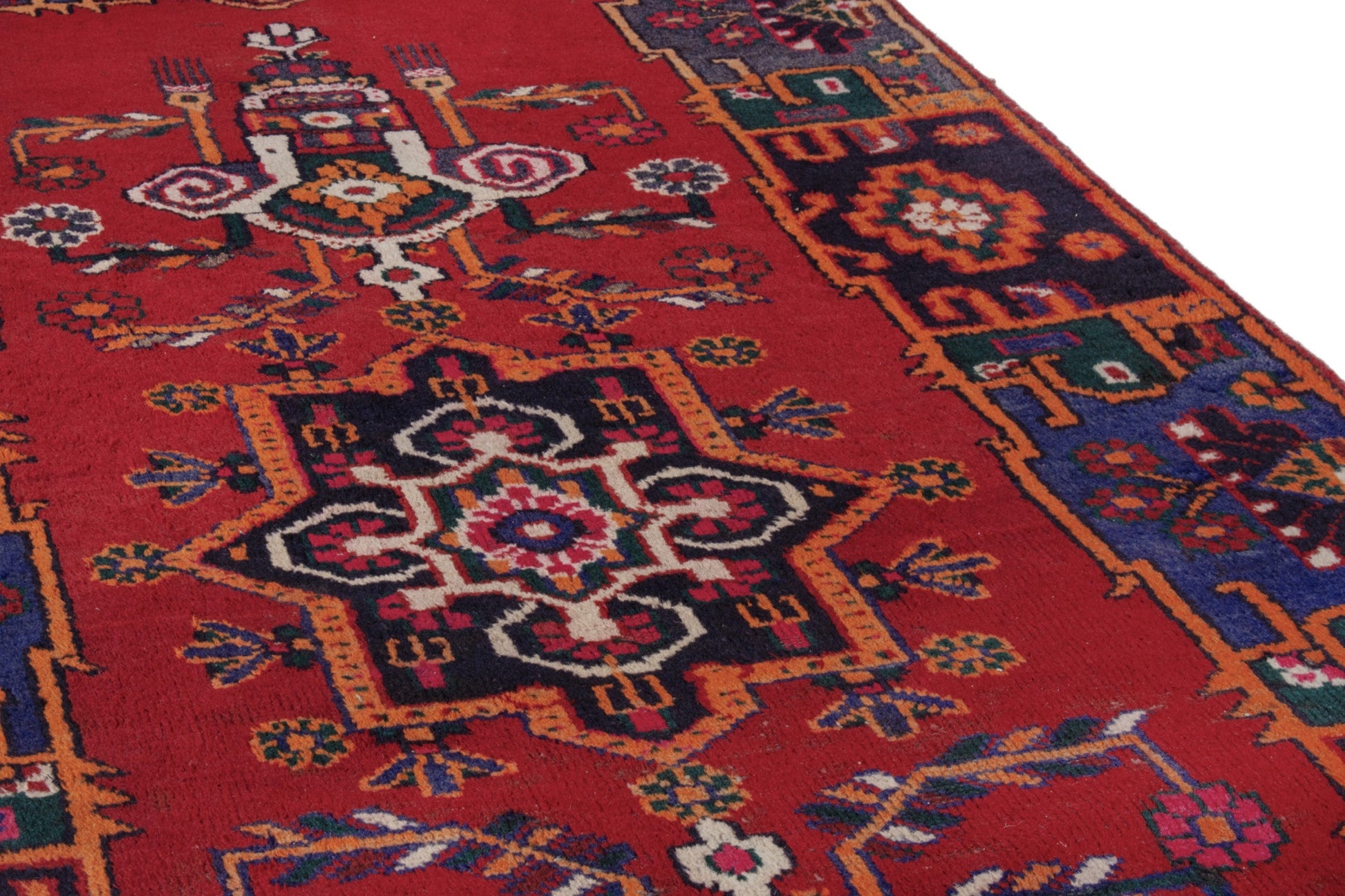 All the rugs we sell are professionally washed and cleaned; age-related wear and natural inconsistencies are inherent in these unique, handcrafted vintage rugs.