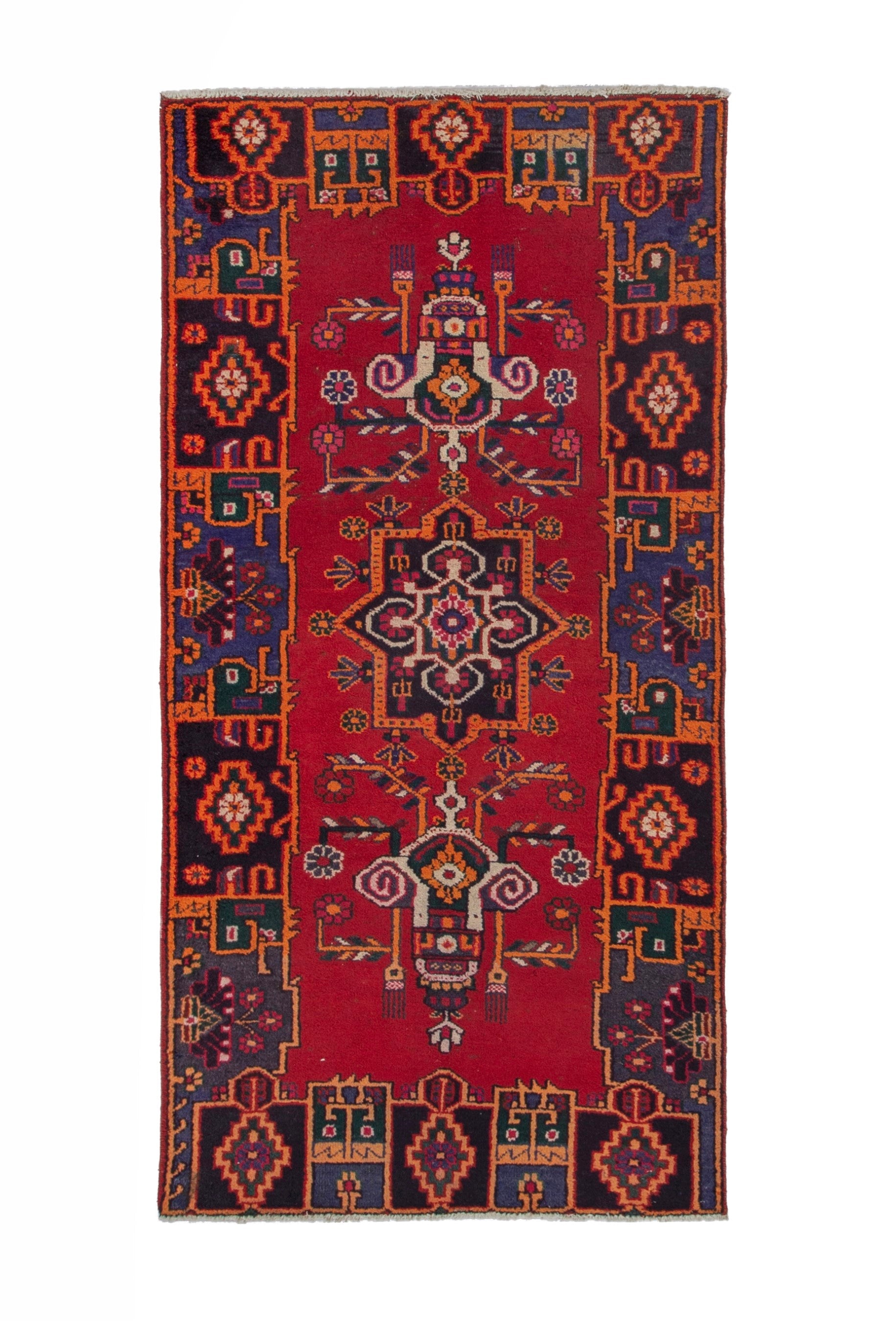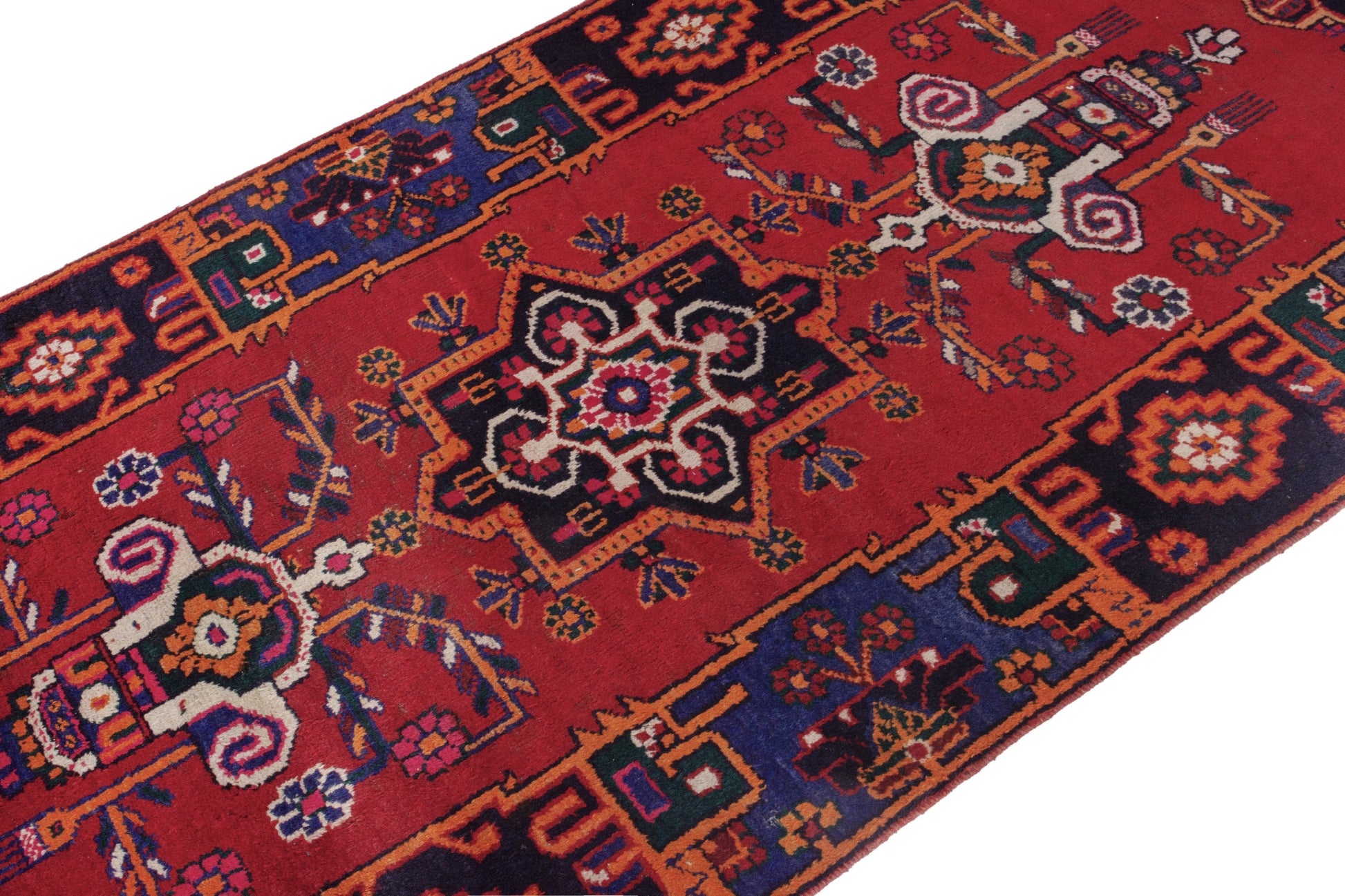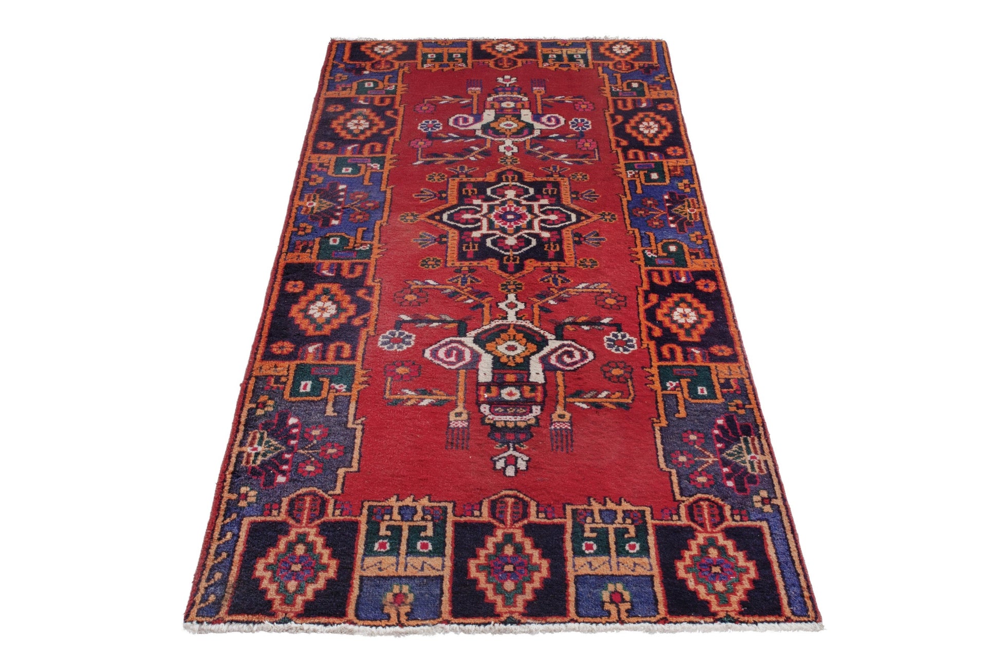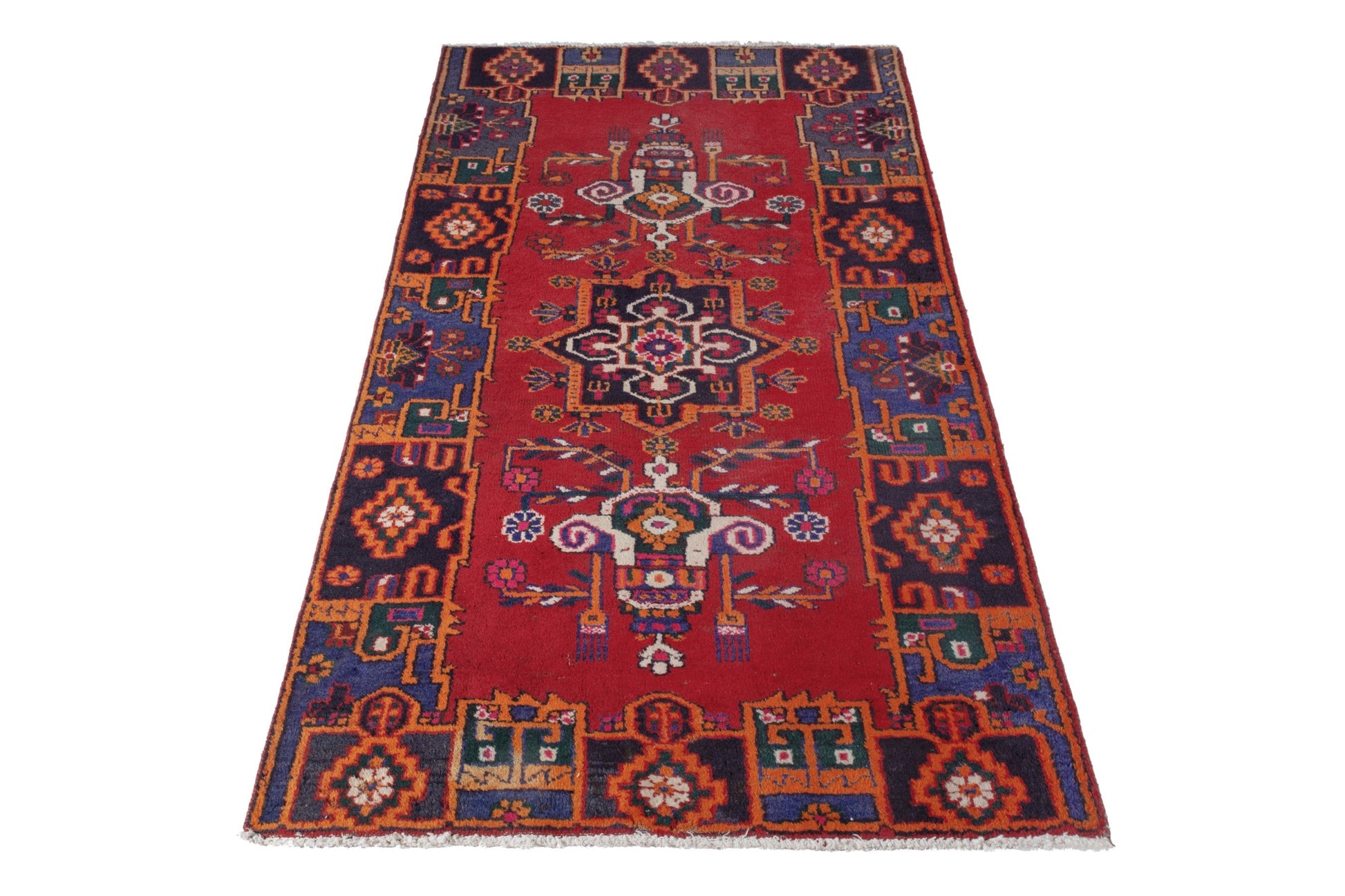 All the rugs we sell are professionally washed and cleaned; age-related wear and natural inconsistencies are inherent in these unique, handcrafted vintage rugs.