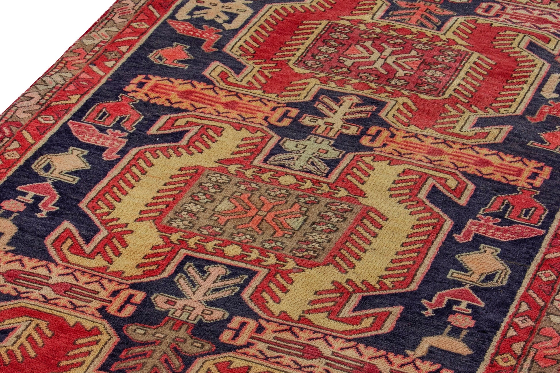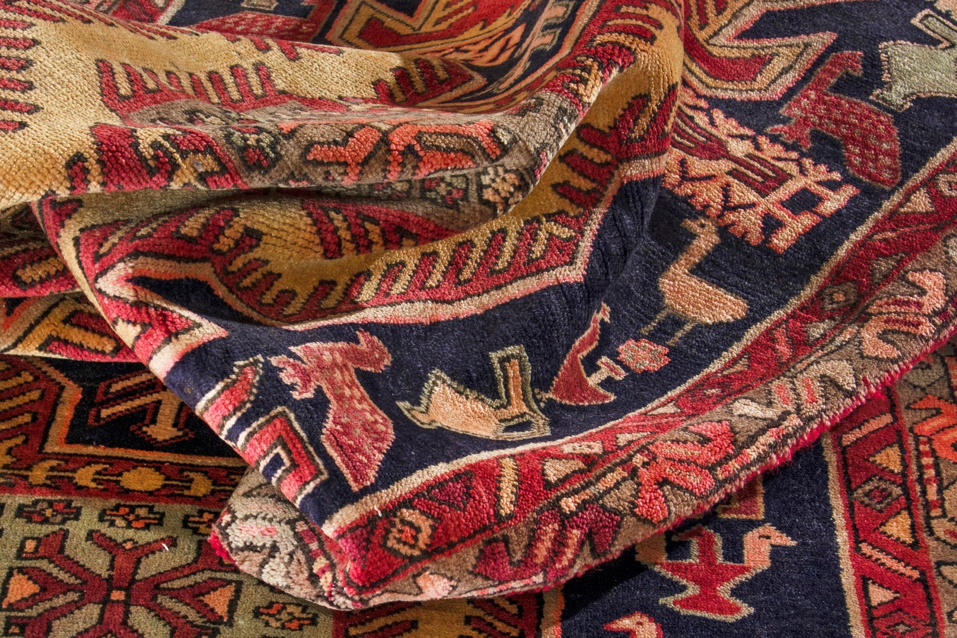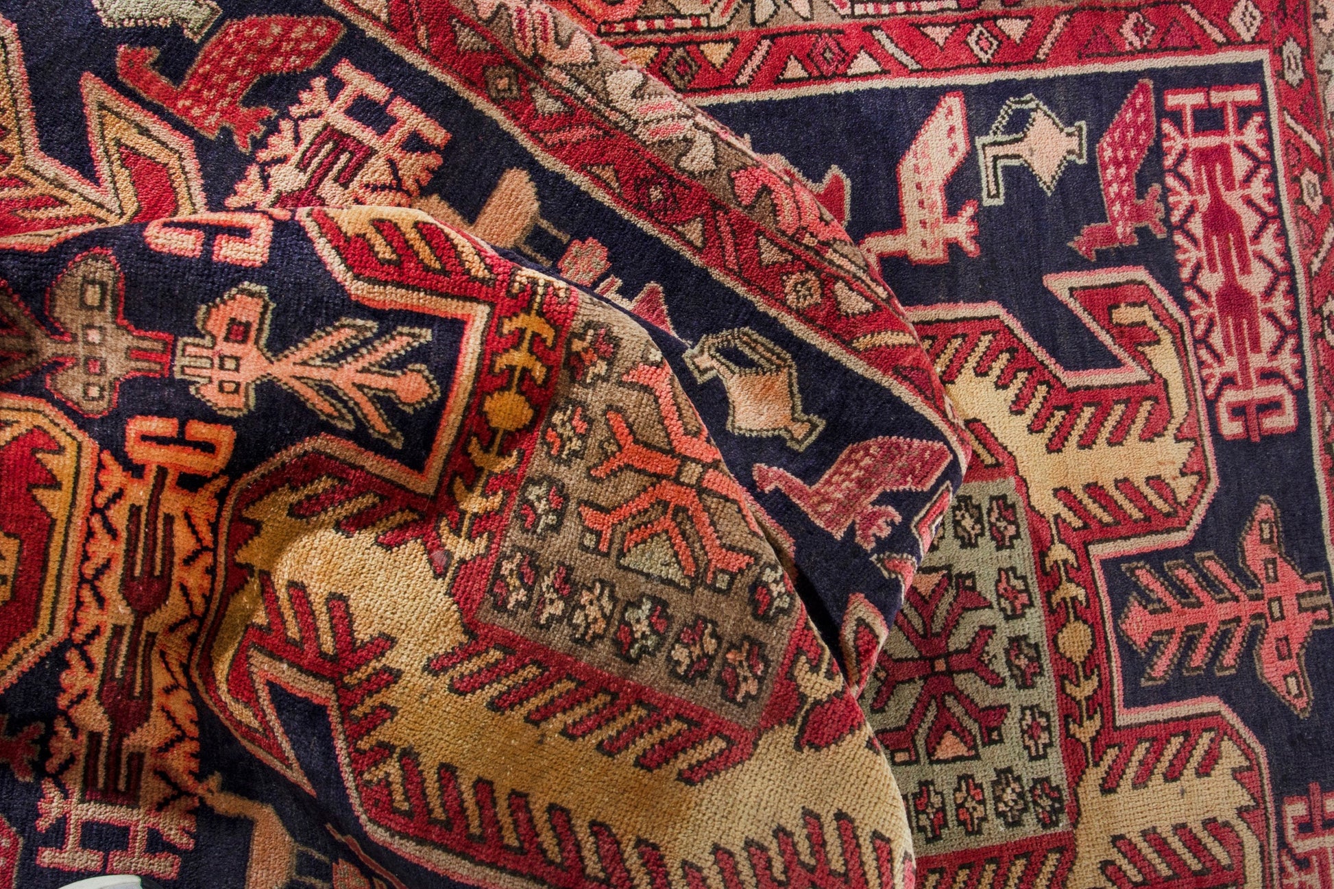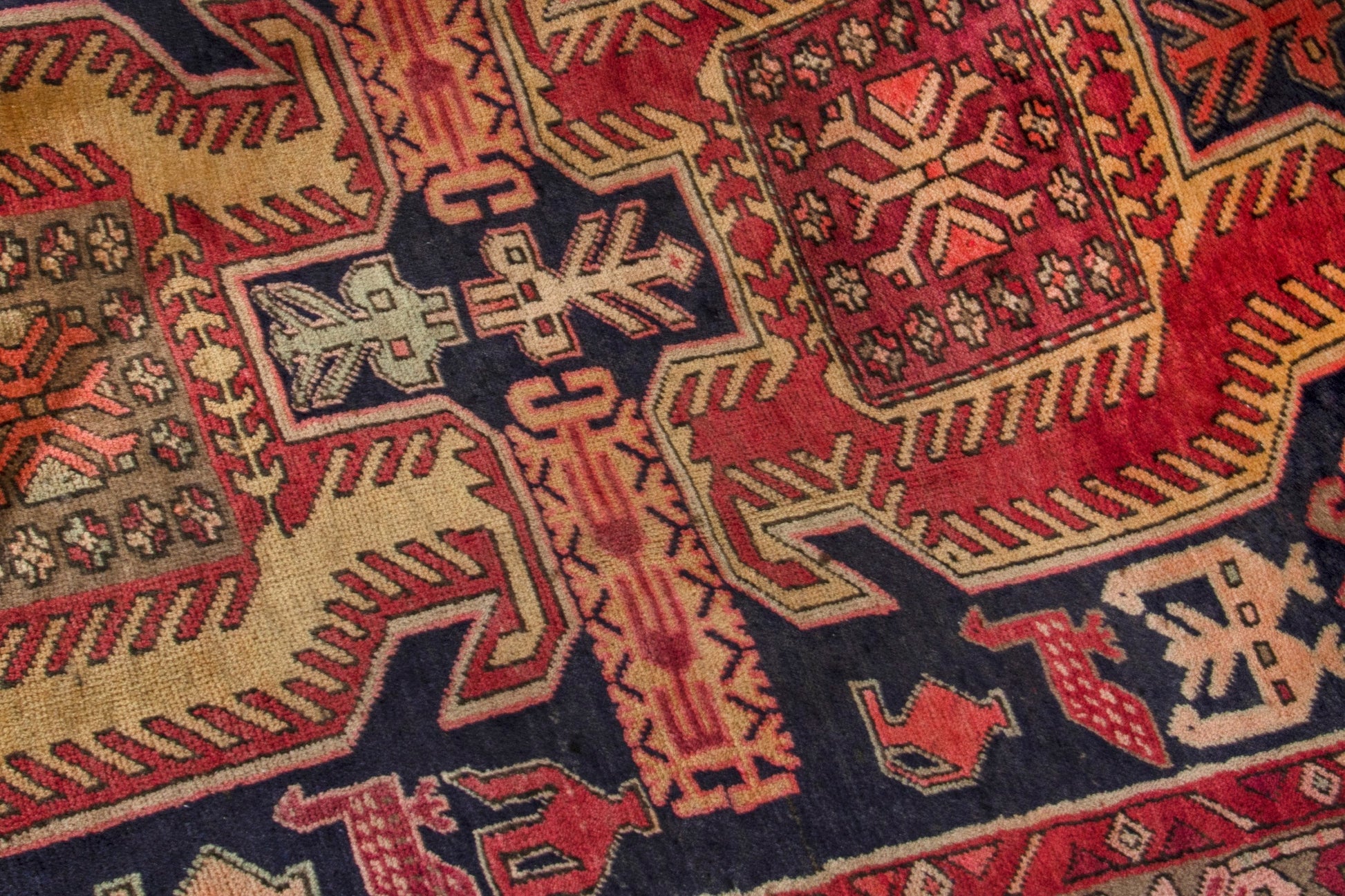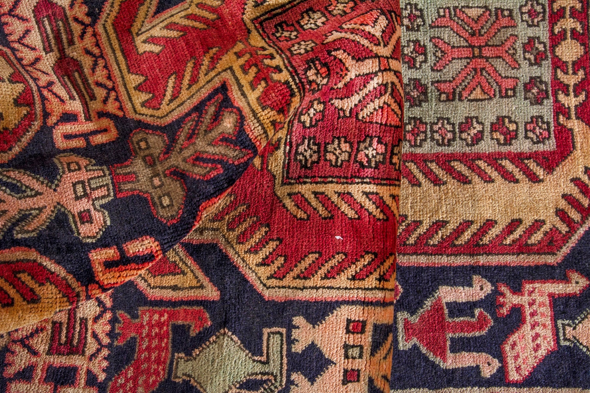 All the rugs we sell are professionally washed and cleaned; age-related wear and natural inconsistencies are inherent in these unique, handcrafted vintage rugs.