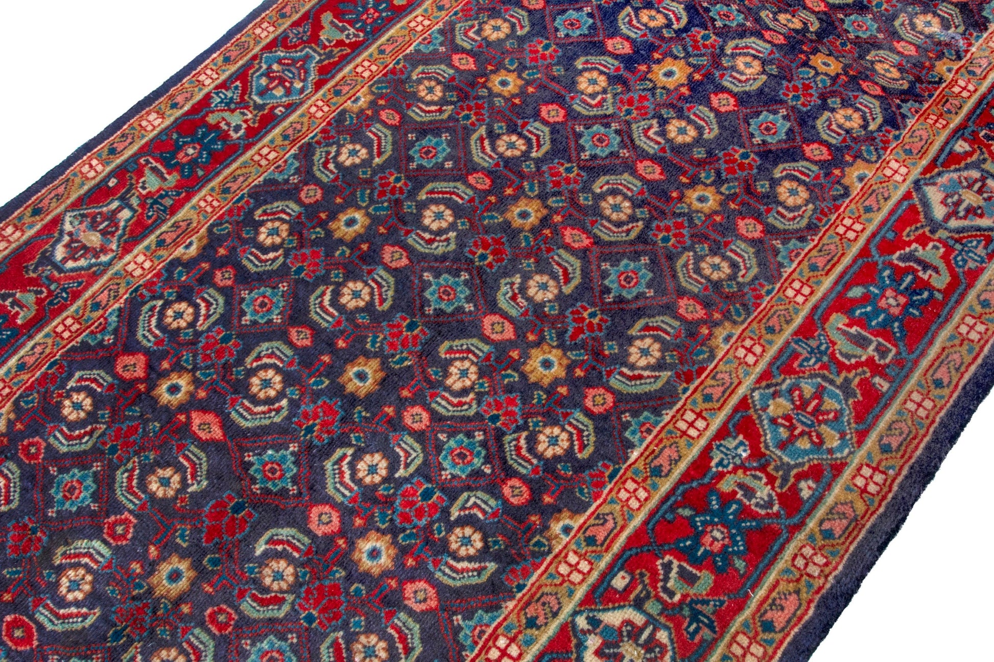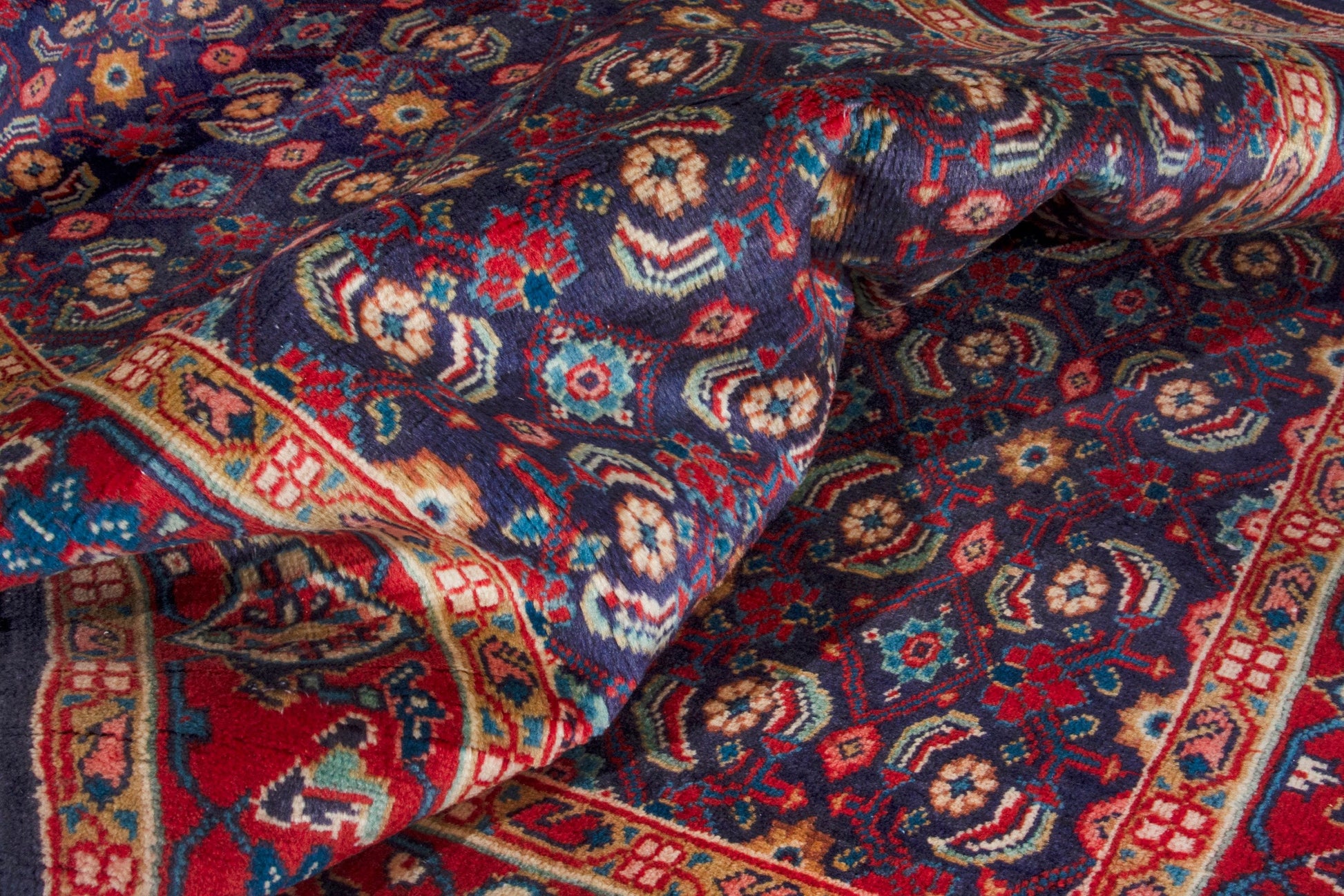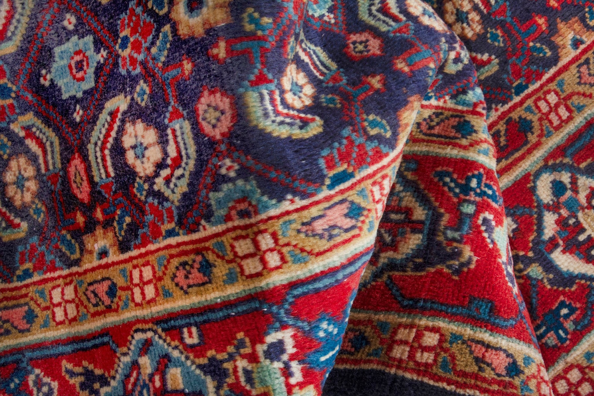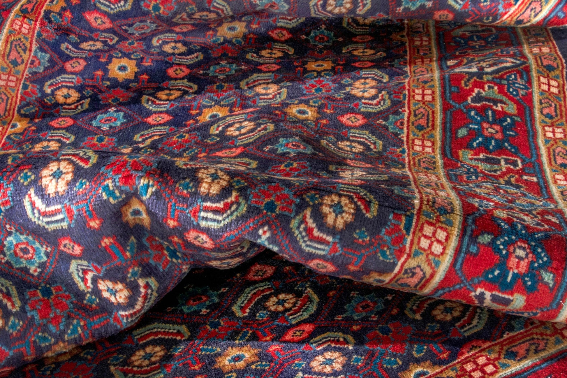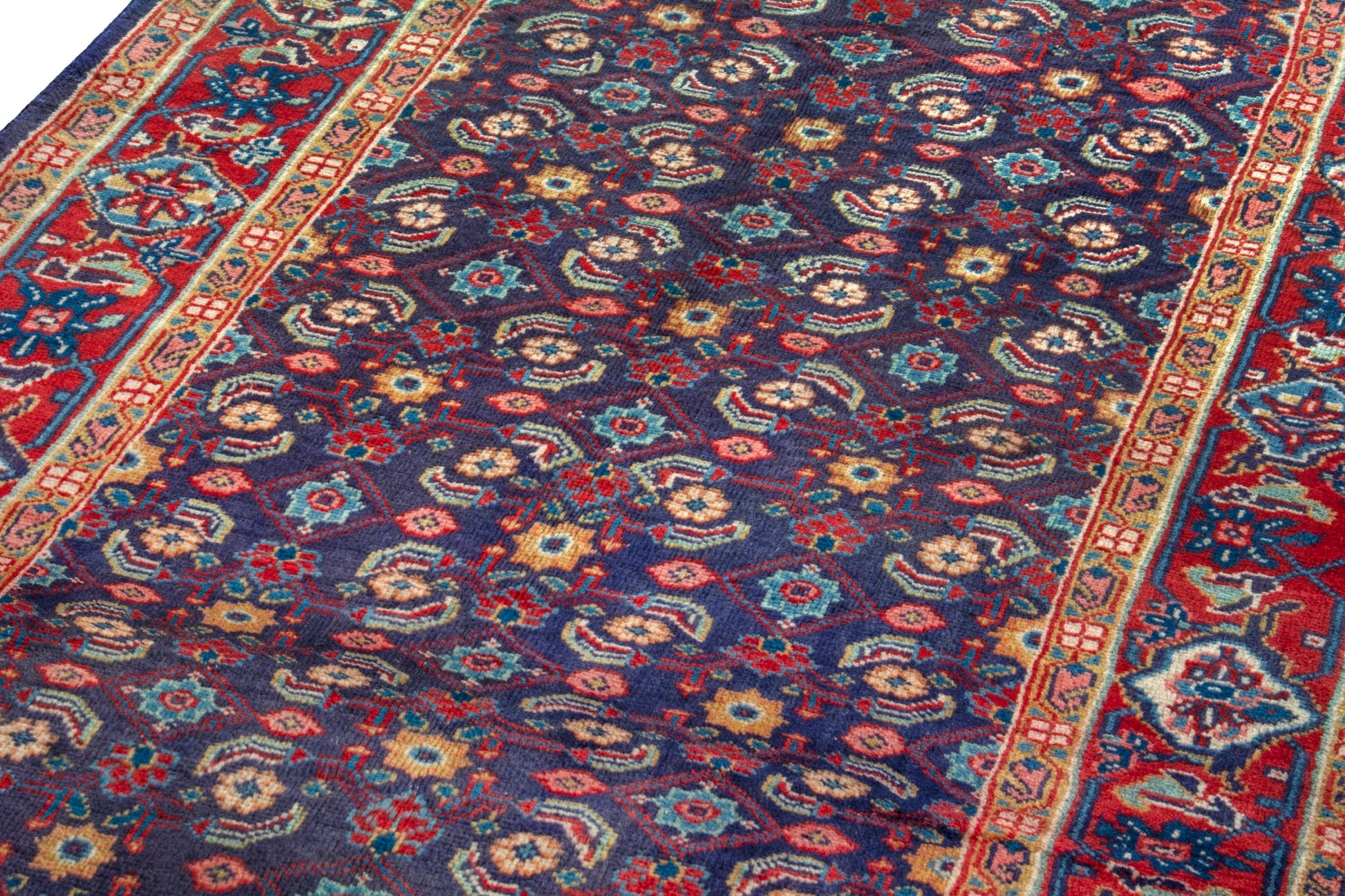 All the rugs we sell are professionally washed and cleaned; age-related wear and natural inconsistencies are inherent in these unique, handcrafted vintage rugs.