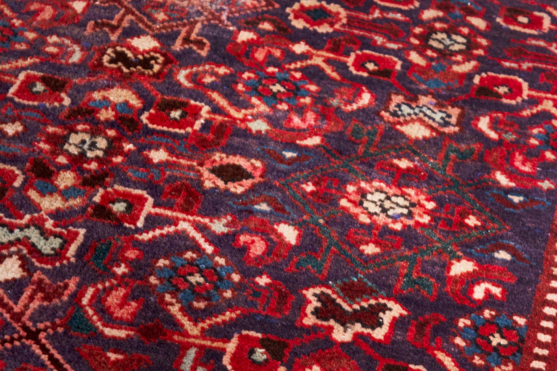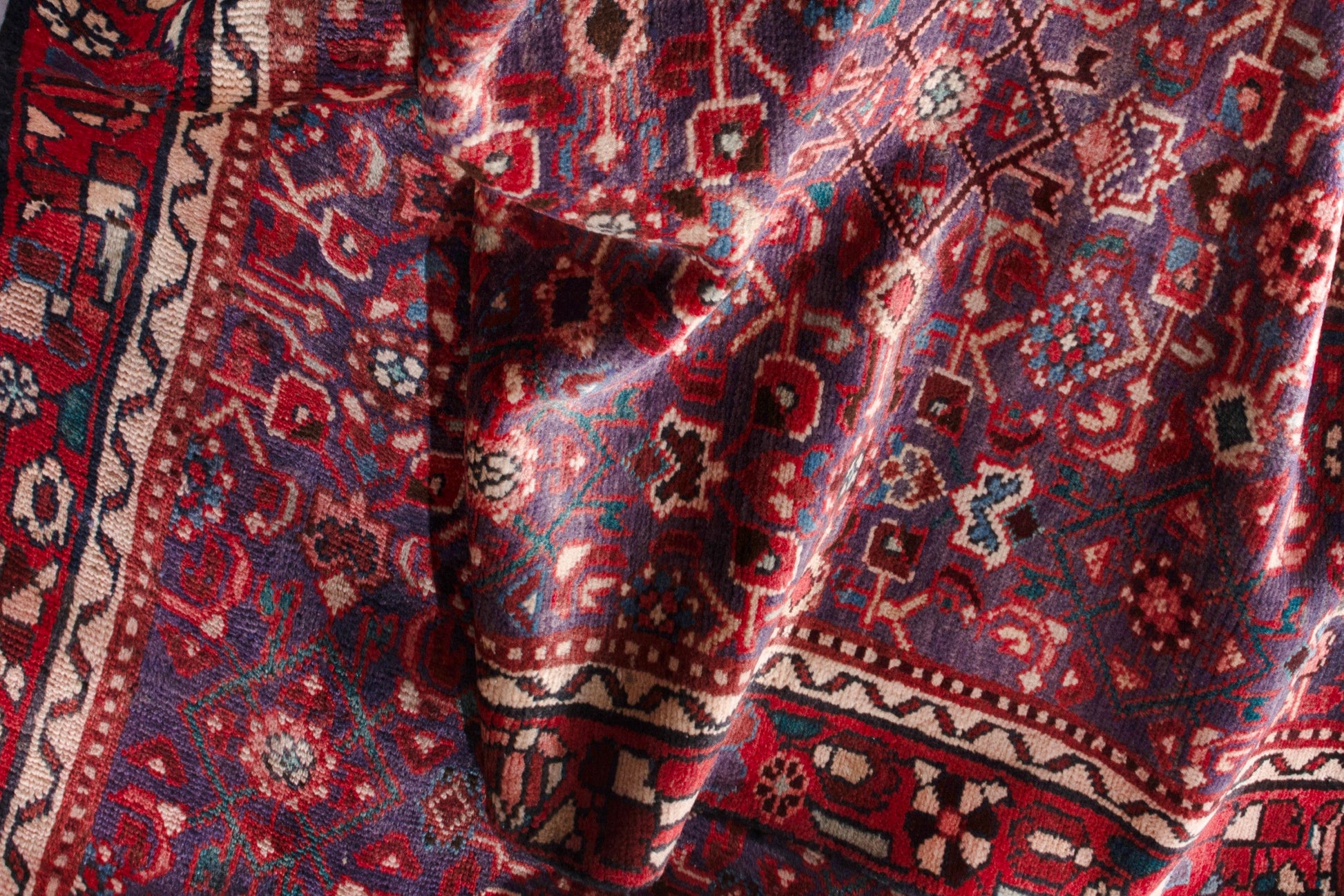 All the rugs we sell are professionally washed and cleaned; age-related wear and natural inconsistencies are inherent in these unique, handcrafted vintage rugs.