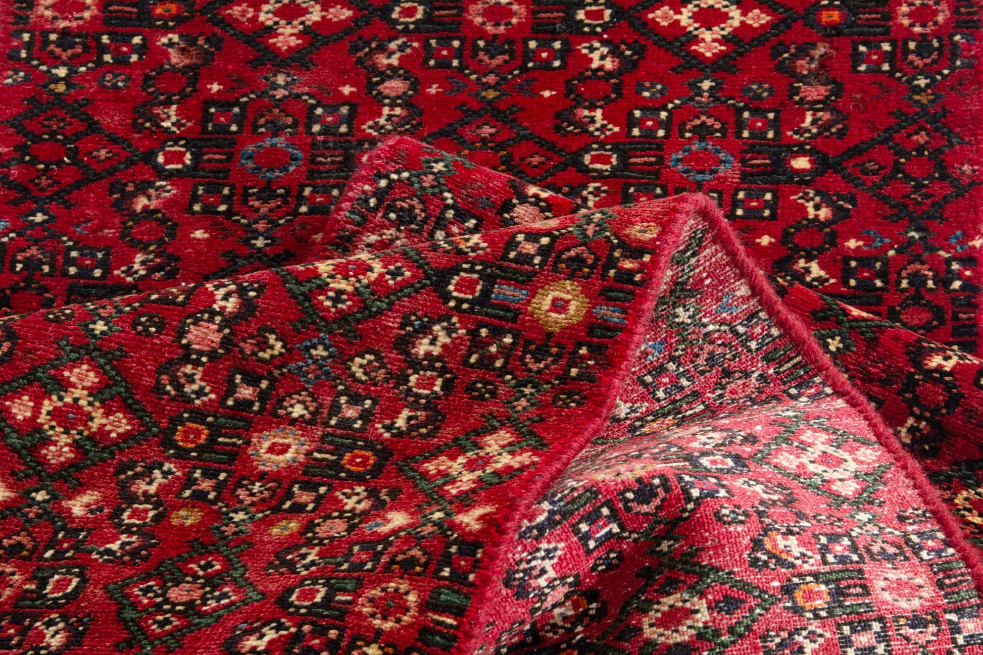 All the rugs we sell are professionally washed and cleaned; age-related wear and natural inconsistencies are inherent in these unique, handcrafted vintage rugs.