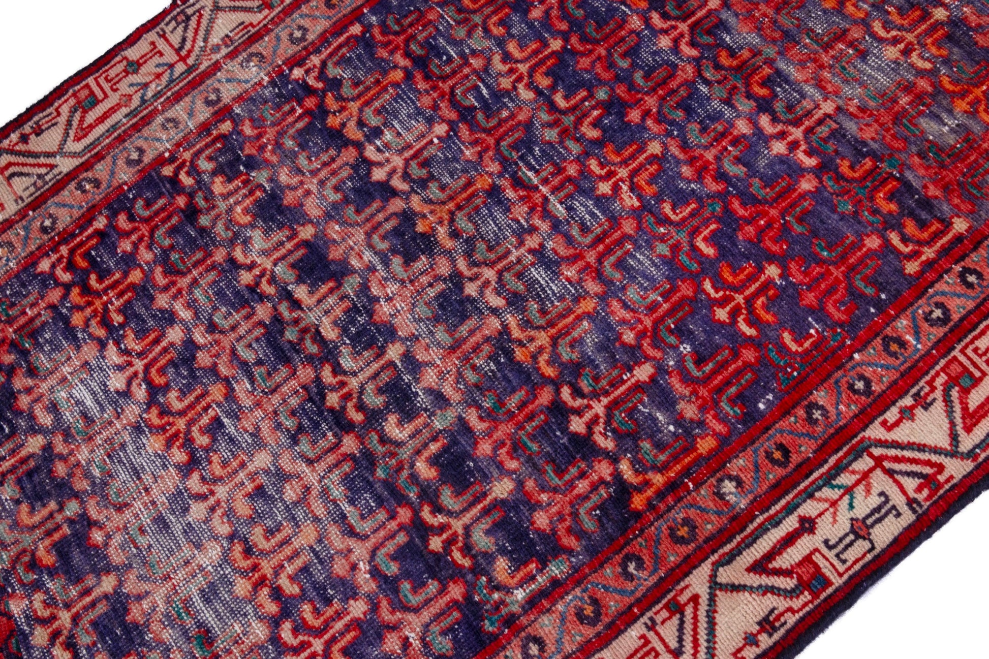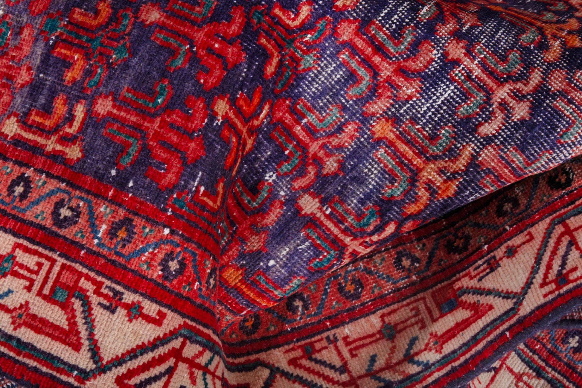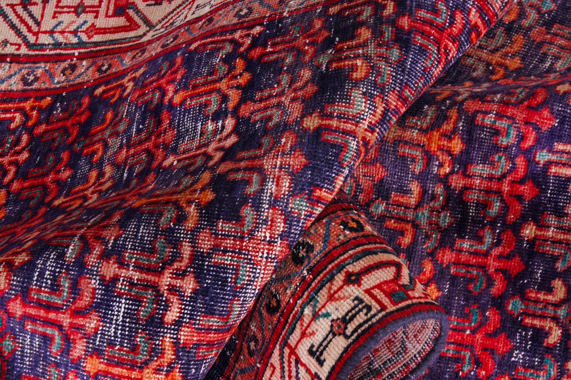 All the rugs we sell are professionally washed and cleaned; age-related wear and natural inconsistencies are inherent in these unique, handcrafted vintage rugs.