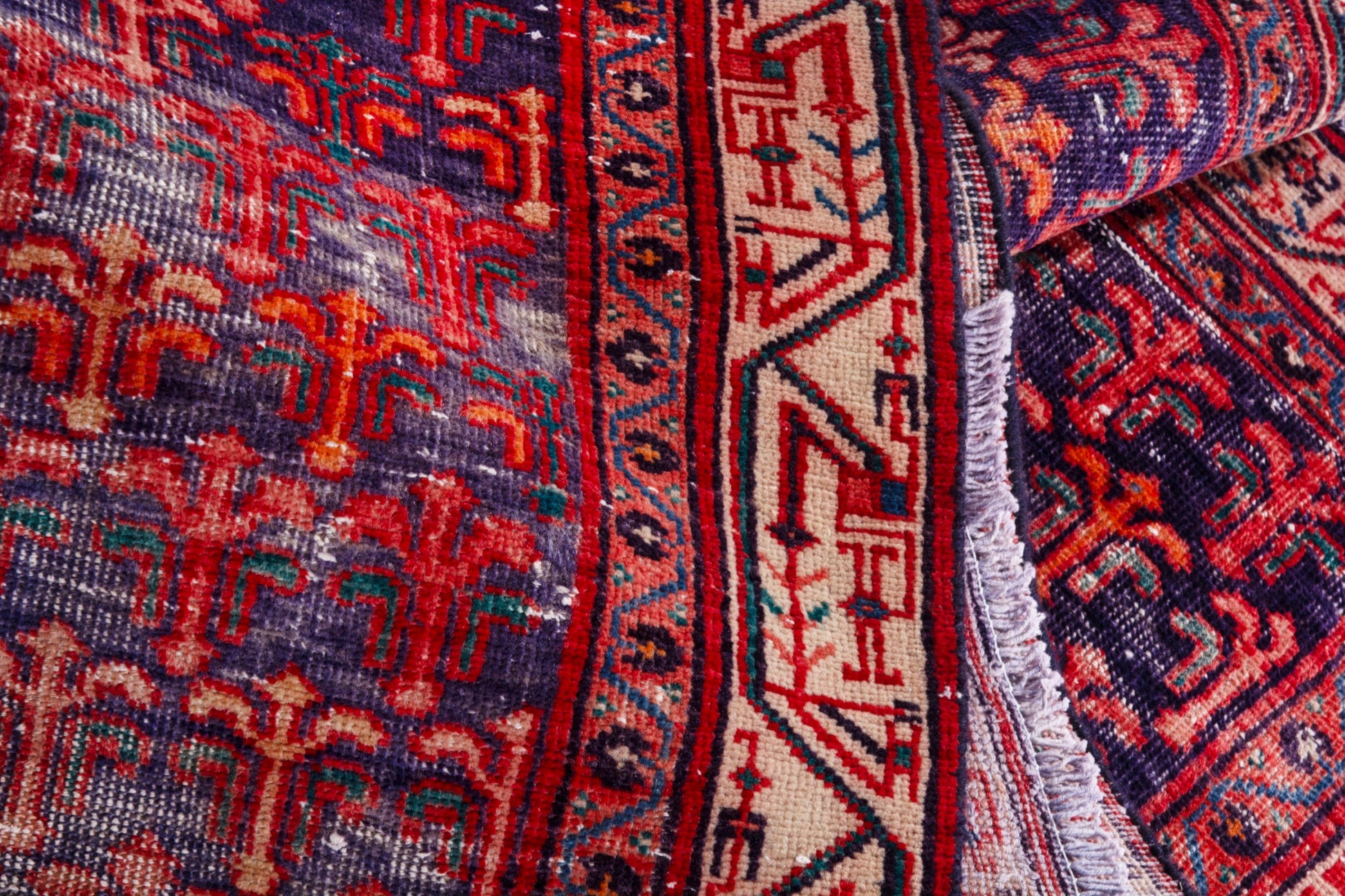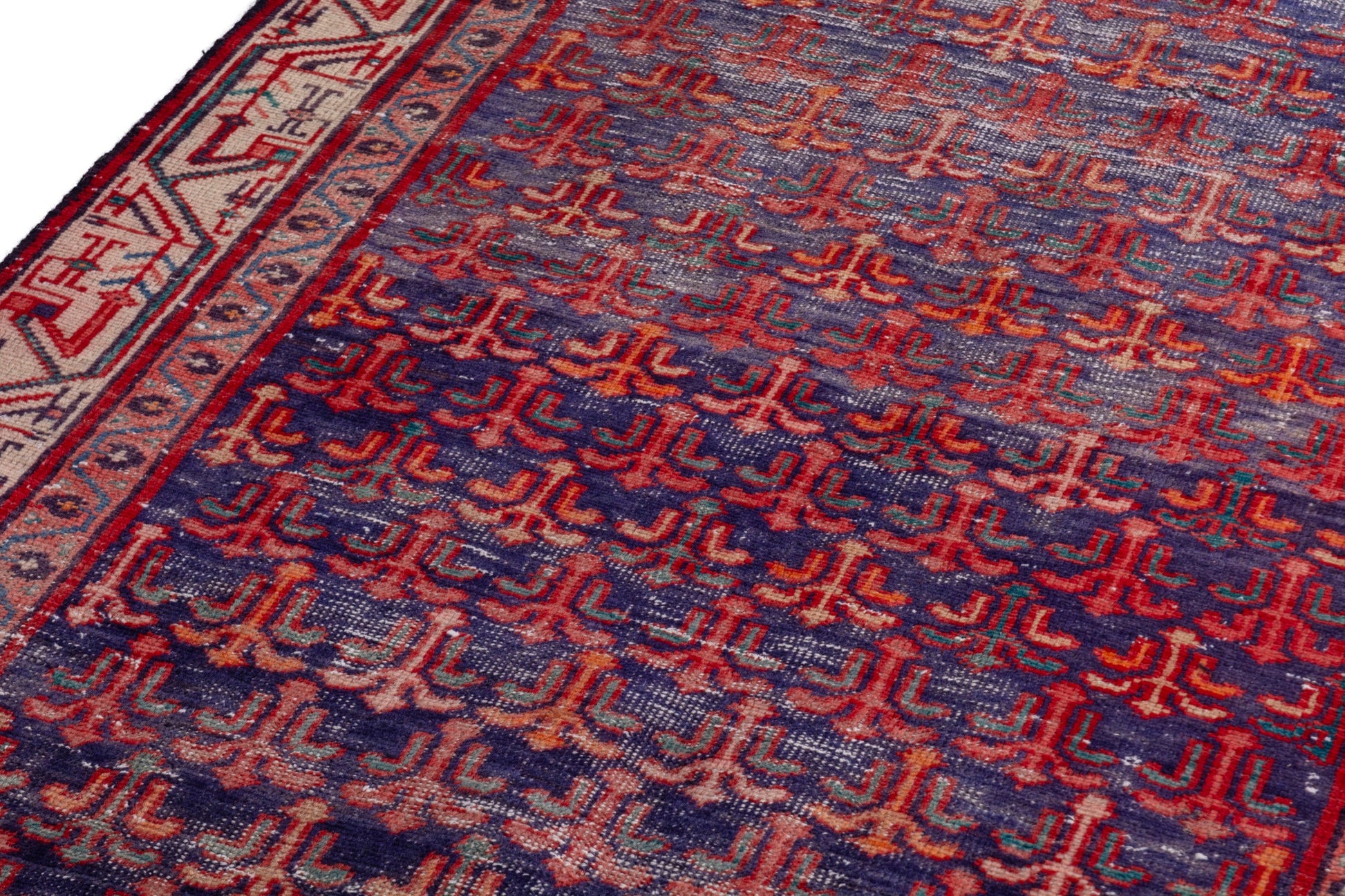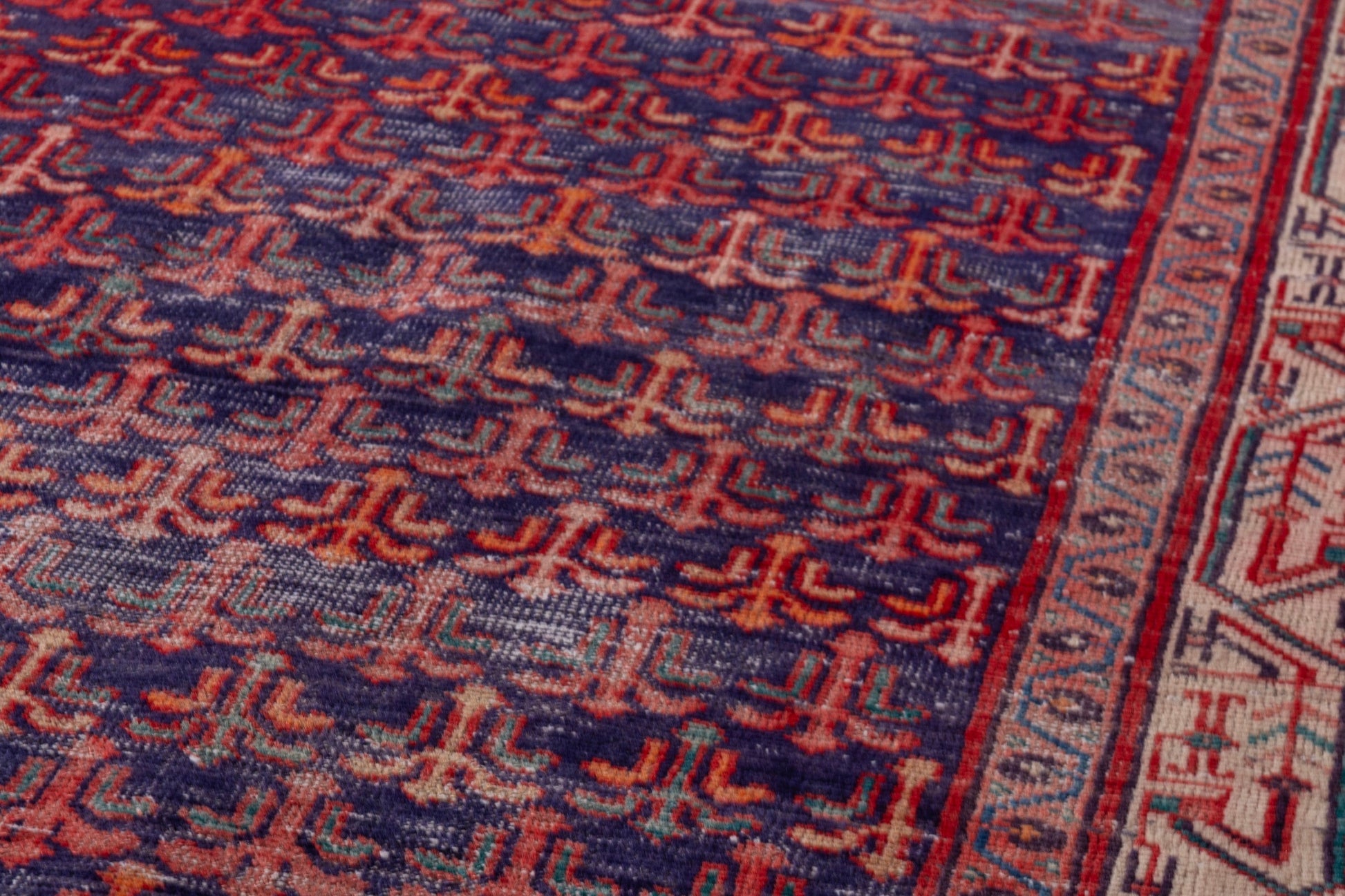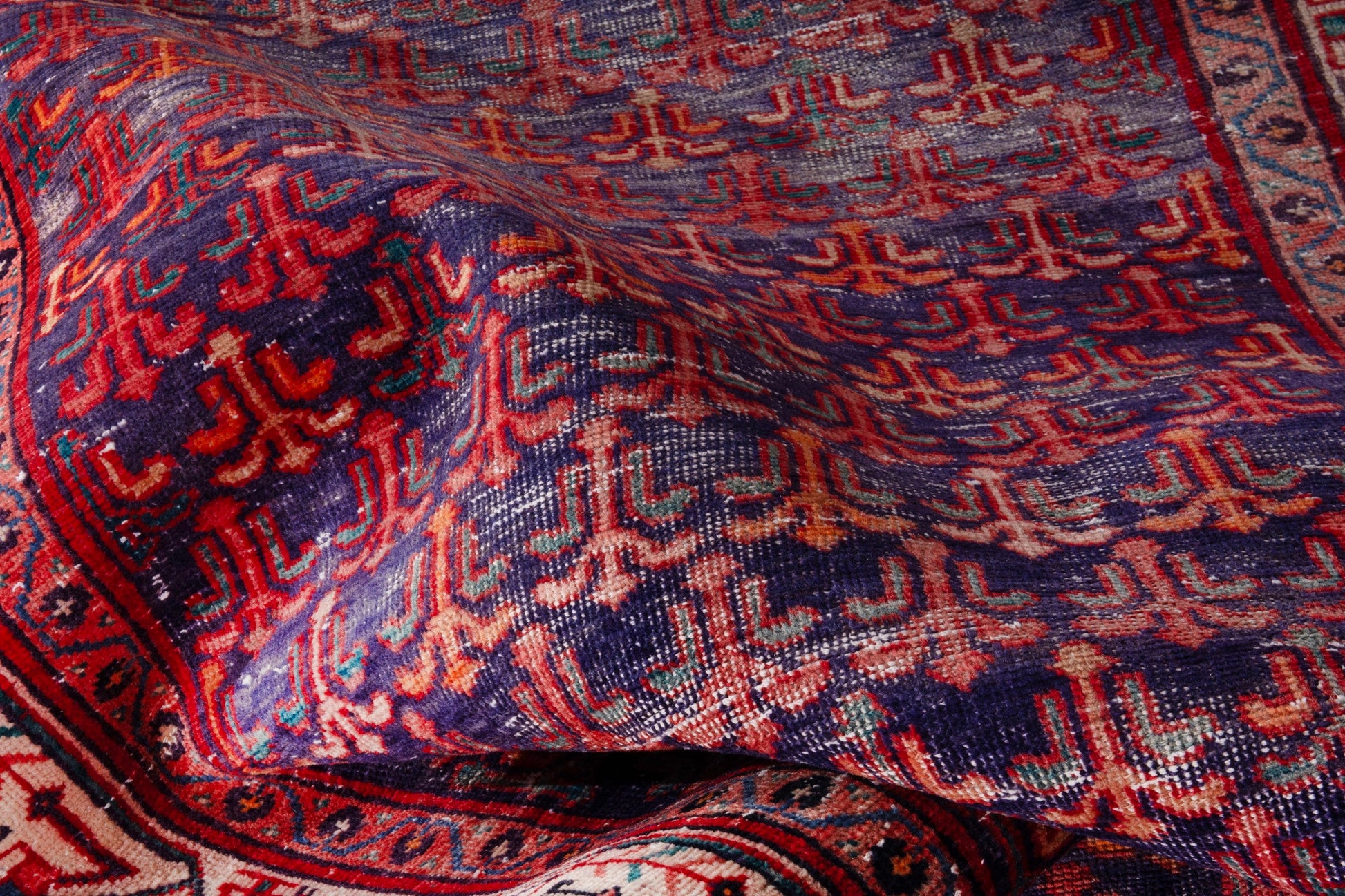 All the rugs we sell are professionally washed and cleaned; age-related wear and natural inconsistencies are inherent in these unique, handcrafted vintage rugs.